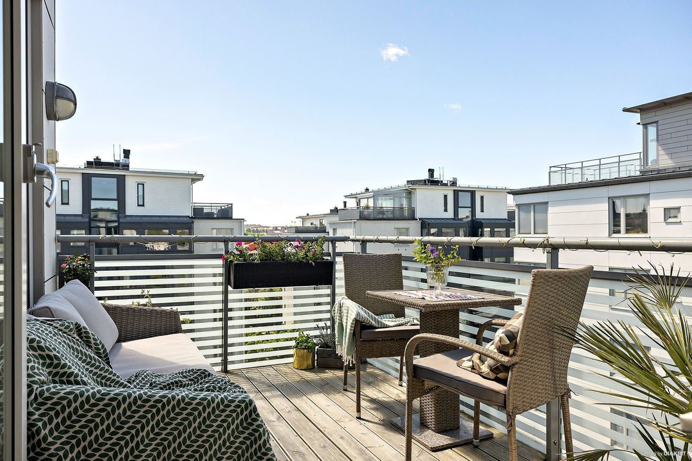 Översta balkong i soligt läge där mycket ingår i avgiften!