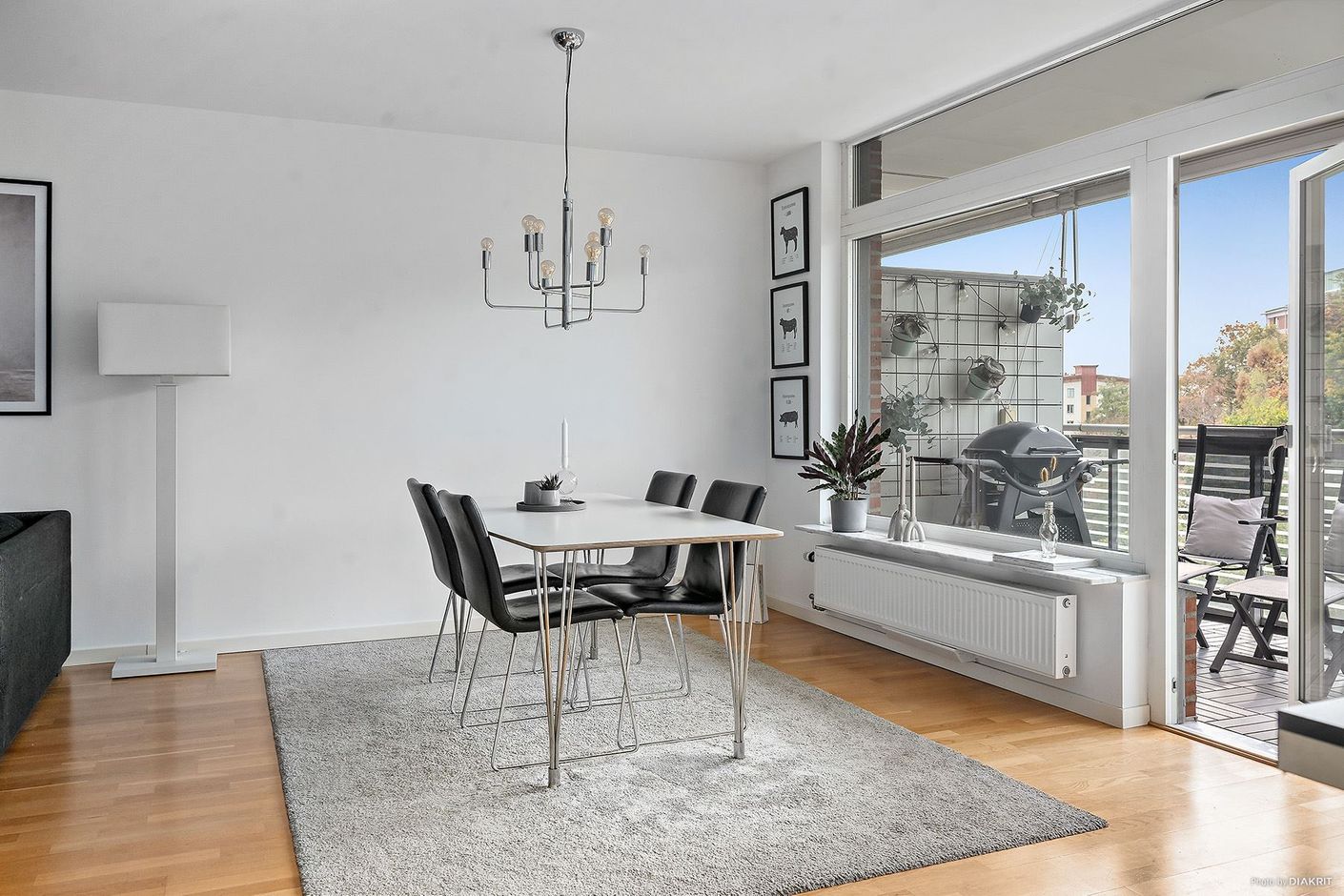 Denna stora tvåa är väldisponerad och kan anpassas efter er livssituation med olika planlösningar. Här har det renoverats med åren och köket är utbytt till ett ljust kök med köksö och större arbetsbänk. Här ges ett fantastiskt ljusinsläpp tack vare de stora fönstren åt sydväst som går ända upp till tak. Härifrån nås även den inglasade balkongen och bredvid denna ligger den öppna delen, båda belägna åt sydväst så du bör gilla sol om du är intresserad här. Den inglasade delen går att nyttja stora delar av året. Köket, vardagsrum, hall och badrum har dimbara downlights i taket.