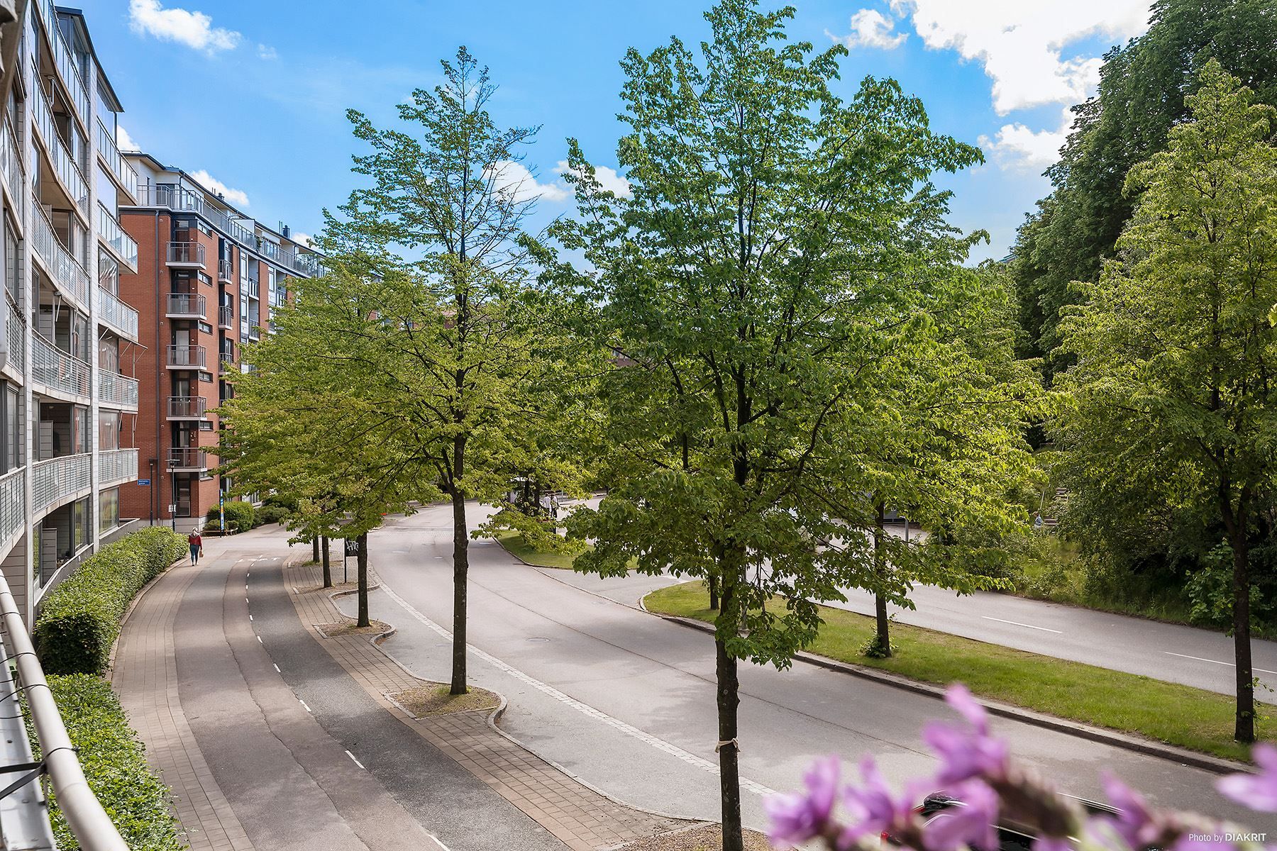 Denna välplanerade och rymliga tvåa bjuder på ett ljust kök med generösa fönsterpartier i sydväst som sträcker sig hela vägen upp till tak och fyller rummet med ljus. Härifrån når du både den inglasade balkongen, som kan nyttjas stora delar av året, samt den öppna balkongdelen – båda med härlig eftermiddags- och kvällssol. Här ute finns även ett praktiskt extra förråd.