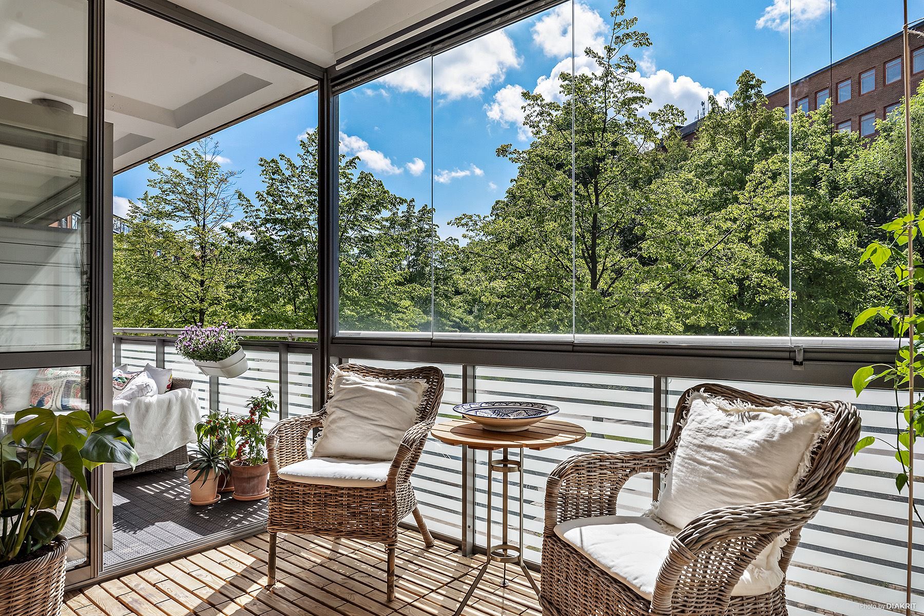 Har du svårt att välja mellan inglasad balkong eller öppen? Förmiddagssol eller kvällssol? Här behöver du inte kompromissa – på Norra Skeppspromenaden 16 får du allt i ett.