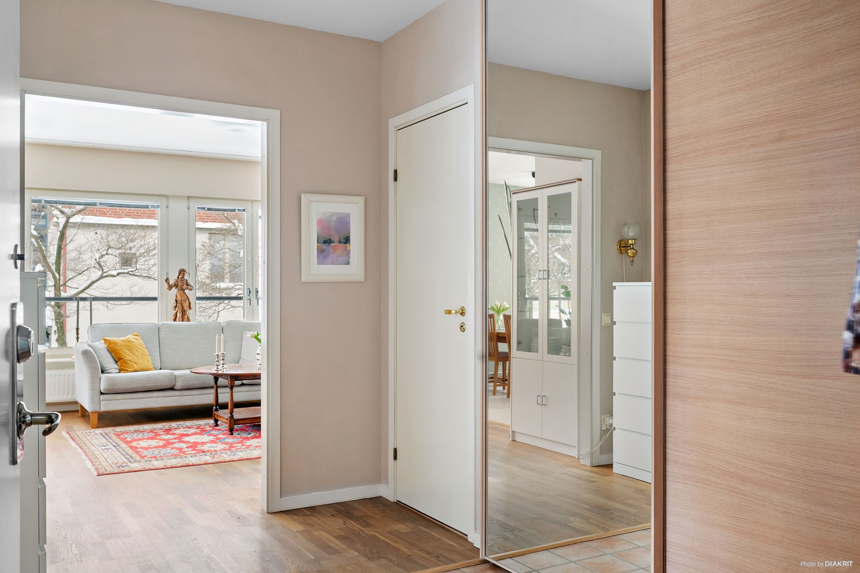 En trappa upp i ett lummigt läge har vi denna gaveltrea redo för nästa ägare. Bostaden är belägen några sekunders promenad från Eriksbergskajen.