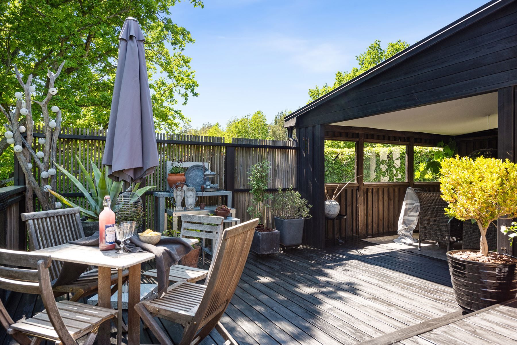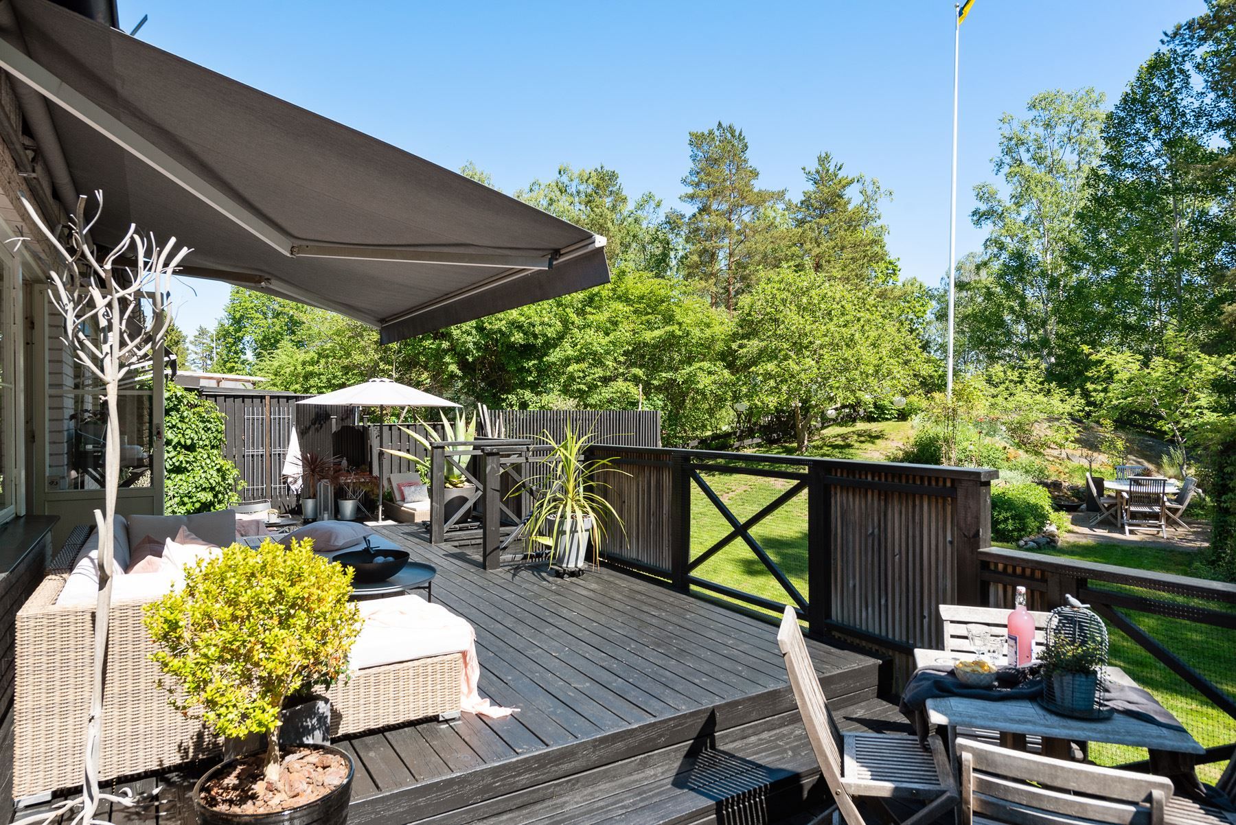 Välkommen till ett radhus som överträffar förväntningarna – både inne och ute! Denna bostad erbjuder en svårslagen kombination av stil, komfort och en underbar trädgård i gavelläge. Här njuter du av en av områdets största tomter, insynsskyddad och grönskande, med flera magiska uteplatser där du kan följa solen från morgon till kväll. Den rymliga altanen, delvis under tak, bjuder in till långa middagar under bar himmel där du lagar maten i uteköket med plats med grill, diskho och kyl. Här finns gott om plats att sätta upp ett Attefallshus för den som önskar. Odlingslådor och färgsprakande blommor skapar en lummig oas där häcken naturligt avgränsar tomten mot allmänningen och den enda grannen.