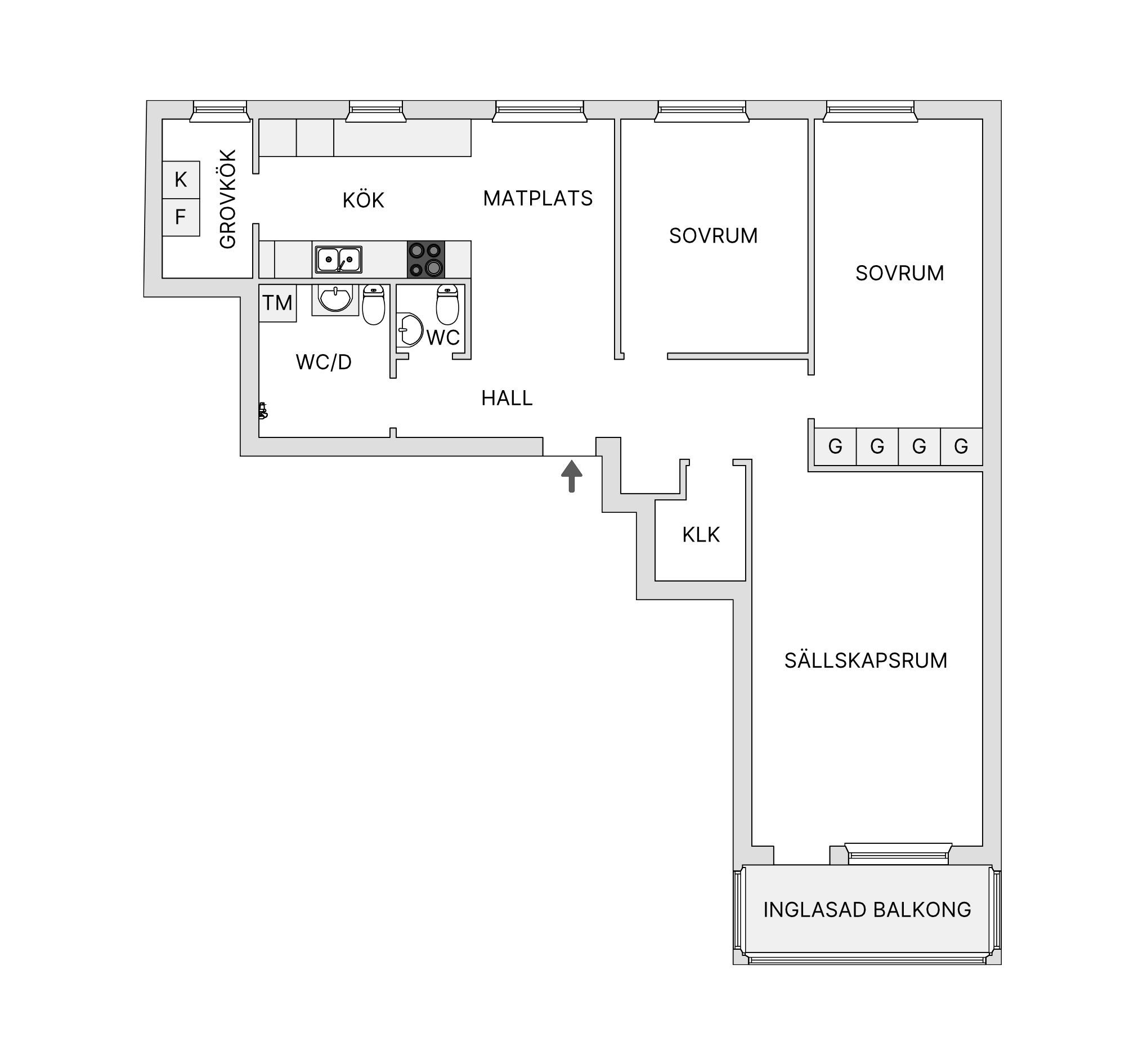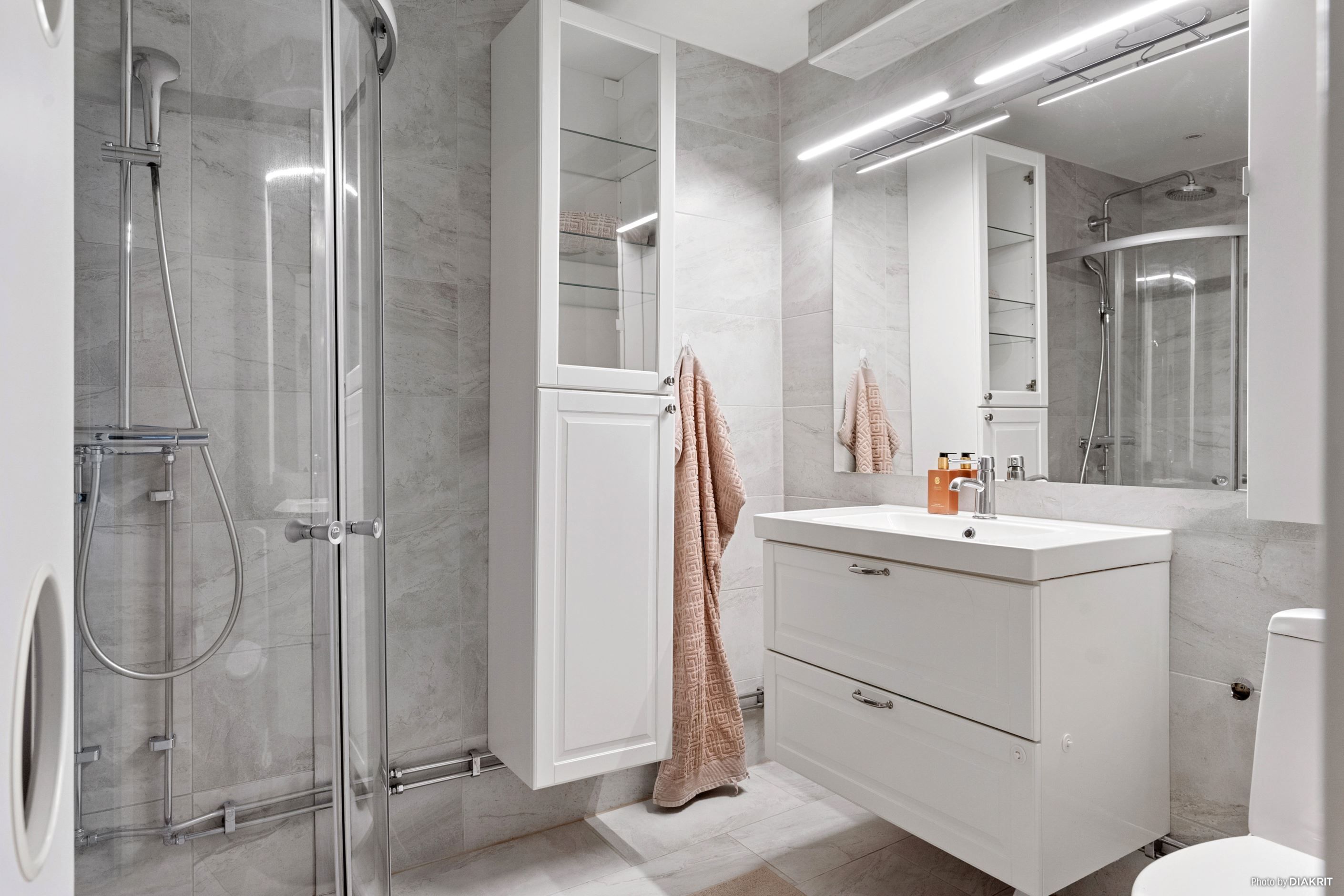 Bostaden erbjuder två rogivande sovrum med behaglig atmosfär och flexibla användningsmöjligheter, oavsett om behovet är vila, arbete eller barnrum. Den stilrena gästtoaletten har ett tidlöst utförande med en fräsch och lättskött känsla.