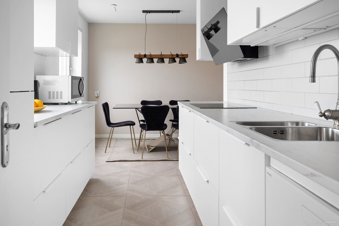 Köket är modernt och funktionellt med goda arbetsytor och en luftig känsla, vilket gör det till en naturlig samlingspunkt i vardagen. Vidare öppnar vardagsrummet upp sig med generöst ljusinsläpp och fina ytor som bjuder in till både avkoppling och sociala tillfällen.