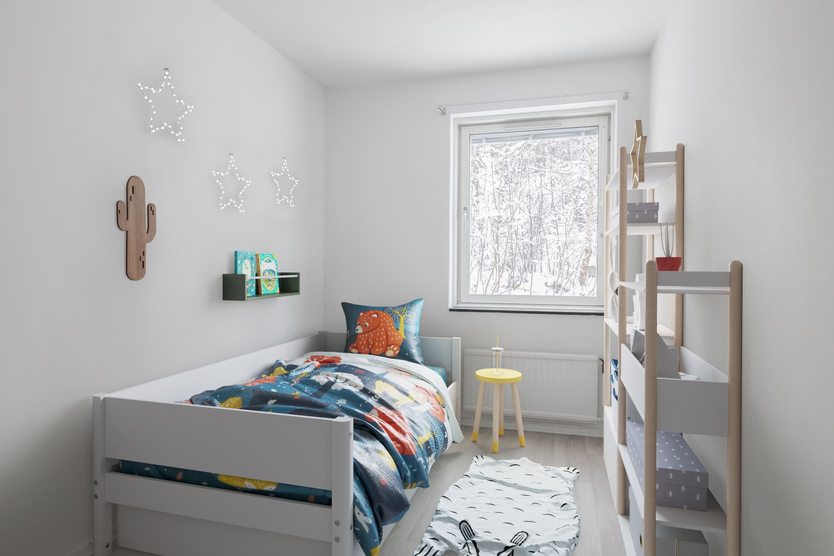 Välkommen till en stor och ljus lägenhet med fönster i 3 st. väderstreck. Lägenheten ligger i ett avskilt och insynsskyddat läge med utsikt mot lummig natur på baksidan. Framsidan utgörs av innergården med en välrustat och välanvänd lekplats där du som föräldrar kan hålla uppsikt på barnen från köksfönstret.