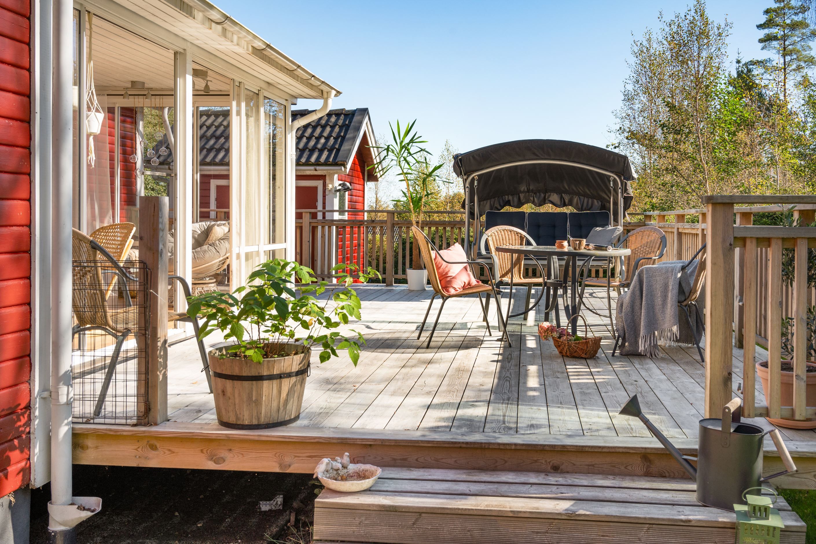 Läget är fridfullt, med naturen som närmsta granne. Här kan du njuta av fågelkvitter, gröna vyer och ett harmoniskt boende långt från stress och buller. Samtidigt har du bekvämt avstånd till service och kommunikationer.