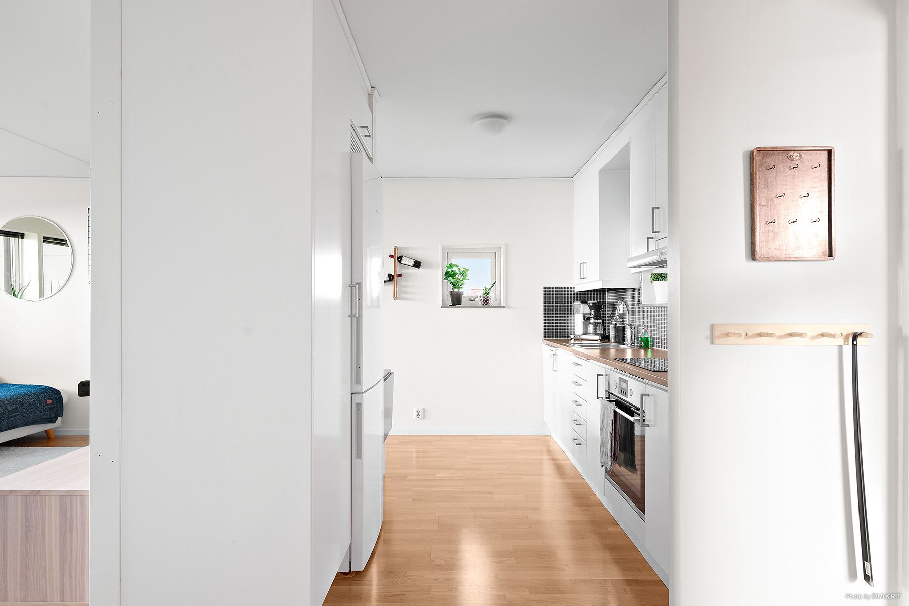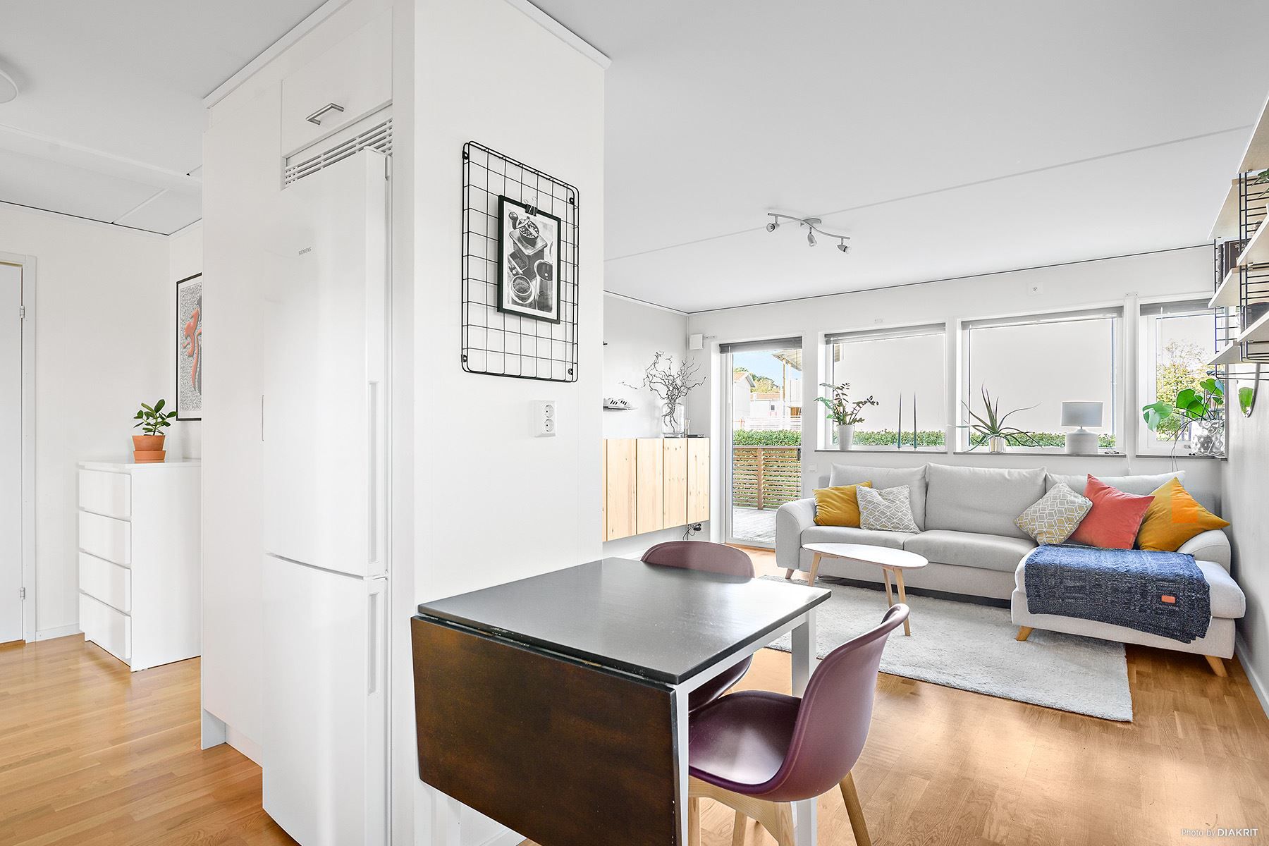 Lägenheten är disponerad på 47,5 kvm med kök och vardagsrum i en öppen planlösning, generöst sovrum med bra förvaring, helkaklat badrum med dusch samt tvättmöjligheter.