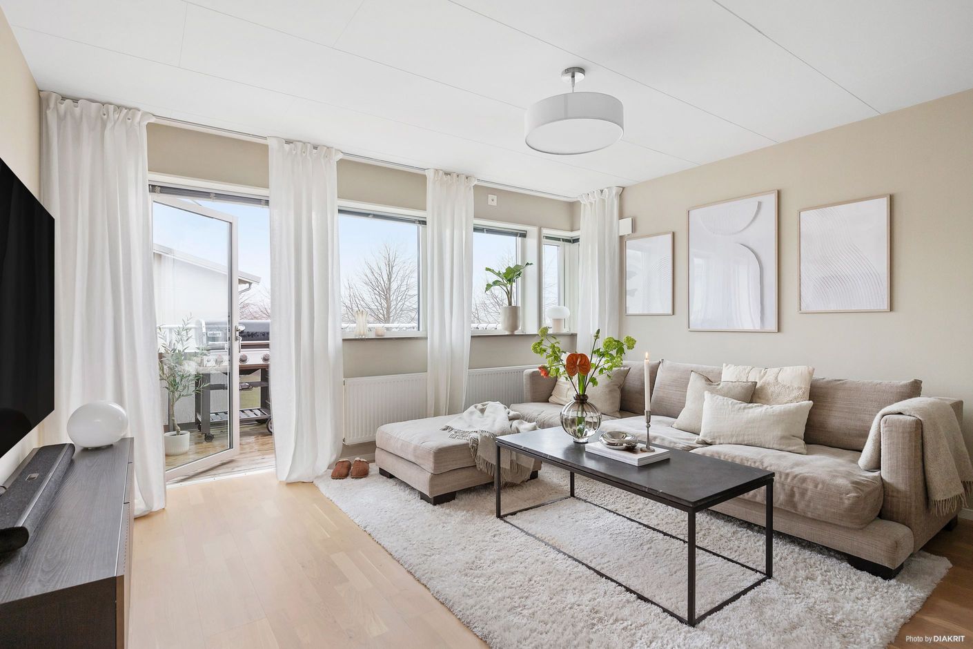 Den rymliga balkongen ligger i ett härligt solläge och blir en naturlig förlängning av bostaden under årets varmare månader – perfekt för både avkoppling och sociala stunder.
