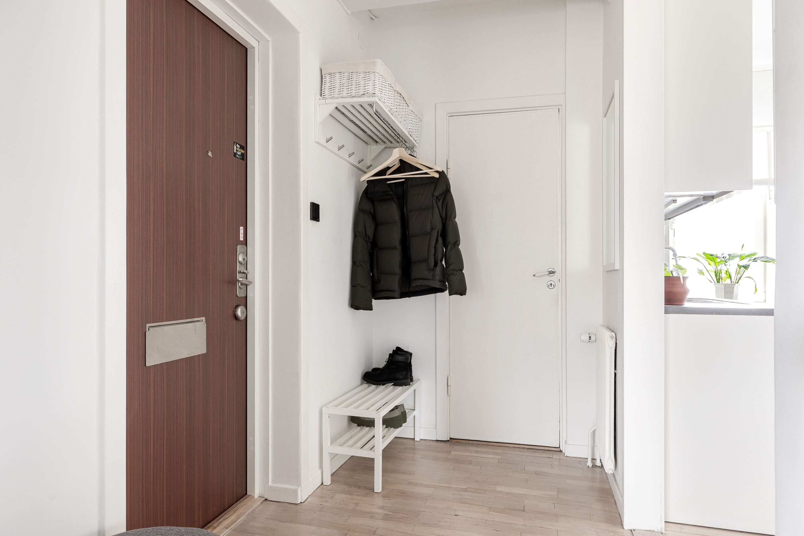 Lägenheten är utrustad med ett fullt modernt kök, där kyl och frys i fullhöjd bidrar till optimal funktionalitet. I samma byggnad finns bekvämligheter såsom tvättstuga, torkrum, två förråd och ett cykelförråd, vilket gör vardagen enkel och smidig.