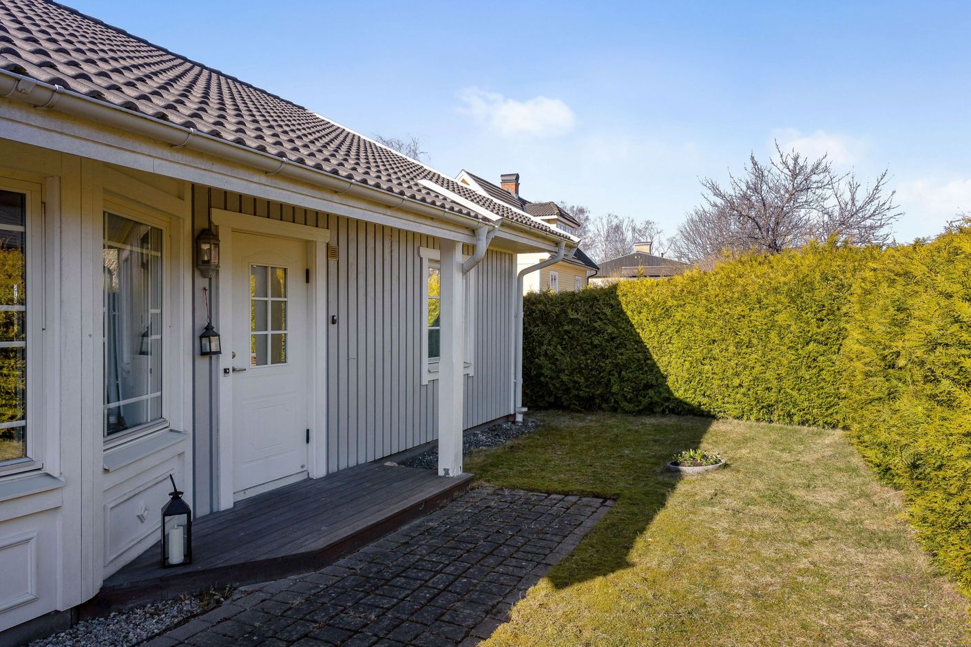 Utomhus väntar en härlig trädäcksförsedd uteplats som övergår i en grönskande gräsmatta i soligt söderläge – en perfekt plats för långa sommarkvällar, grillmiddagar och barnens lekande aktivitet. Här finns gott om utrymme för både avkoppling och umgänge.