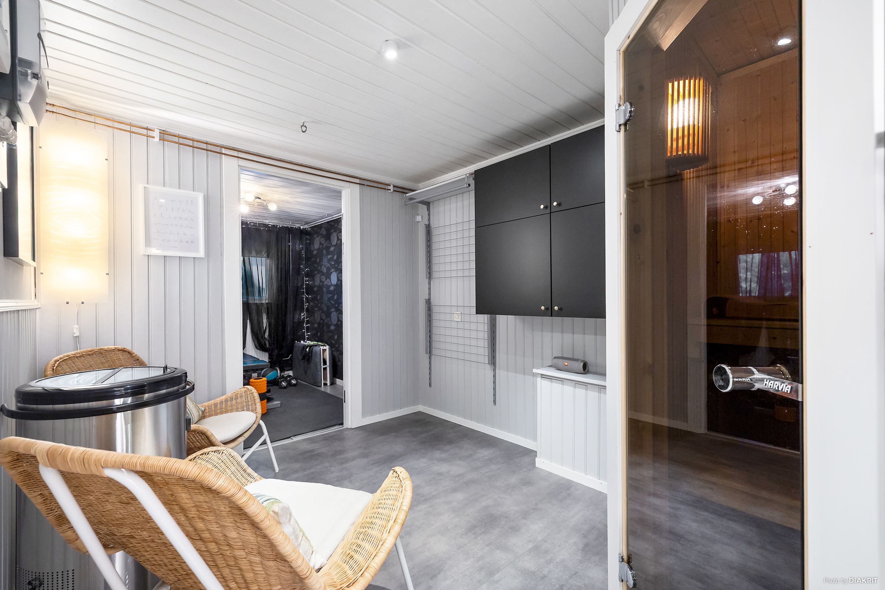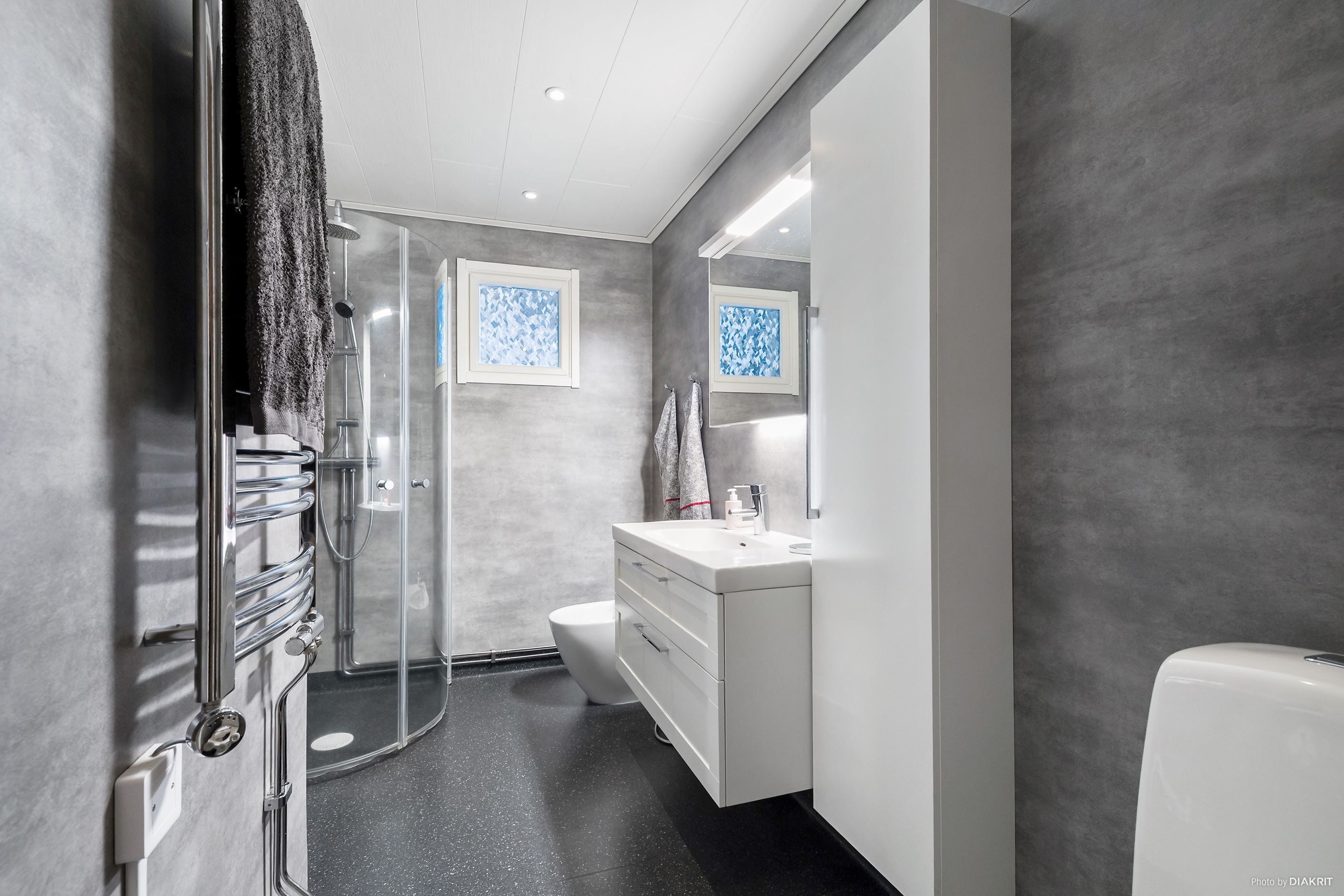 Hög standard i alla våtutrymmen som renoverades 2022, både badrum, tvättstuga och en inbjudande relaxavdelning med bastu och dusch renoverades med stilfulla materialval och moderna funktioner. I vardera våtutrymmen och kök finns komfortabel golvvärme.