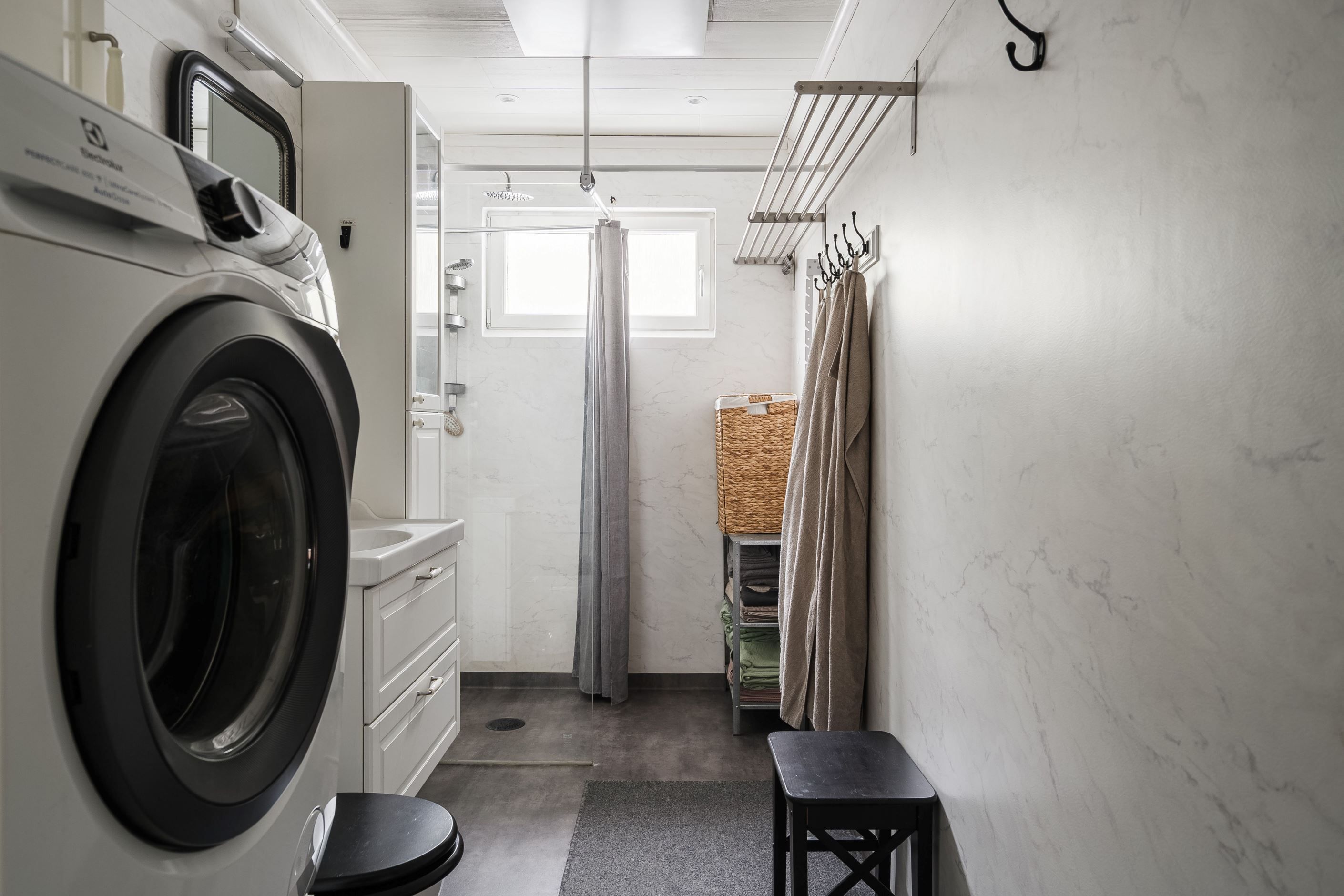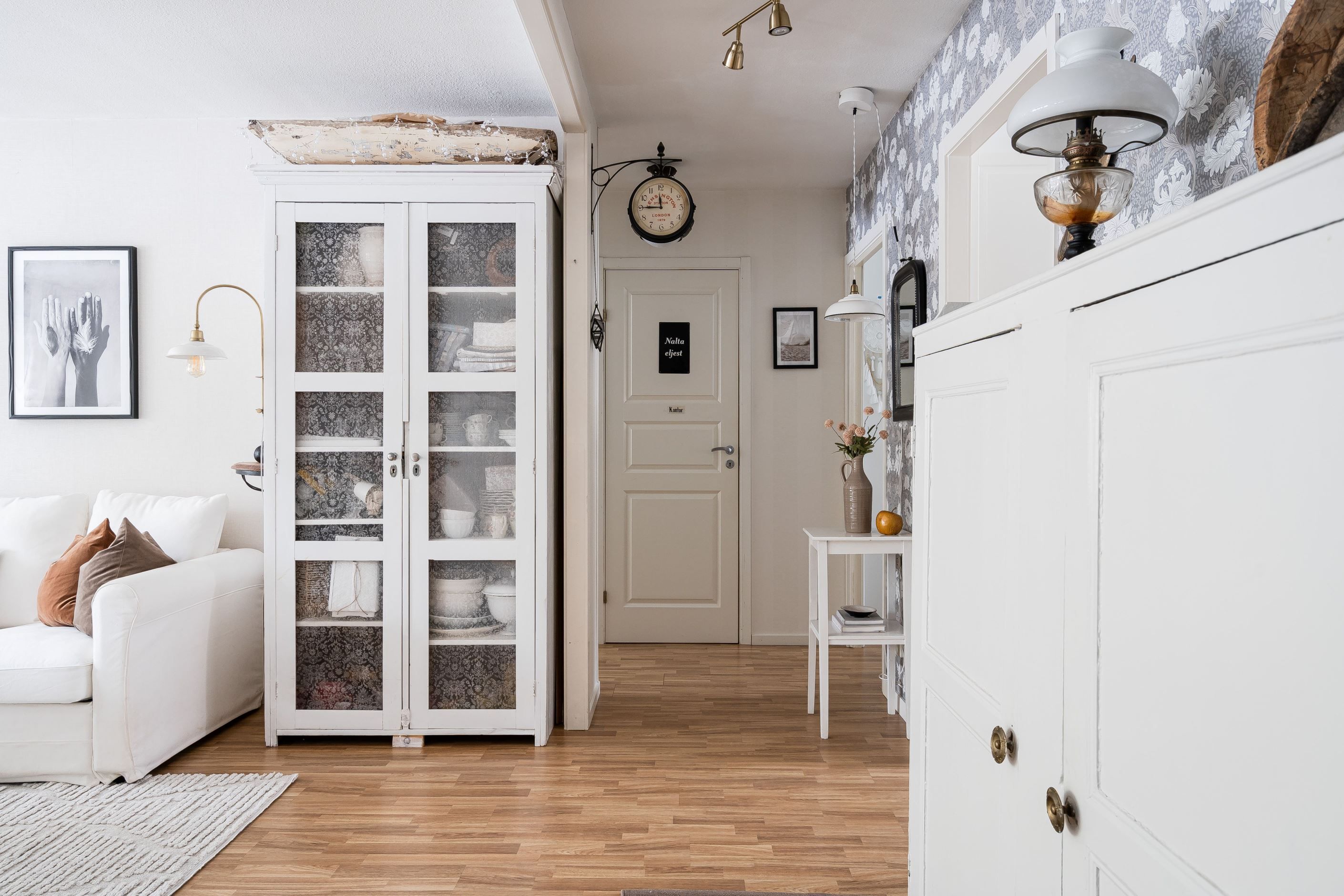 Ett stort, renvoverat badrum finns samt en mindre WC. I hallen finns bra förvaringsmöjligheter i form av garderober samt plats för mindre förvaringsmöbel för dig som önskar.