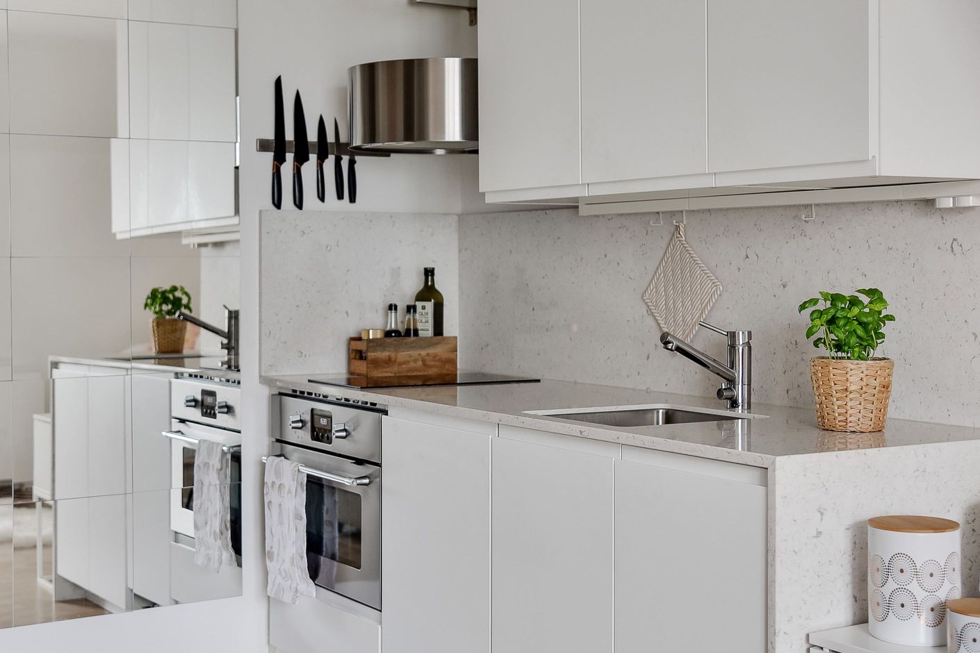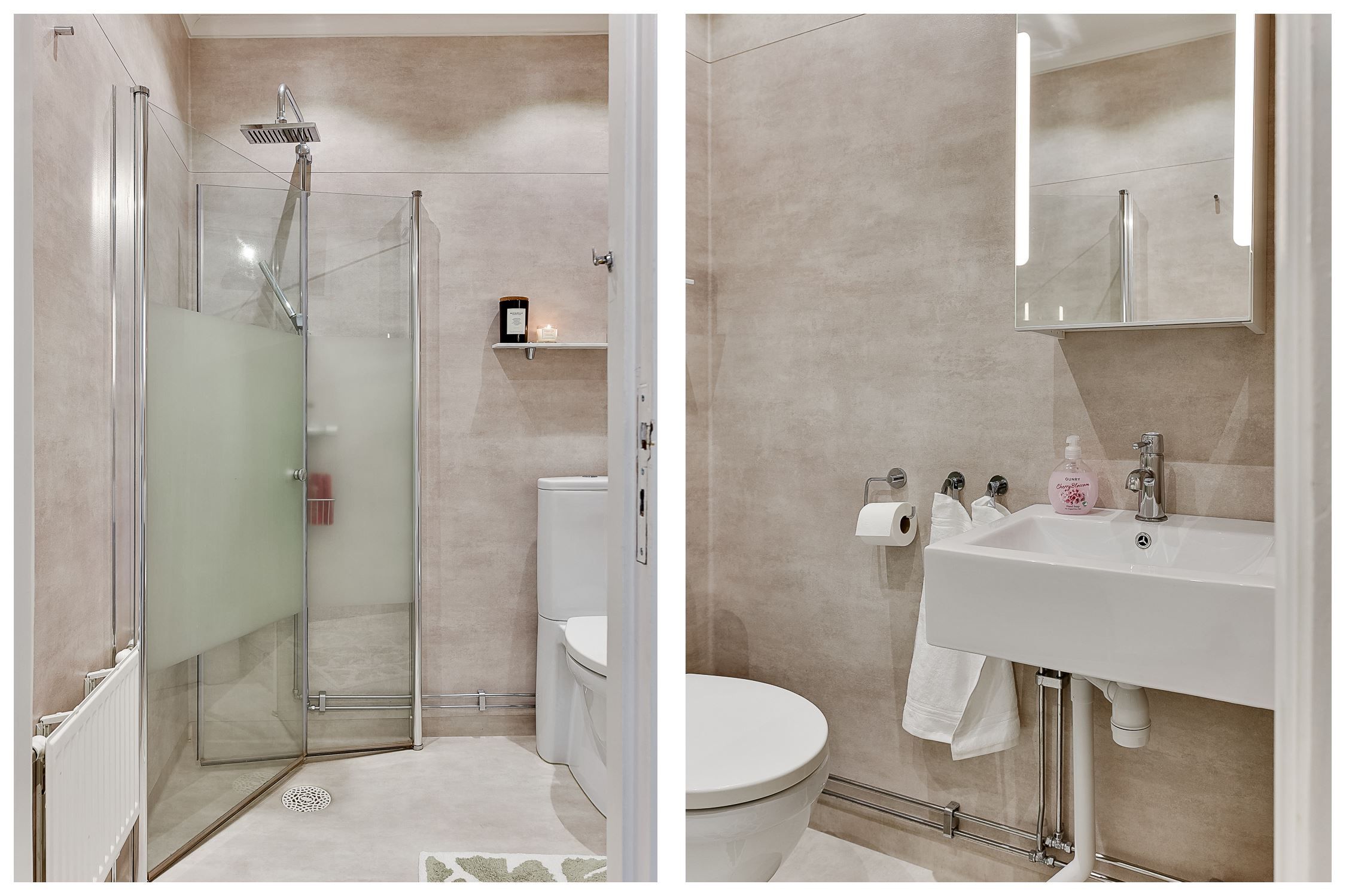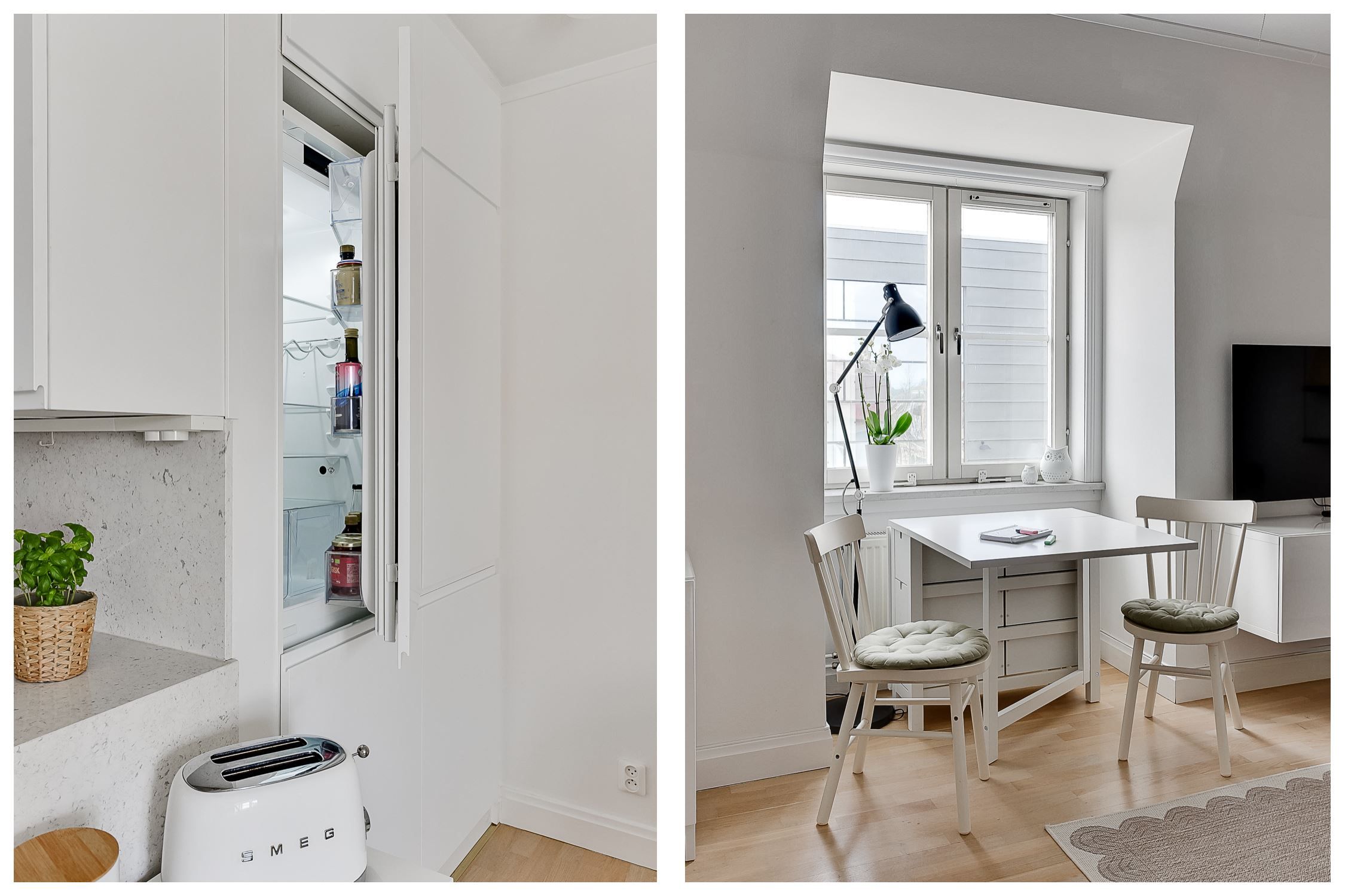 Bostaden präglas av en luftig planlösning där varje kvadratmeter är optimerad. Här möts du av ett elegant och fullutrustat kök med påkostade materialval, där bänkskivor i kvarts och integrerade vitvaror skapar både funktion och estetik. Det renoverade badrummet är smakfullt utformat med detaljer som harmoniserar med husets karaktär, samtidigt som modern komfort står i fokus.