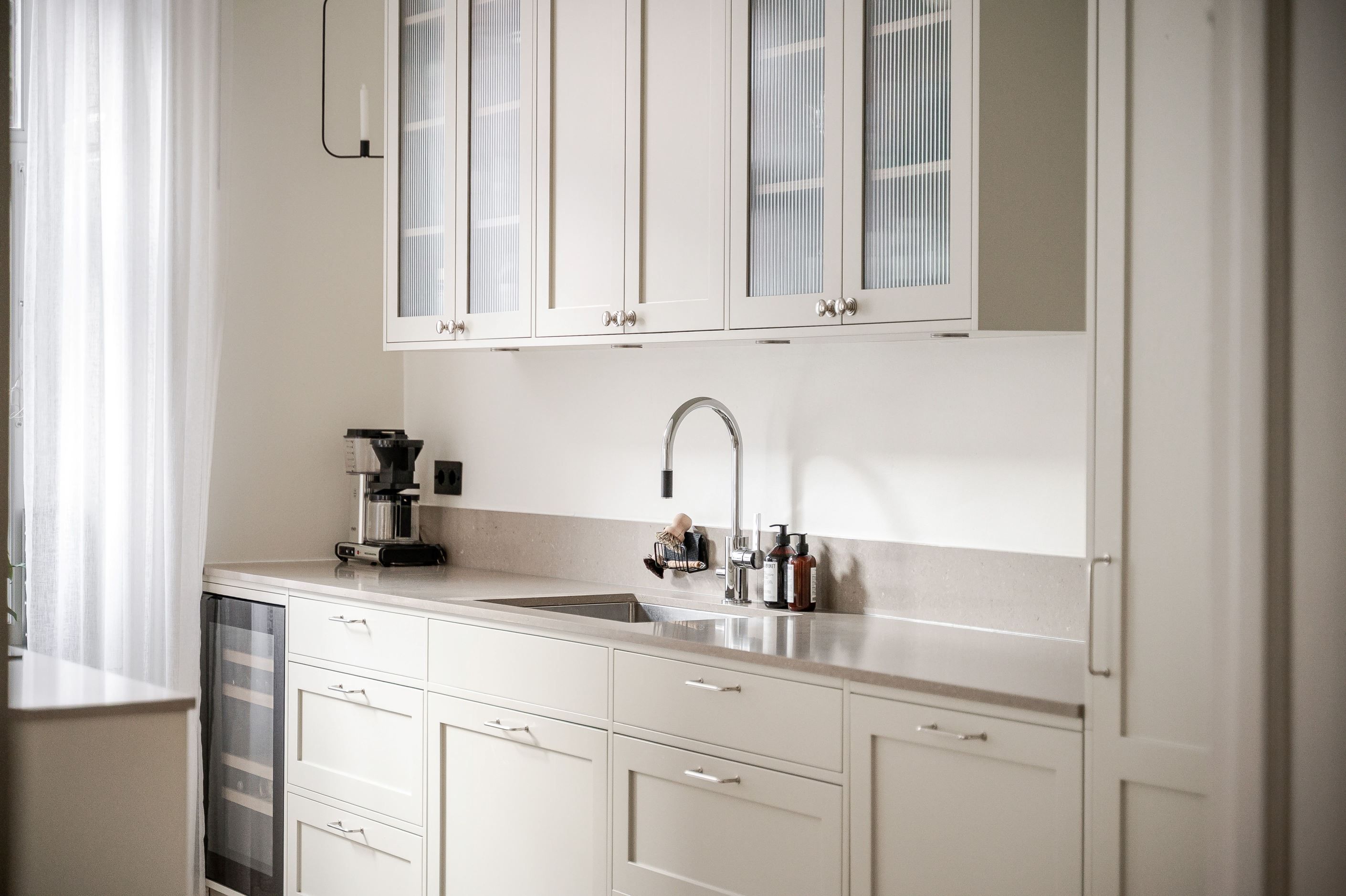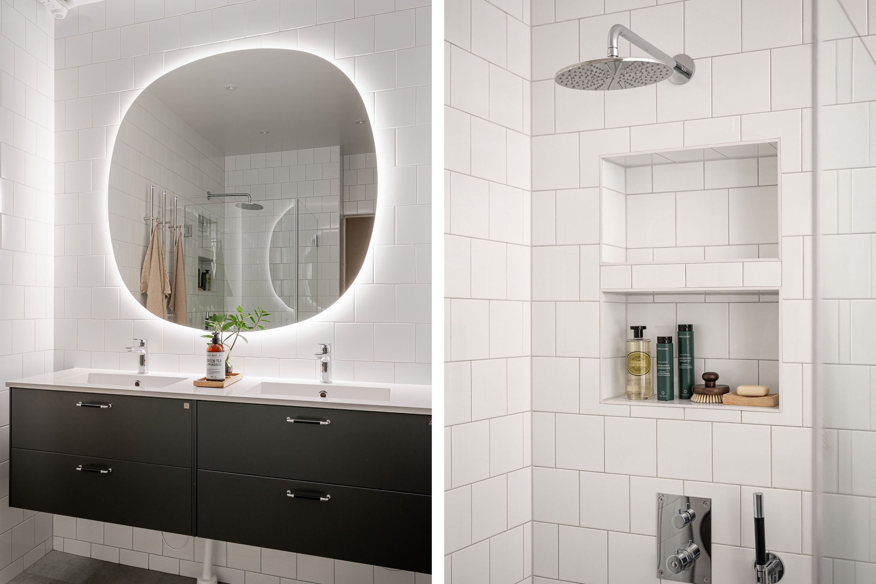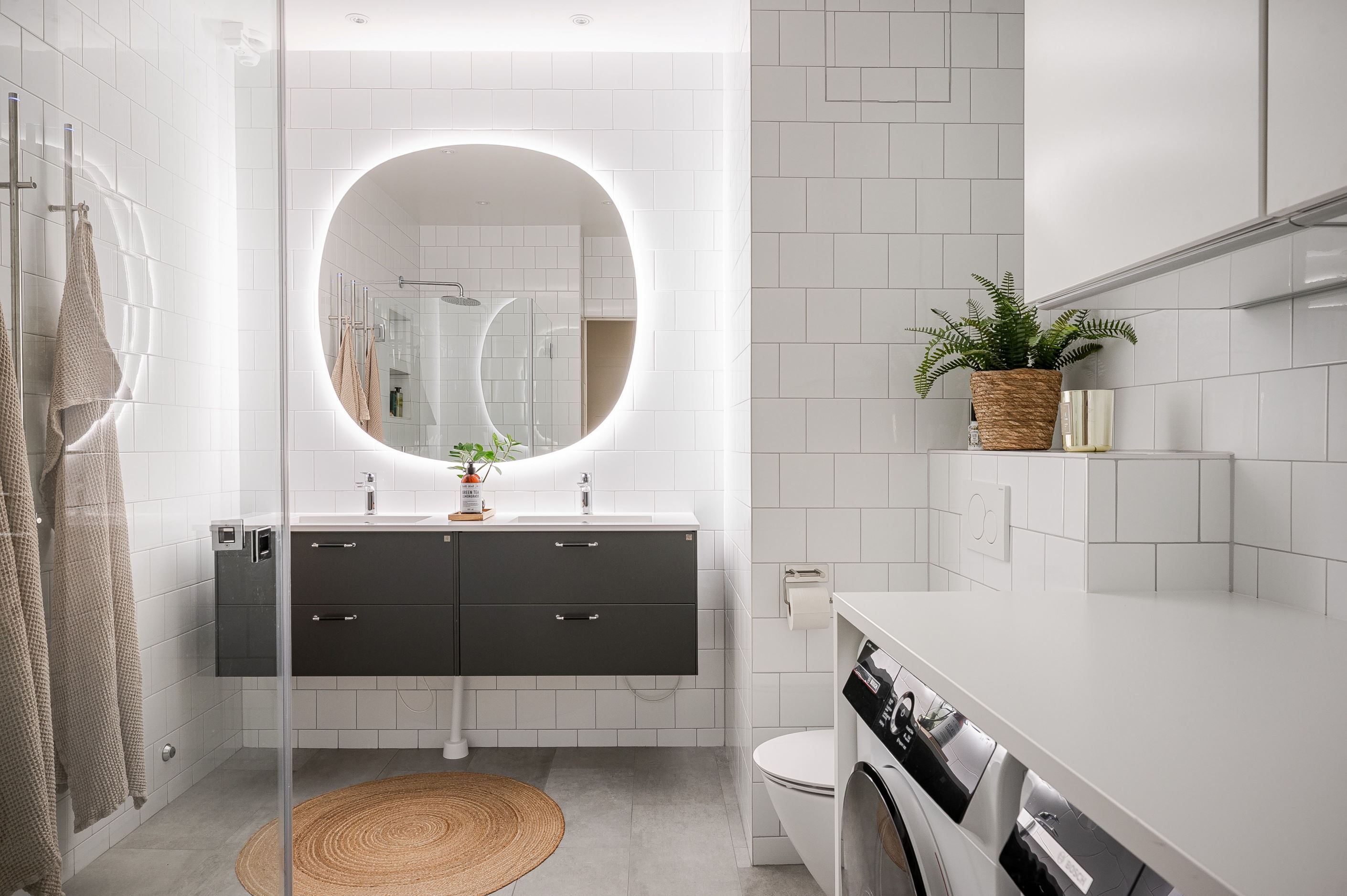 Köket är platsbyggt med påkostade materialval, stilrena linjer och generösa arbetsytor. Här finns en rymlig köksö, integrerade vitvaror av högsta klass, vinkyl samt andra exklusiva tillbehör som gör det lika funktionellt som elegant. Även badrummet är genomtänkt in i minsta detalj, med exklusiva ytskikt, modern belysning och smart förvaring – dessutom stambytt.
