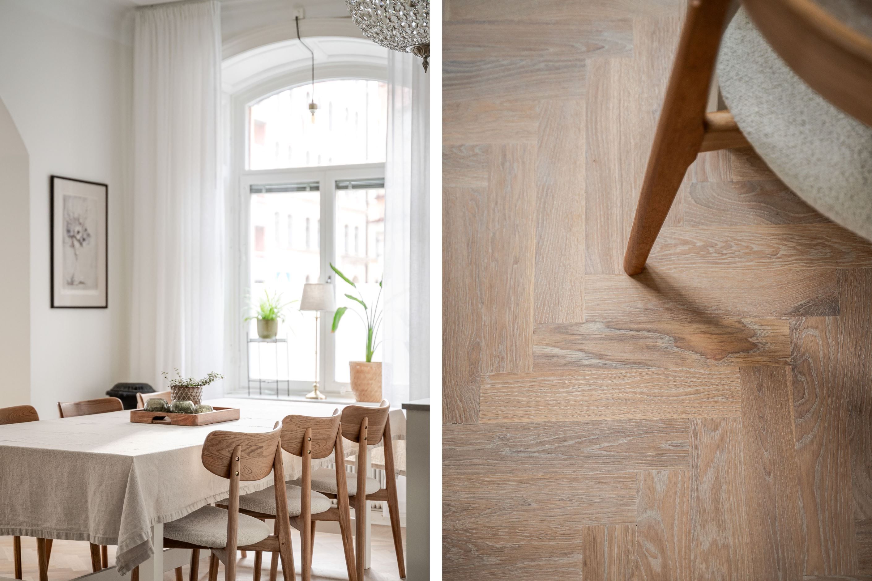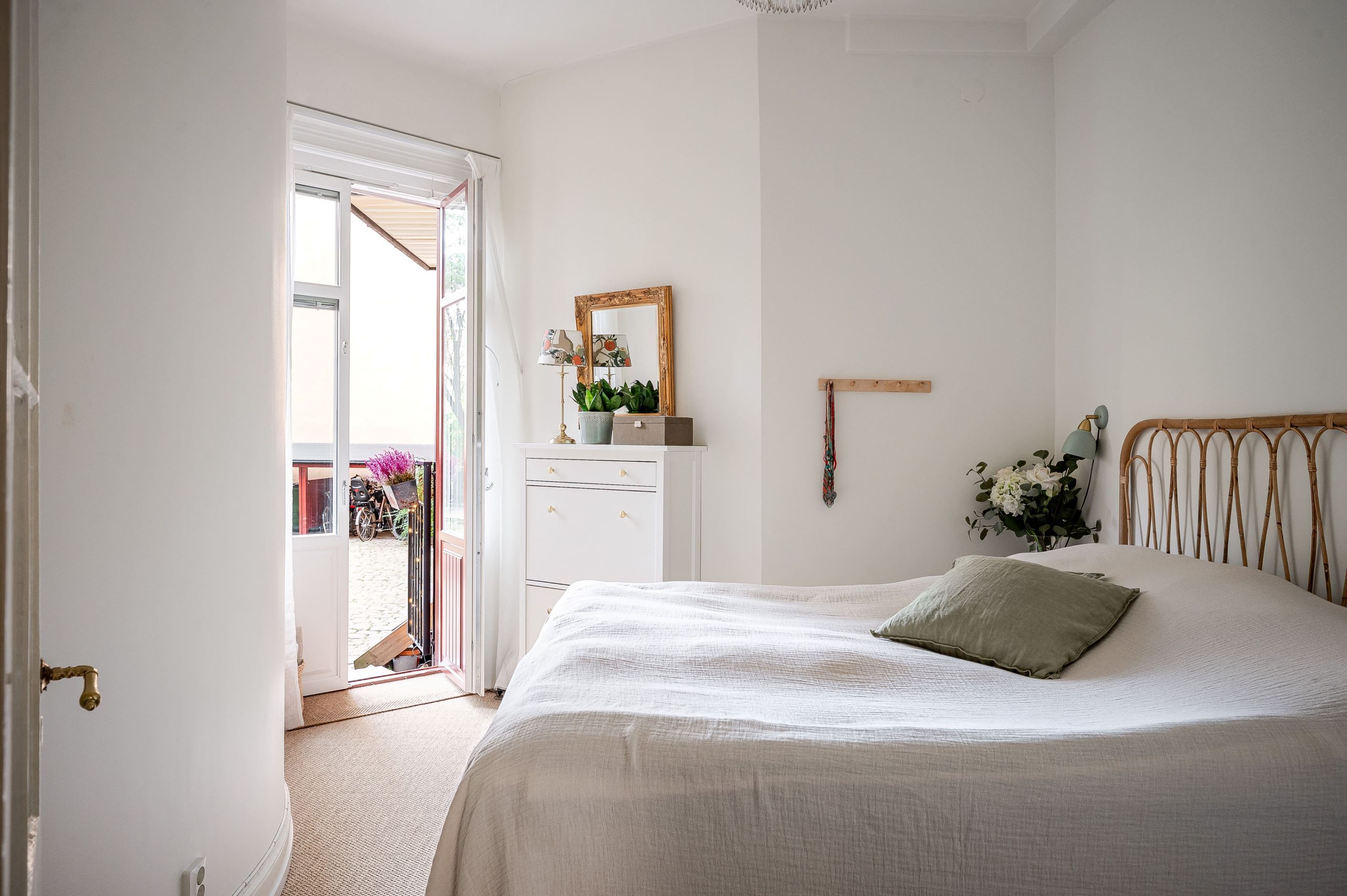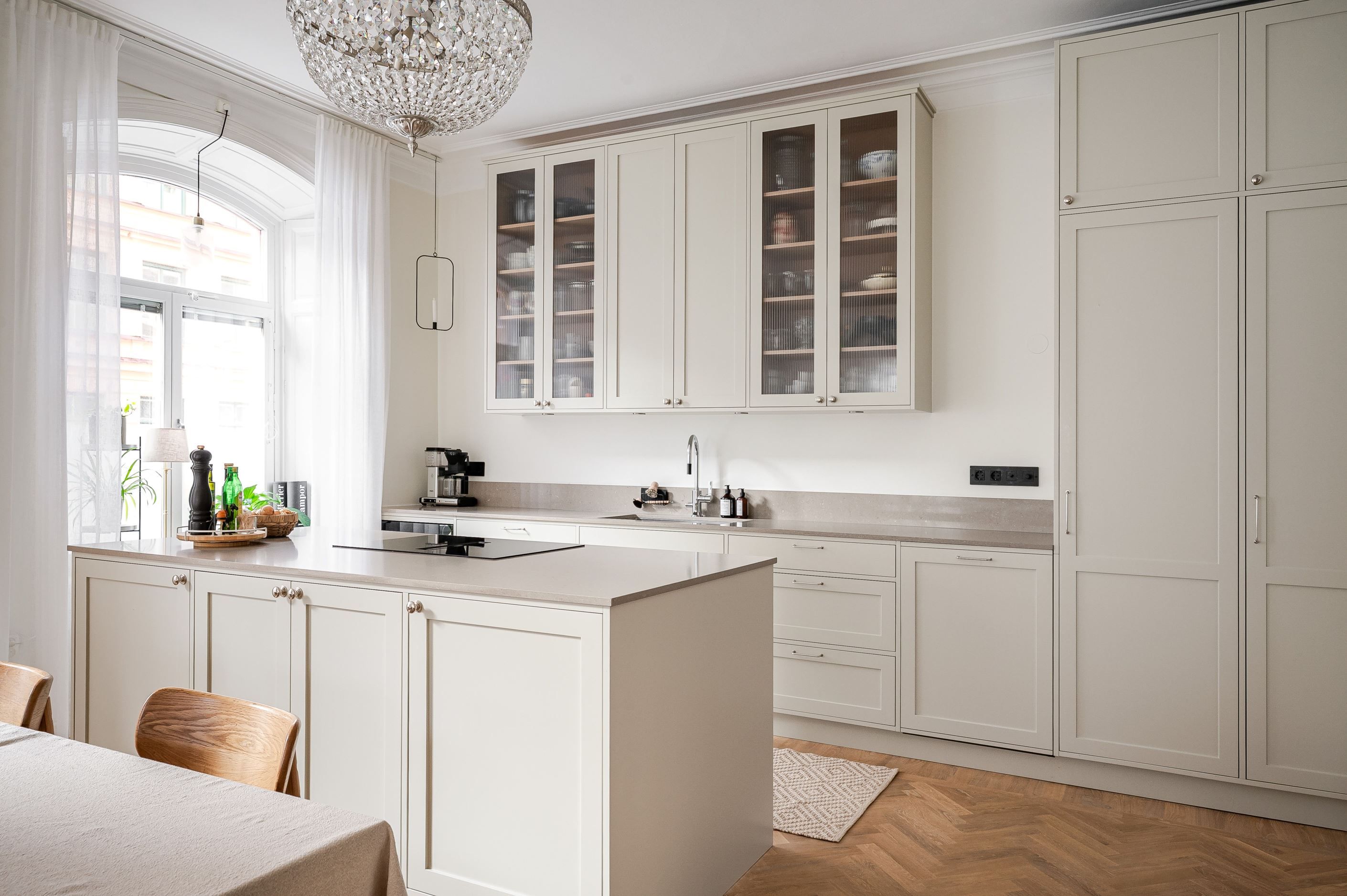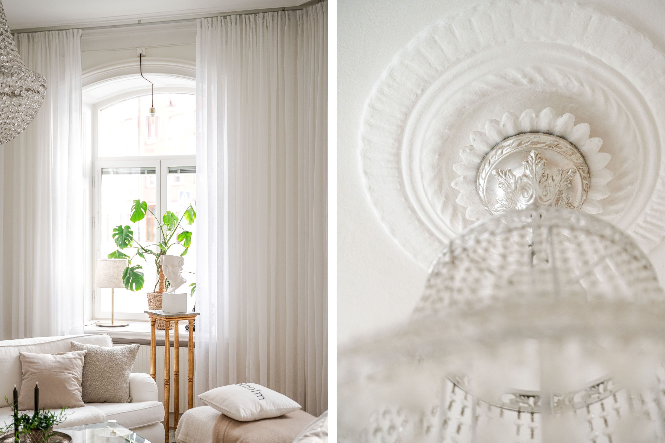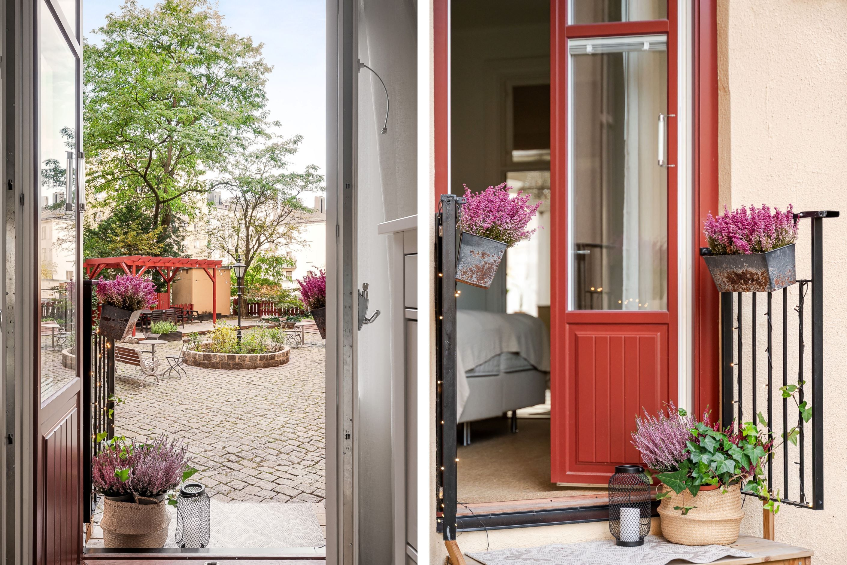 Den luftiga känslan förstärks av vacker nylagd fiskbensparkett i större delen av lägenheten, och i utvalda delar bekväm heltäckningsmatta. Tidstypiska detaljer såsom takrosetter, spegeldörrar, djupa fönsternischer och stuckaturer knyter samman den klassiska stilen med dagens bekvämligheter. Våningen erbjuder en unik kombination av historisk charm och bekväm modern livsstil, där varje kvadratmeter präglas av stil, kvalitet och omsorg. Som en extra bonus har bostaden egen utgång till innergården – en grönskande oas som ger en sällsynt känsla av lugn mitt i stadens hjärta.