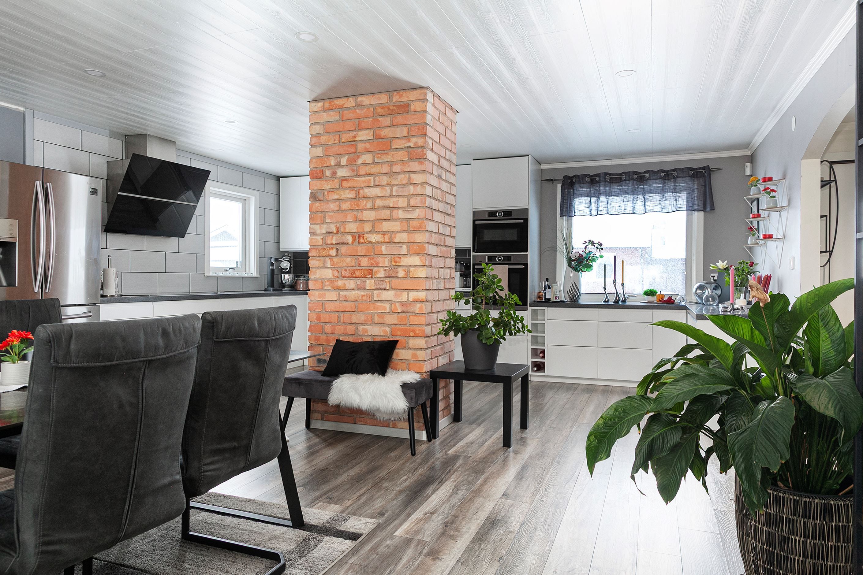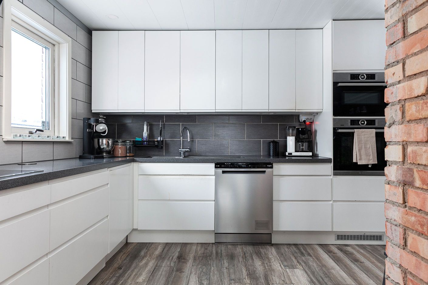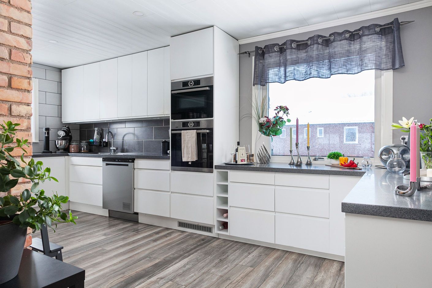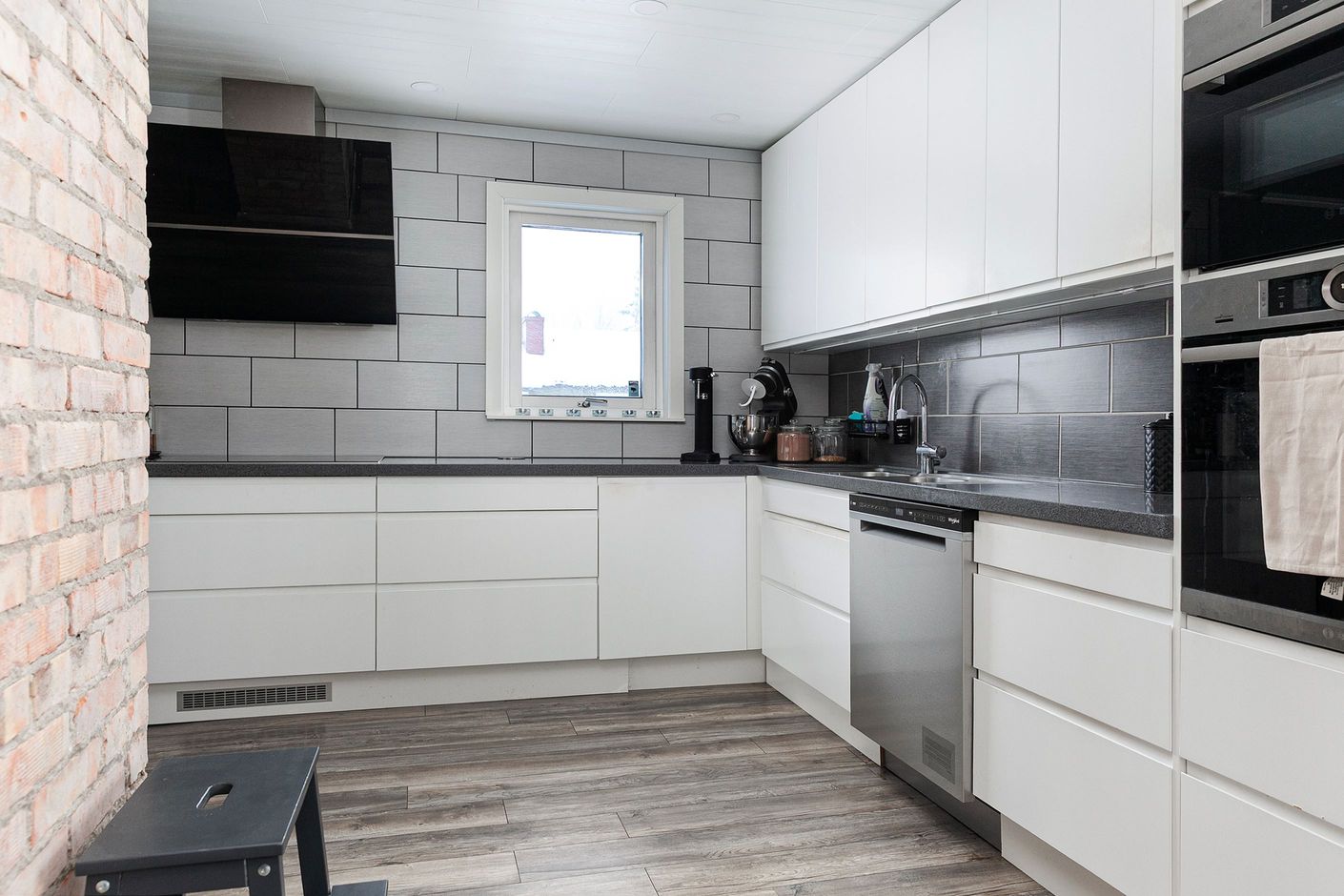 Uppfarten har plats för 2-3 bilar och garage finns också i anslutning till huset.