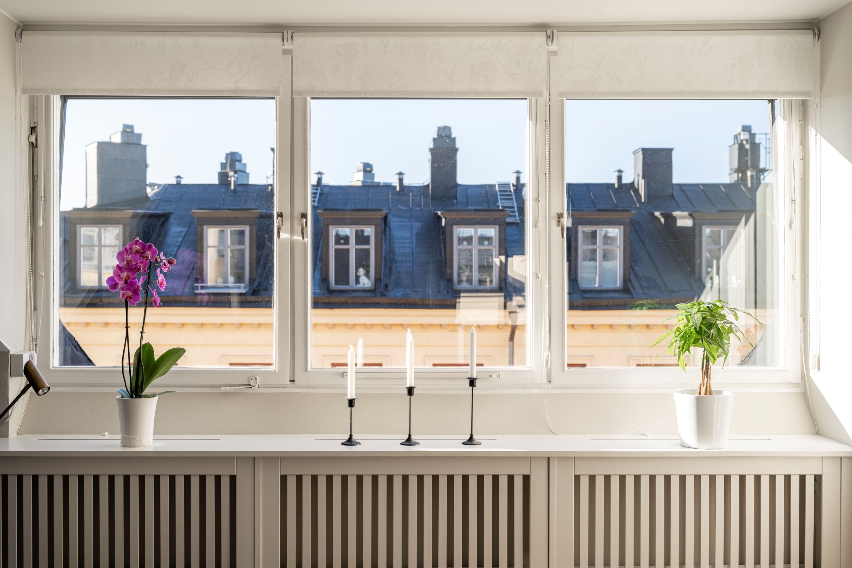 Varmt välkomna till denna mycket väldisponerade vindsvåning med en total golvyta om 111 kvm, i attraktiva kvarter på Odenplan! En magisk vindsvåning med stora fönsterpartier som genererar ett generöst ljusinsläpp och med utsikt över takåsar och himmel. Hela våningen är renoverad i en stilren inredning med genomgående trägolv och sobra kulörer på väggarna. Exklusivt platsbyggt kök (2018) med full maskinell utrustning och bra med förvaring och arbetsytor. Här spenderar man gärna trevliga middagar eller frukosten vid köksfönstret med platsbyggd sittgrupp. Öppen planlösning mot vardagsrummet med braskamin som ger ytterligare lyx till vardagen. Det stora och sällskapsinbjudande vardagsrummet karakteriseras av sina vackra takbjälkar, stora fönsterpartier och braskamin. Goda möbleringsmöjligheter erbjuds även för såväl soffgrupp, tv-möbel samt stort matsalsbord. Den välplanerade planlösningen erbjuder även tre generösa sovrum, goda förvaringsmöjligheter i garderober samt en gäst-wc med tvättpelare och badrum med dusch. Två helkaklade våtutrymmen med golvvärme för extra komfort som är renoverade i samband med stambytet i slutet av 2020.