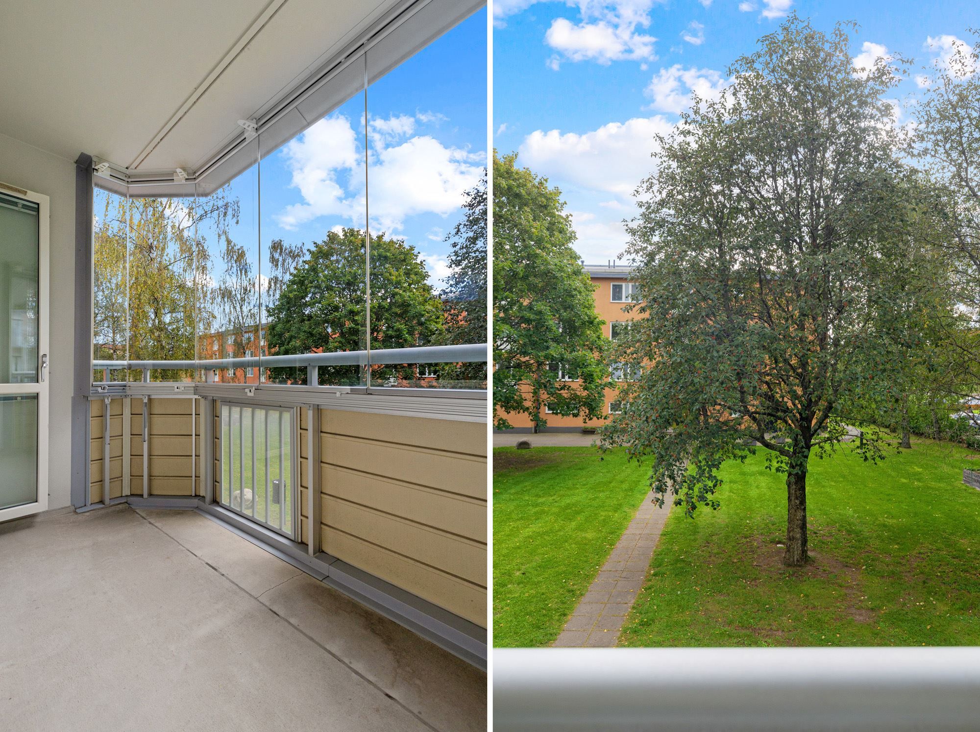 Bostaden har en välplanerad yta om 69 kvadratmeter med gott om utrymme och en genomtänkt planlösning. Här möts du av ett ljust och luftigt vardagsrum, ett generöst sovrum, separat kök samt ett stambytt och fräscht duschrum. Den inglasade balkongen i soligt söderläge fungerar som ett extra rum stora delar av året.
