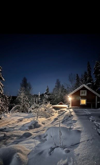 Läget är något alldeles extra. Här har du skogen precis intill med promenadstigar, bär och kantareller runt knuten och fina badplatser i området. En plats där man verkligen kan landa, koppla av och njuta av det enkla livet.