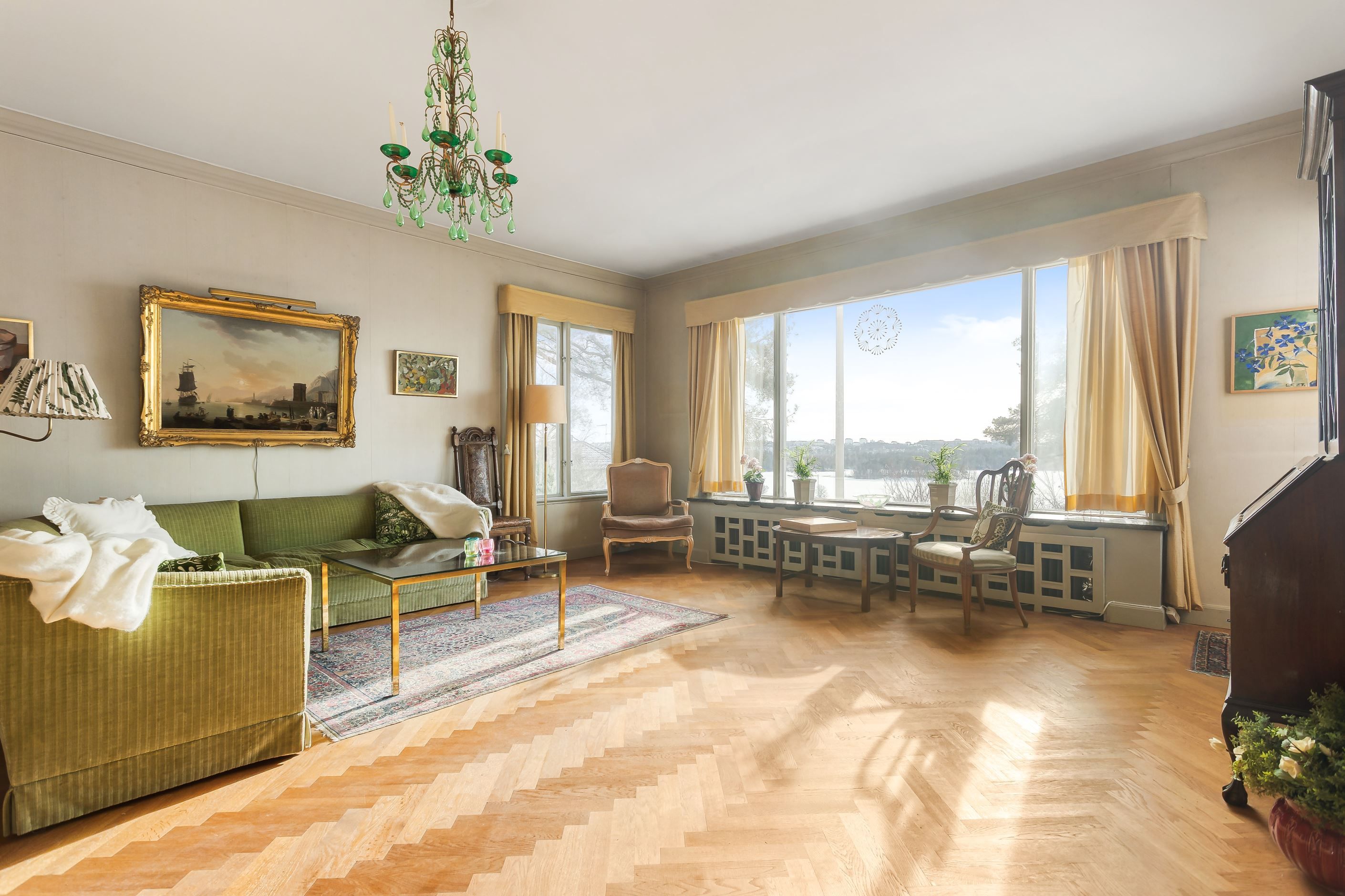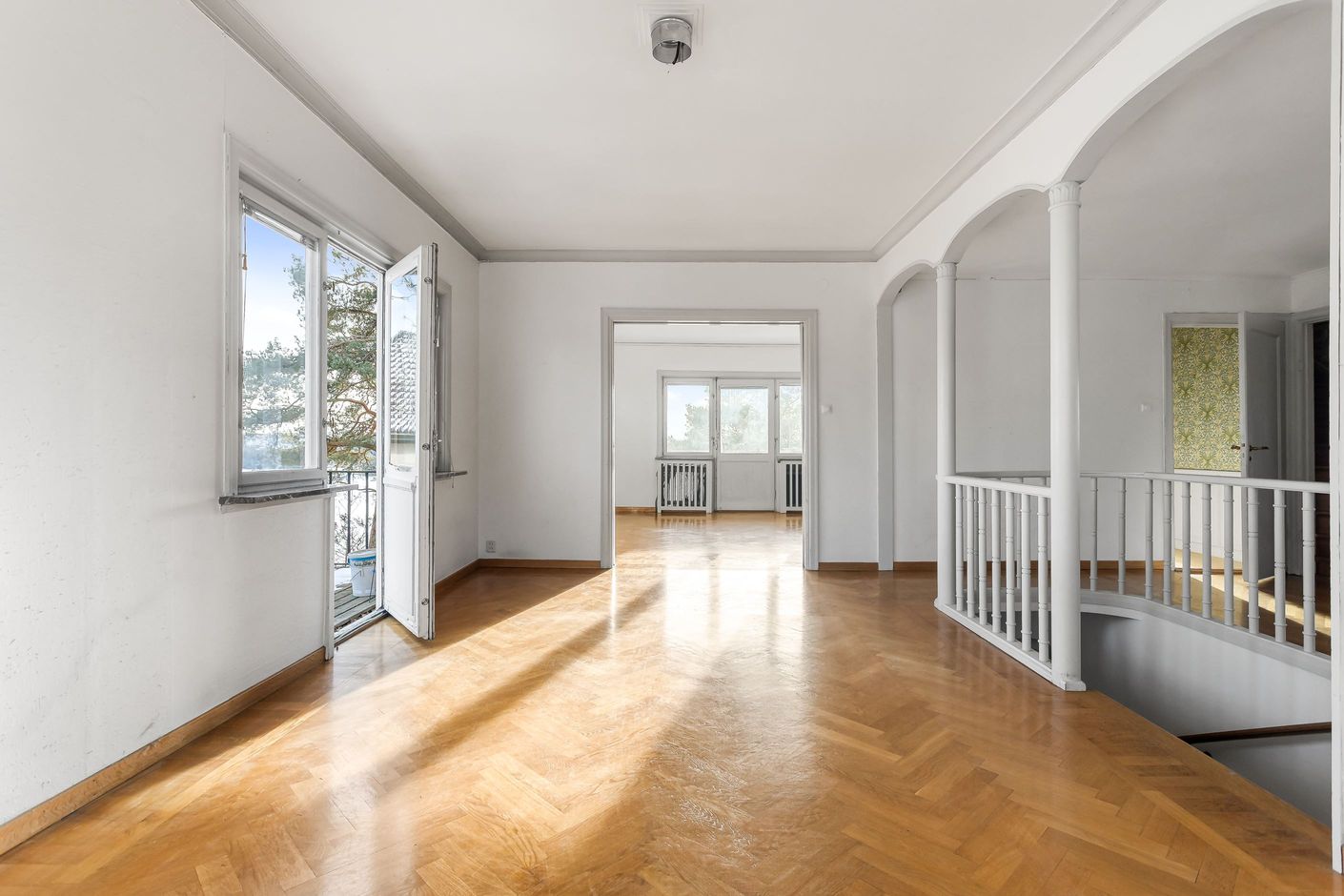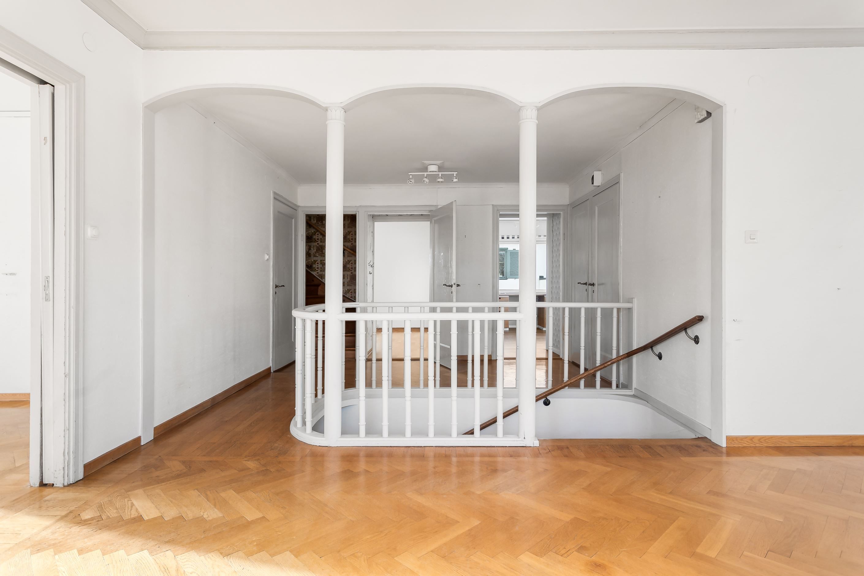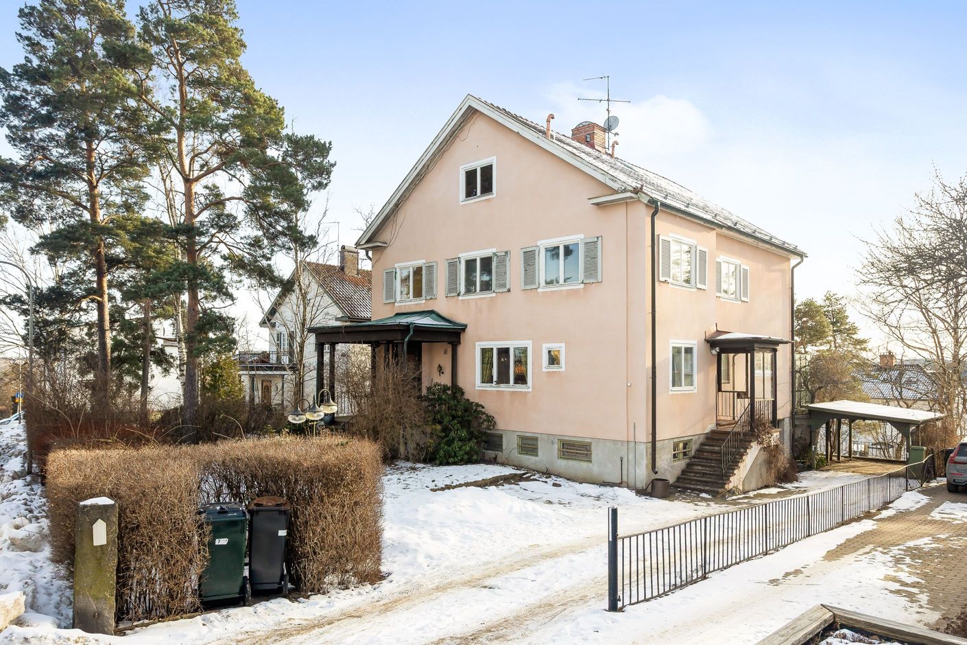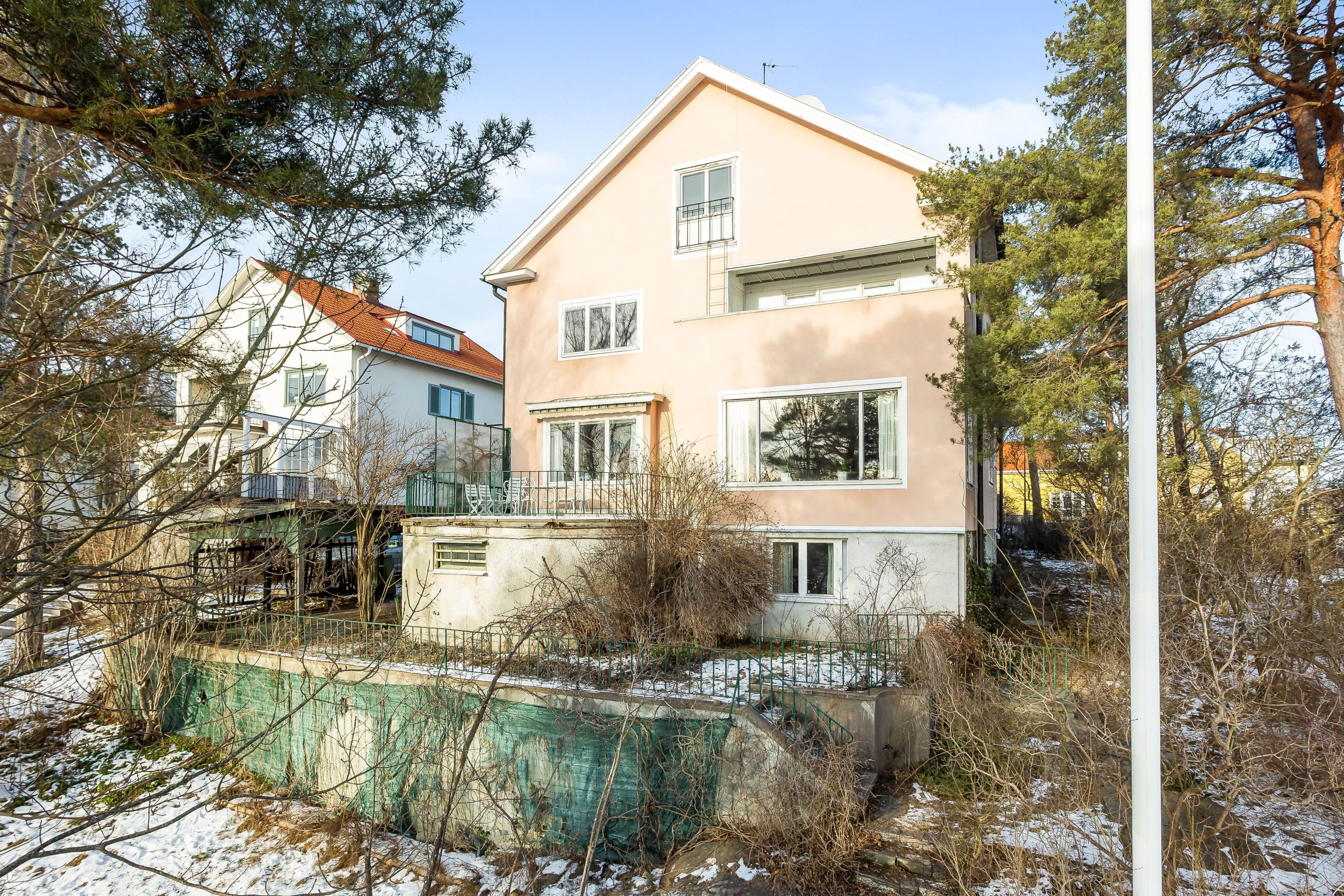 Den storslagna representationsvillan disponeras för dagen som ett tvåfamiljsboende, men är enkel att konvertera till enfamiljshus om man så vill. Byggårscharm bevarad i skjutdörrar, stavlagda golv och dubbla eldstäder, några exempel på det som ger huset sin stilfulla karaktär. Interiört erbjuder planlösningen bland annat mycket generösa och luftiga sällskapsytor med slående vy och takhöjd, dubbla kök, 5-6 sovrum som enkelt kan bli fler samt 3 badrum. Insynsskyddade altaner på både entré- och övre plan med hänförande utsikt och sol från morgon till kväll. Vindsplanet är inrett med två sovrum samt WC/duschrum och souterrängplanet erbjuder sovrum, allrum och tvättstuga samt WC, badrum, bastu. Därtill gott om förvaringsytor att inreda efter önskemål. Praktisk källarentré som leder till biluppfart för flera bilar samt ut på den lättskötta och barnvänliga trädgården. Villan har i stort sett genomgående äldre ytskikt vilket ger tillfälle för kommande ägare att sätta sin prägel på såväl färg- som materialval.