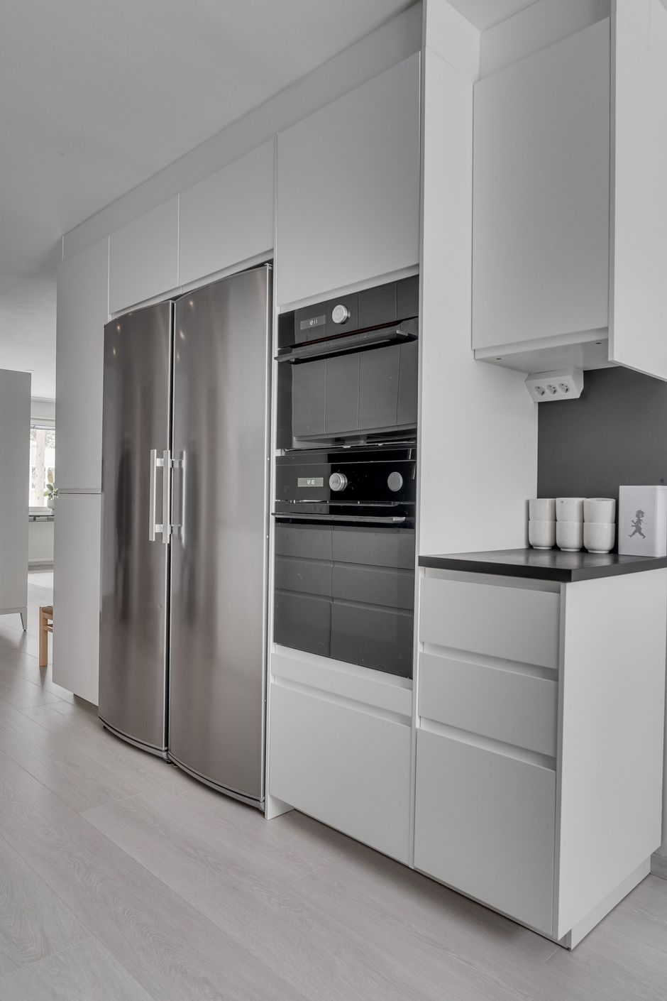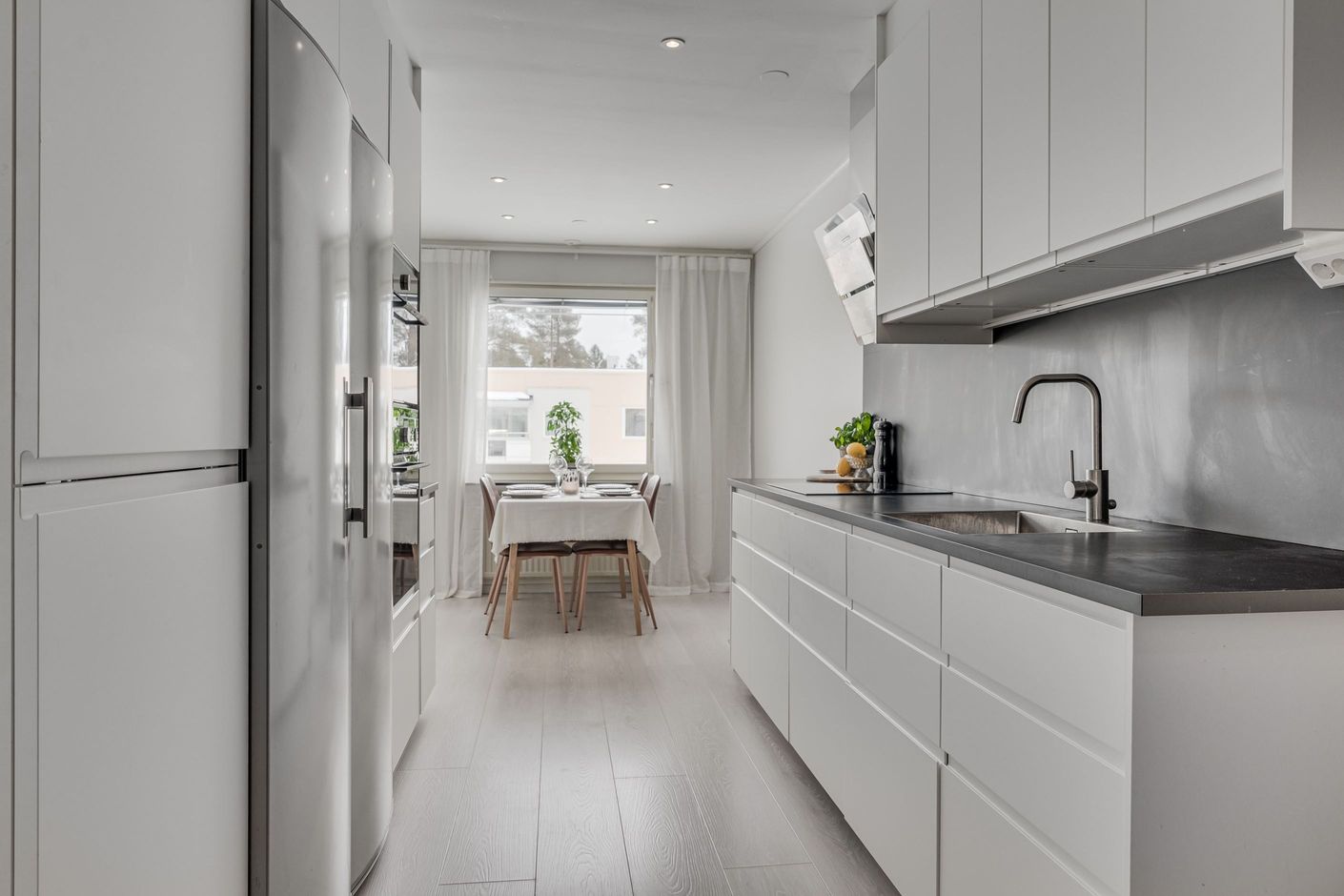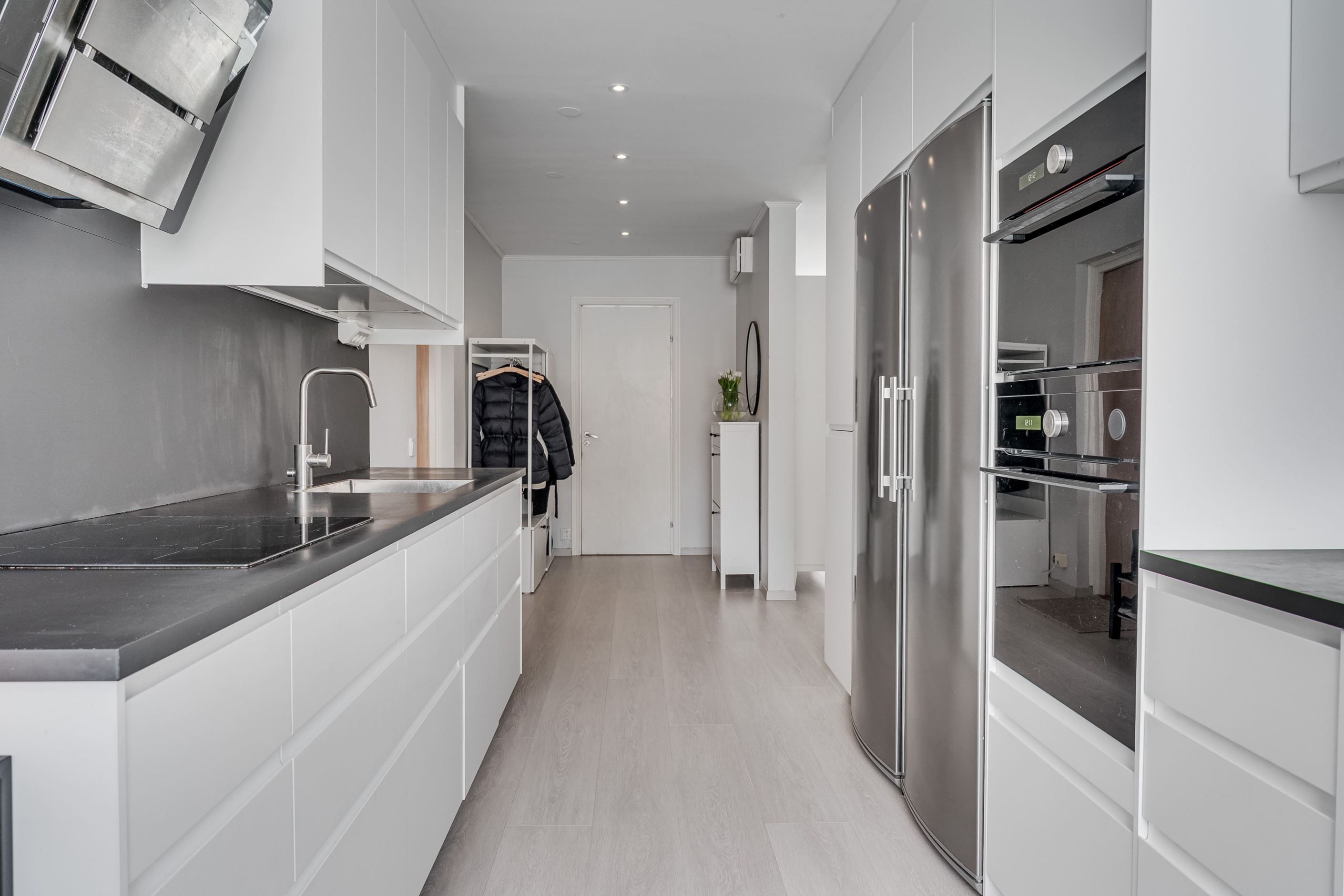 Köket, som renoverades 2020/2021 är smakfullt utformat med generösa arbetsytor, gott om förvaring och stilrena materialval, perfekt för både vardag och umgänge.