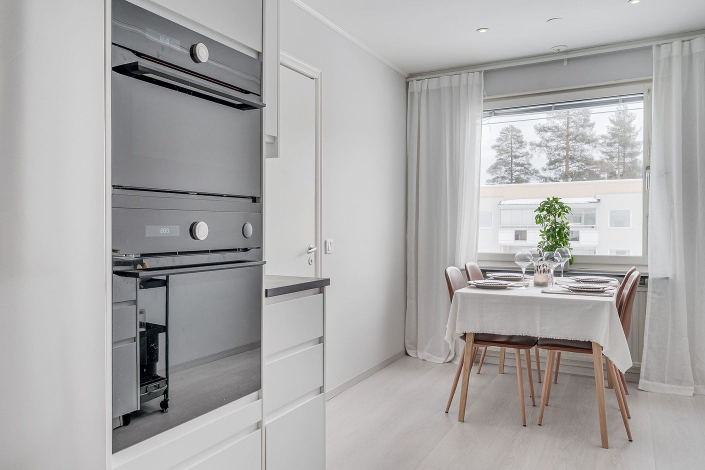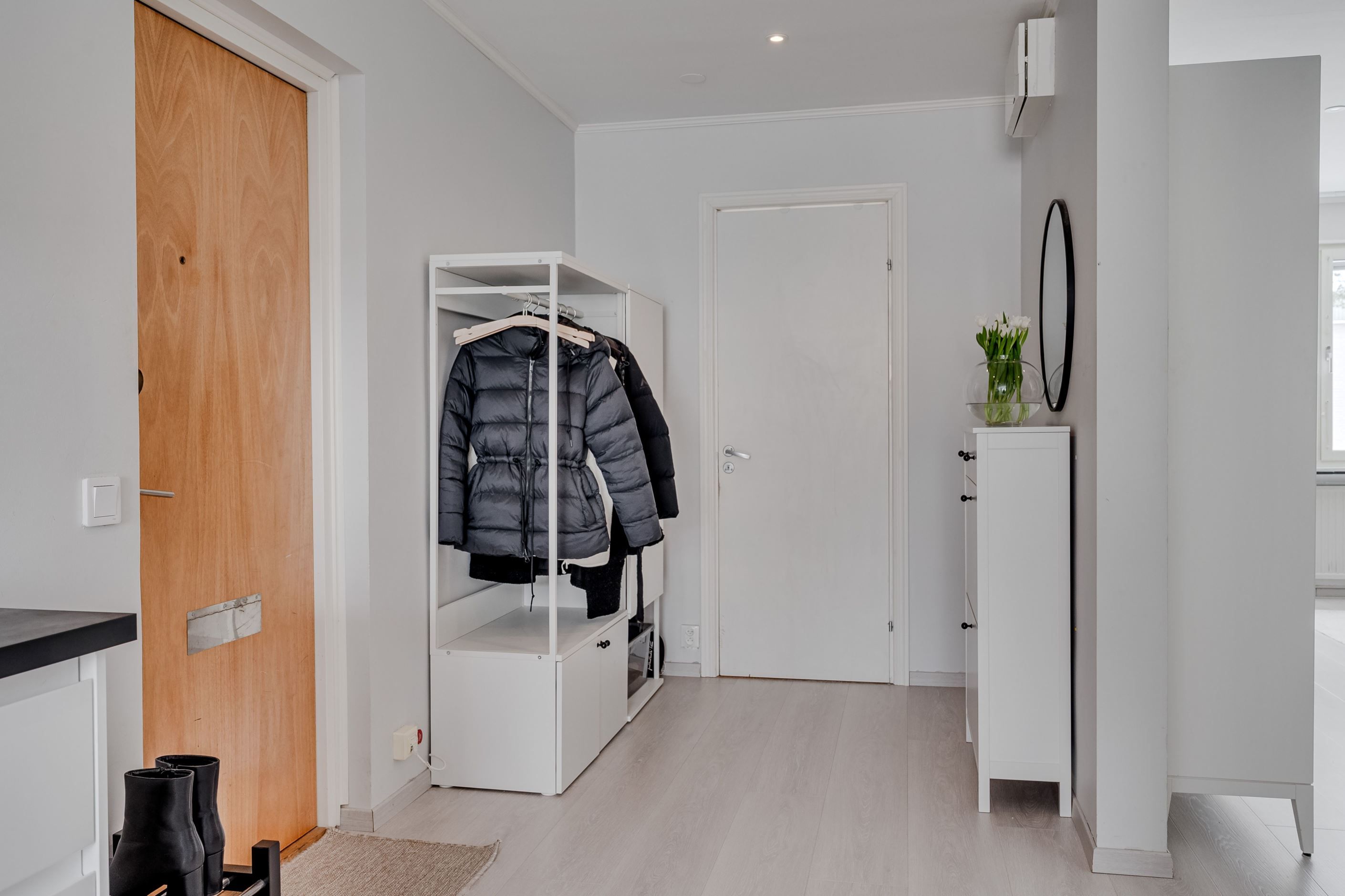 Här möts du av en ljus och modern bostad med en öppen och inbjudande planlösning som skapar en härlig rymd och ett naturligt flöde mellan rummen. De enhetliga ytskikten, i harmoniska och tidlösa färgval, ger ett stilrent helhetsintryck som känns både genomtänkt och ombonat.