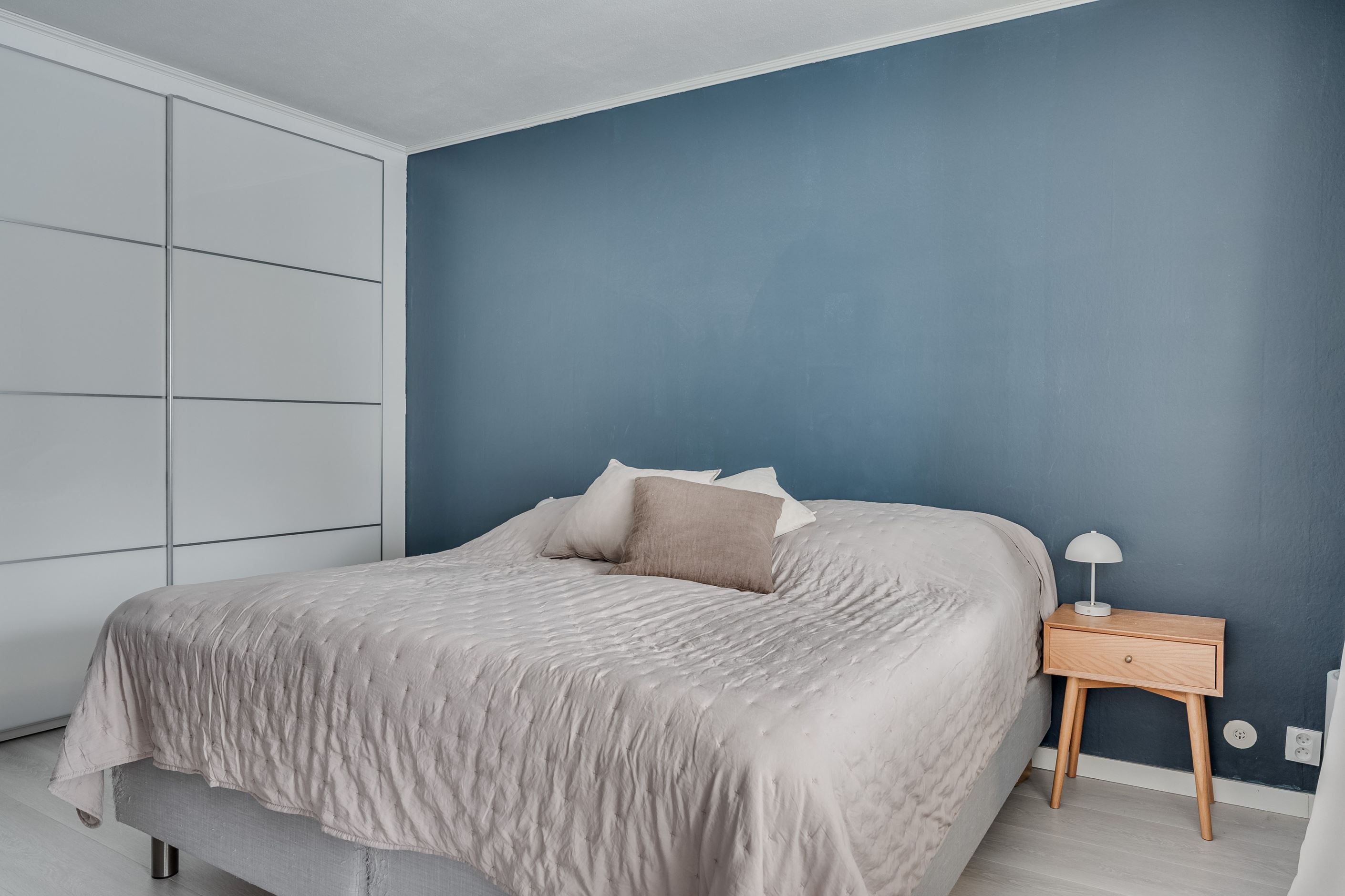 Sovrummet är rofyllt och väl tilltaget, med bra förvaring som förenklar vardagen.