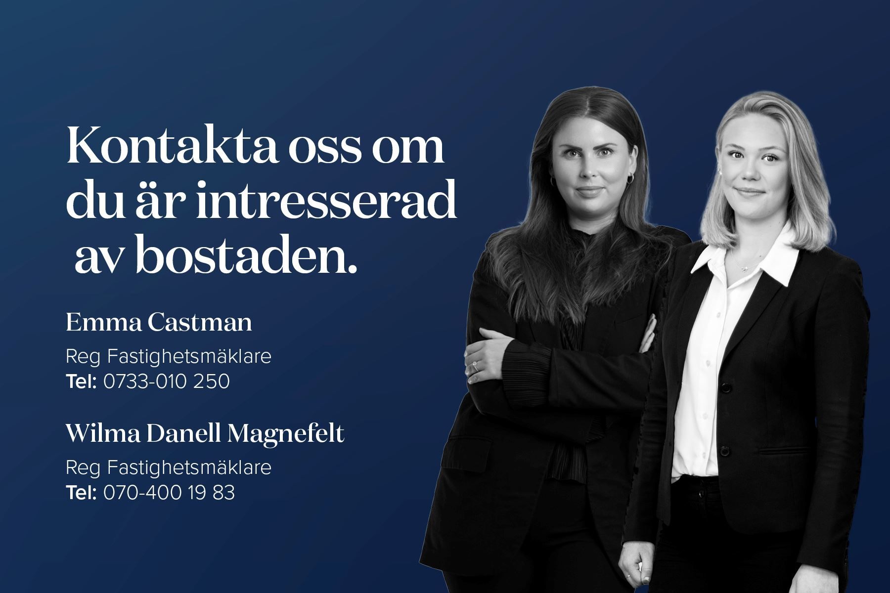 Köket är modernt och sobert inrett med luckor i varm beige ton och har gott om både arbetsyta och förvaring – här finns plats för vardagens matlagning såväl som middagar med vänner. Det fräscha badrummet är helkaklat i en elegant färgkombination vilket skapar en tidlös och exklusiv känsla.