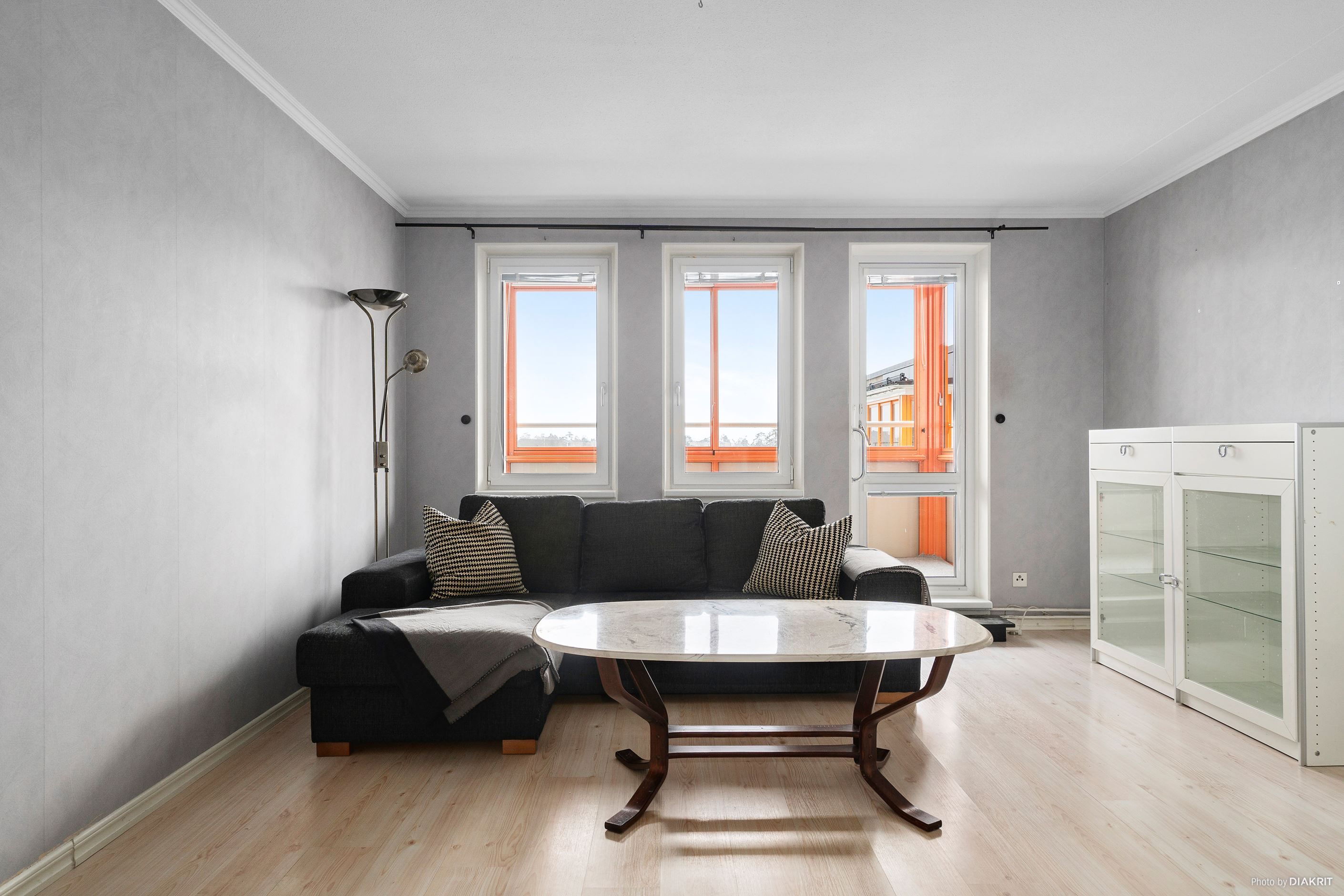 Denna ljusa och välplanerade trea om 81 kvm är belägen högt upp i huset och erbjuder en inglasad balkong i soligt söderläge med vidsträckt, milslång utsikt. Tack vare det höga läget bor du utan insyn och med generöst ljusinsläpp i alla rum.