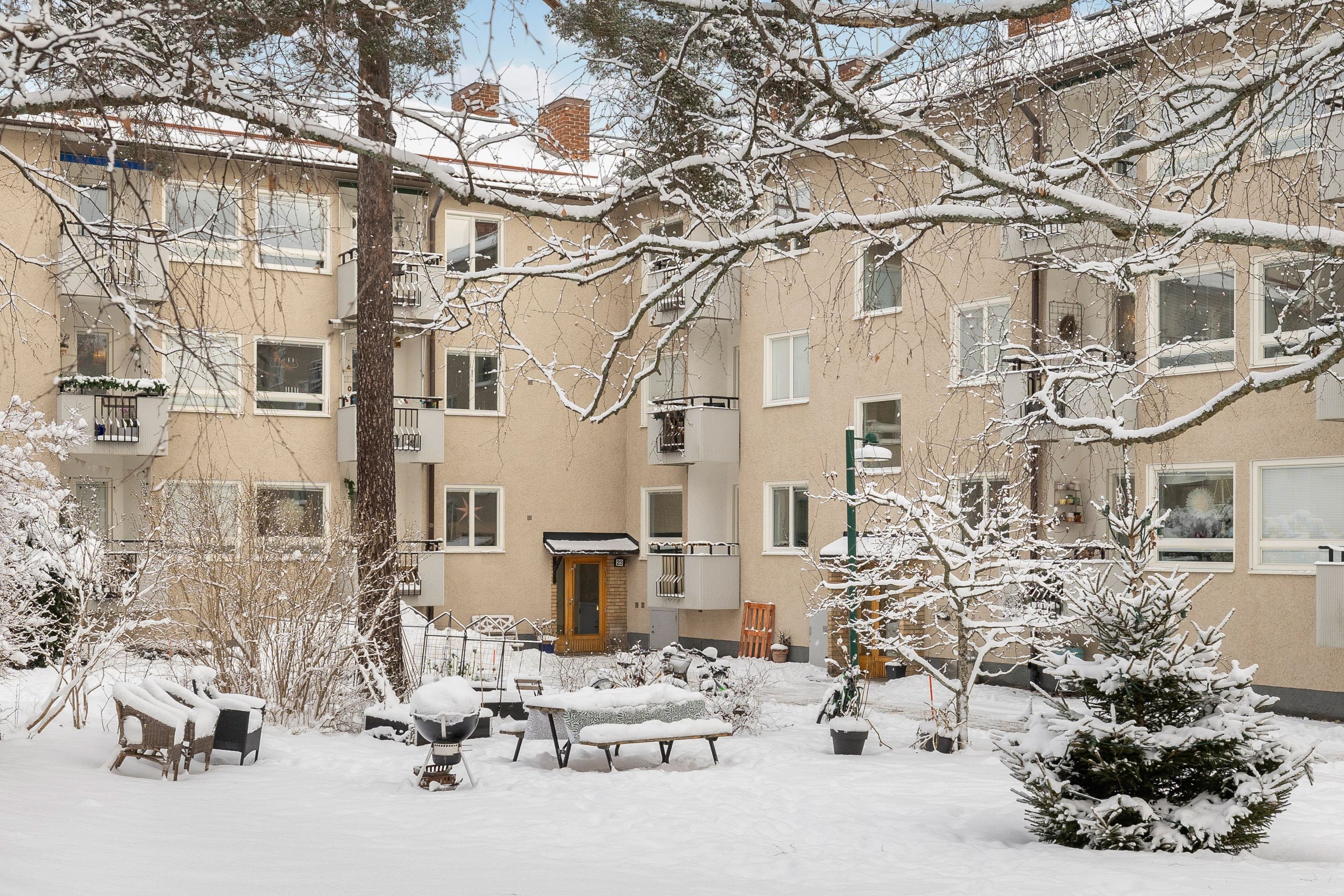 Trerummaren ligger på första våningen i ett charmigt 50-tals hus i Örnstigen, ett omtyckt område känt för sina stora grönytor och utmärkta kommunikationer. Med Norskogsbadet och en tennisbana bara 500 meter bort, bjuder det lugna läget på både rekreation och bekvämlighet. Kanske Täbys mest välskötta förening ger ett tryggt boende.