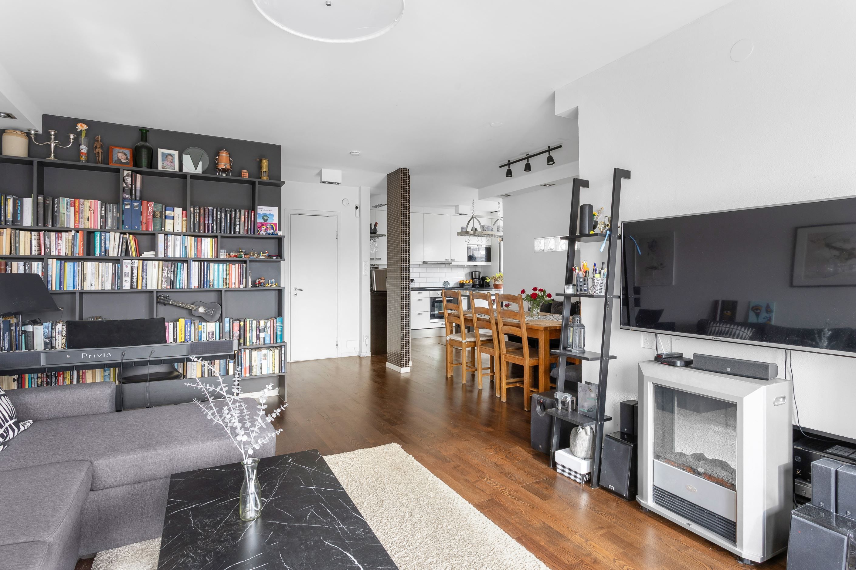 Lägenheten har byggts om rejält och har numera en öppenplanlösning mellan kök och vardagsrum, två stycken bra planerade sovrum samt balkong i i fritt söderläge.