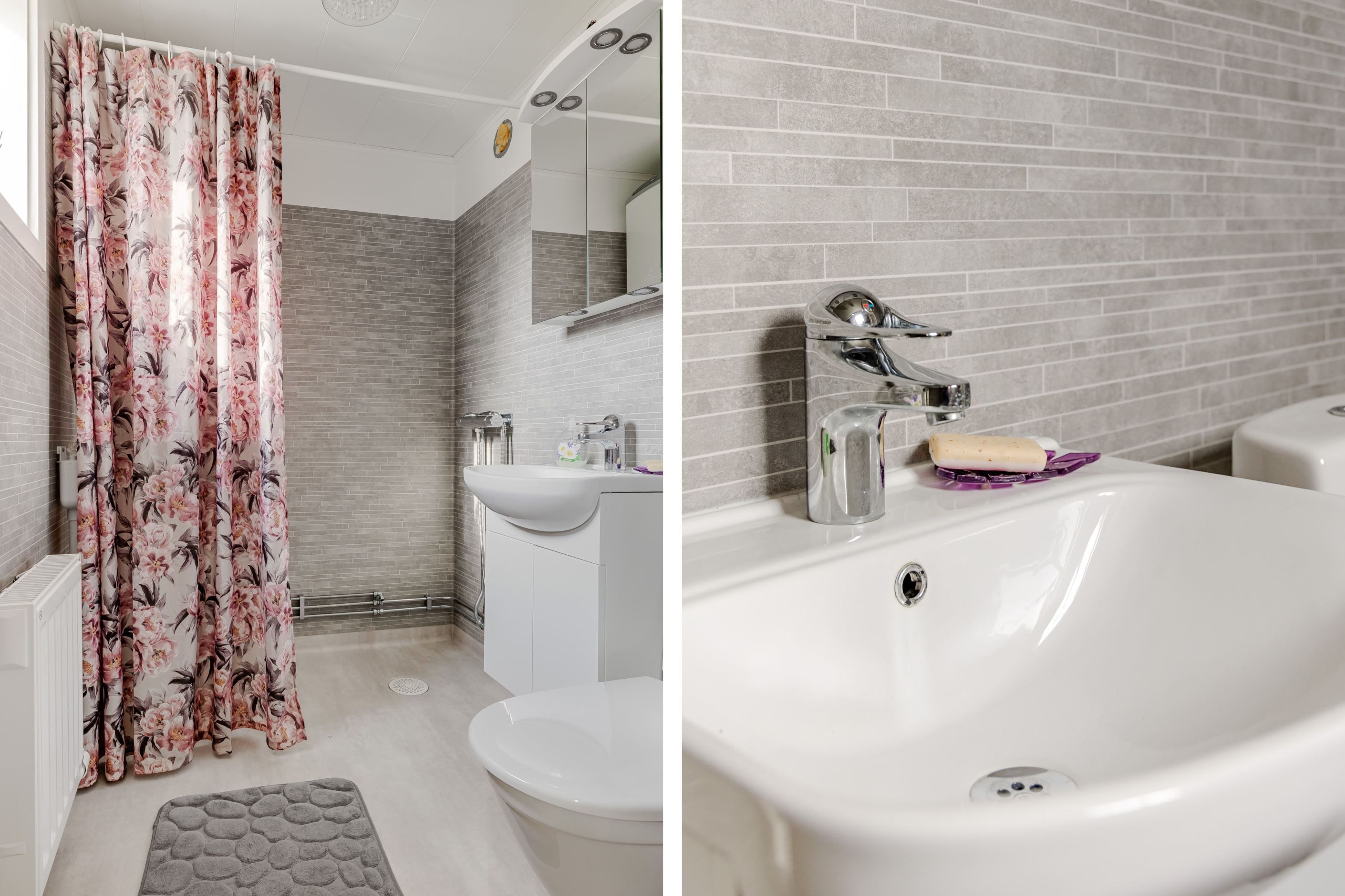 Duschrummet är utrustat med WC, kommod och dusch. Elen har moderniserats under senare år, vilket ger ett tryggt och funktionellt boende. Här finns även förberett för tvättmaskin. Stugan värms upp med energieffektiv luftvärmepump och är ansluten till kommunalt vatten och avlopp samt fiber – perfekt för både fritidsboende och permanent bruk. På tomten finns ett förråd och en charmig blandning av trädgårdstomt och naturtomt, vilket ger både odlingsmöjligheter och en naturnära känsla. Här bor du med lugnt läge, i slutet på gatan, trivsamt område med blandning av bofasta och sommargäster.