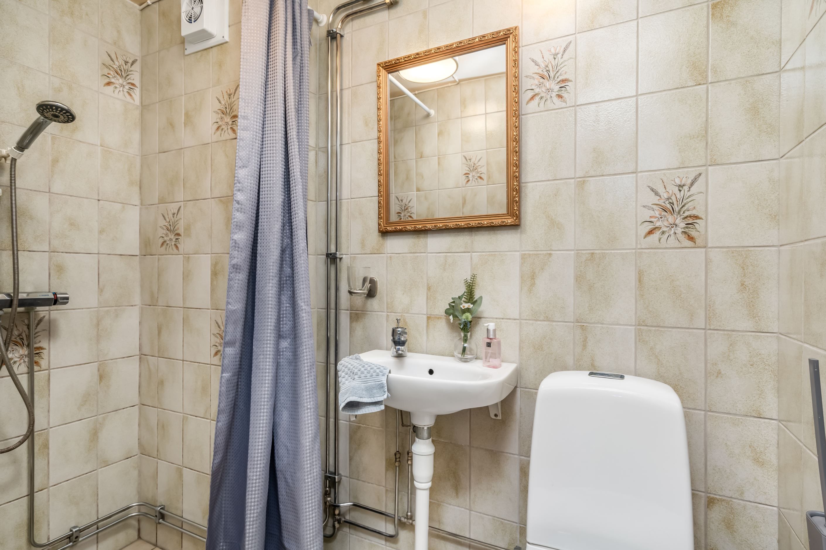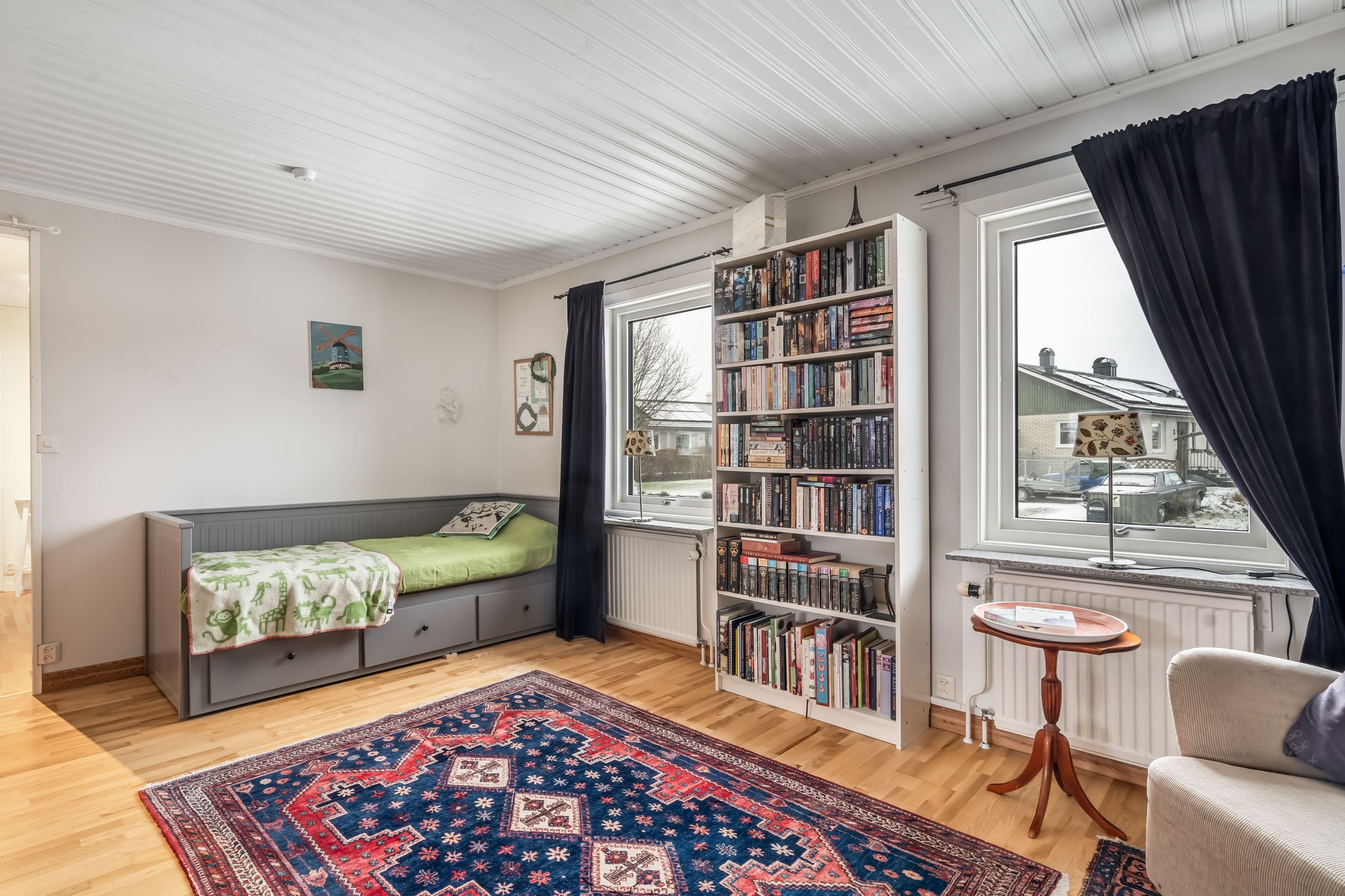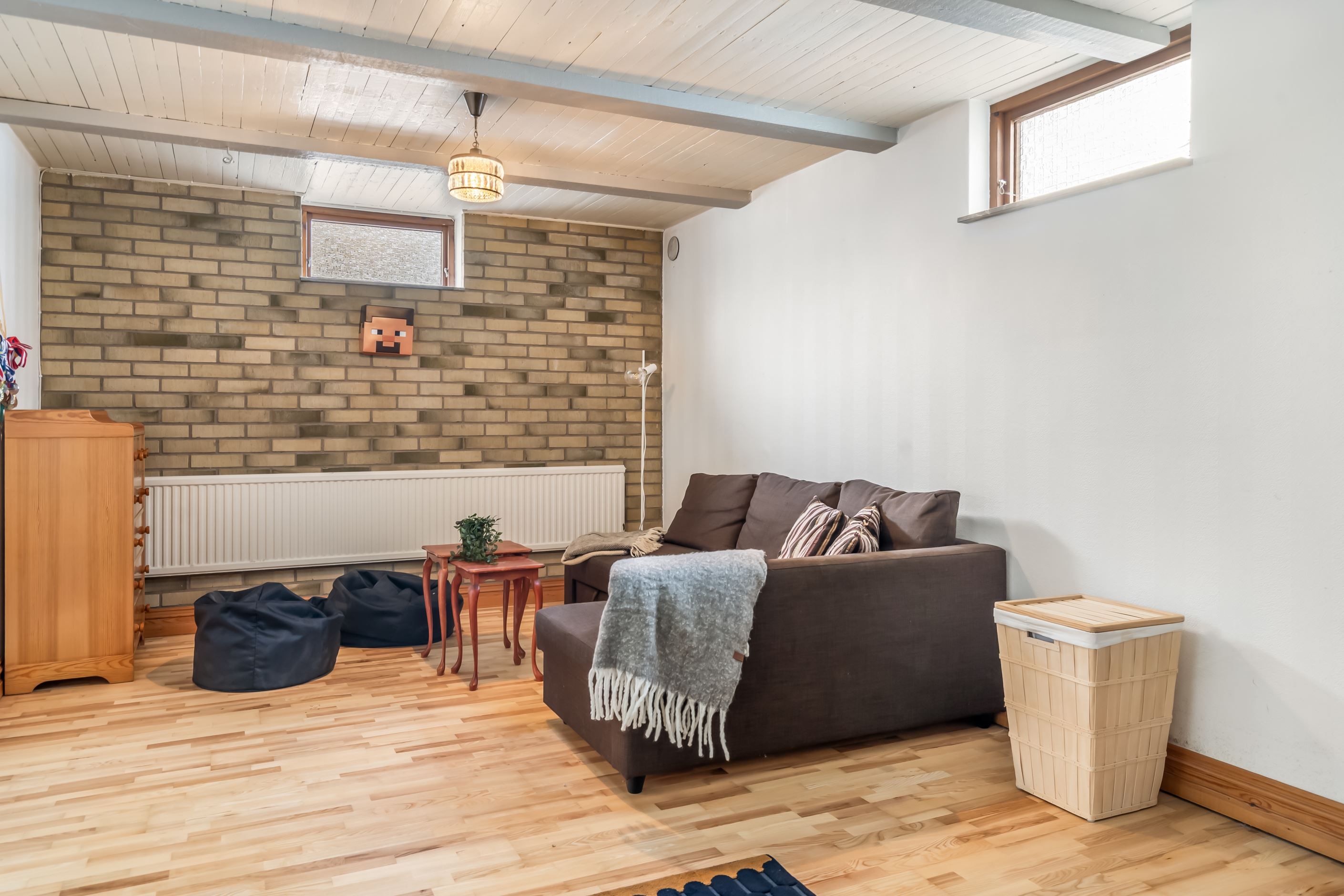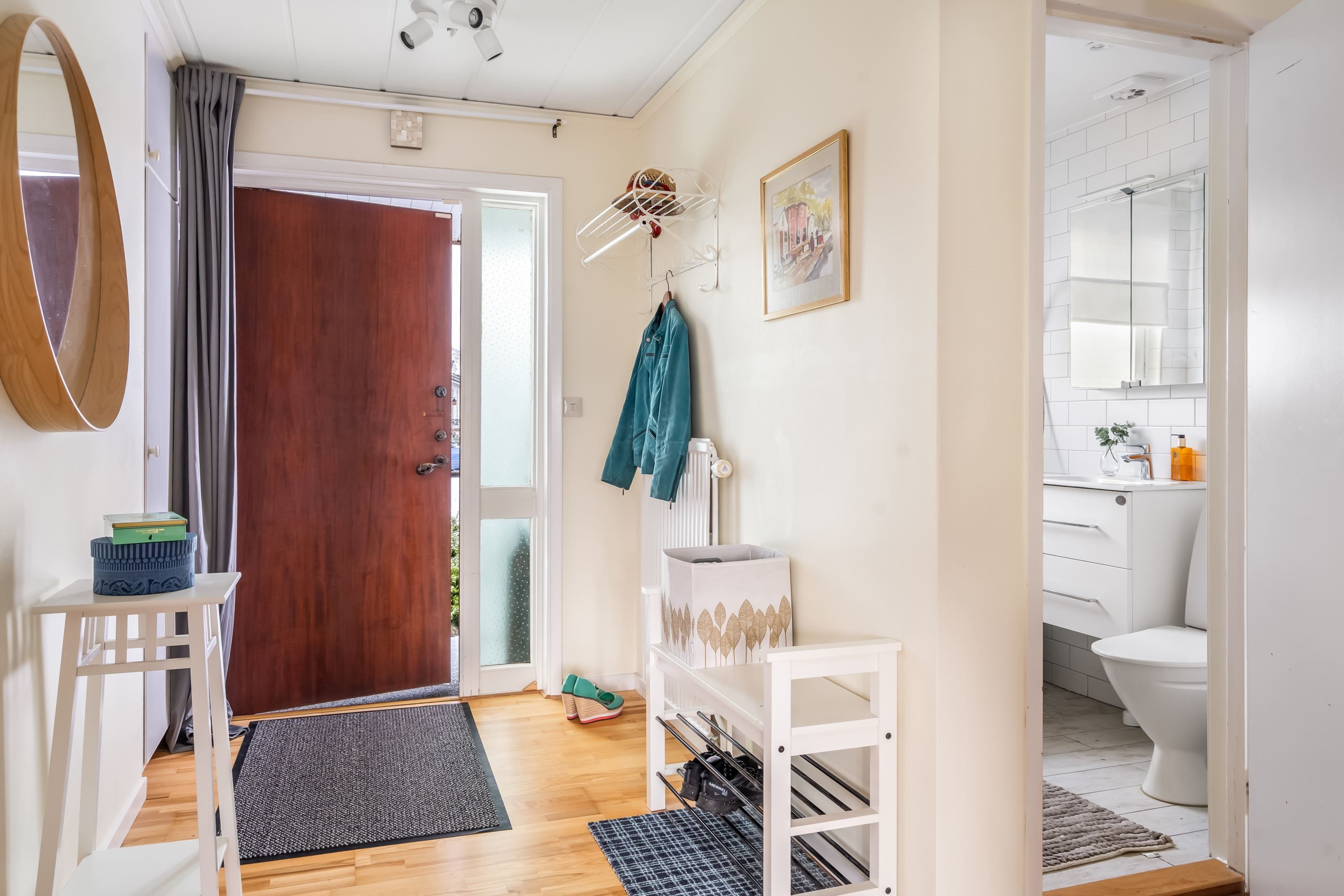 Här möts du av ett ljust vardagsrum med vacker parkett, som tillsammans med det sociala köket skapar en härlig samlingspunkt för både vardag och fest. Badrummet är renoverat och fräscht, och huset håller god standard med bland annat luft-vattenvärmepump som skapar behaglig komfort året runt.