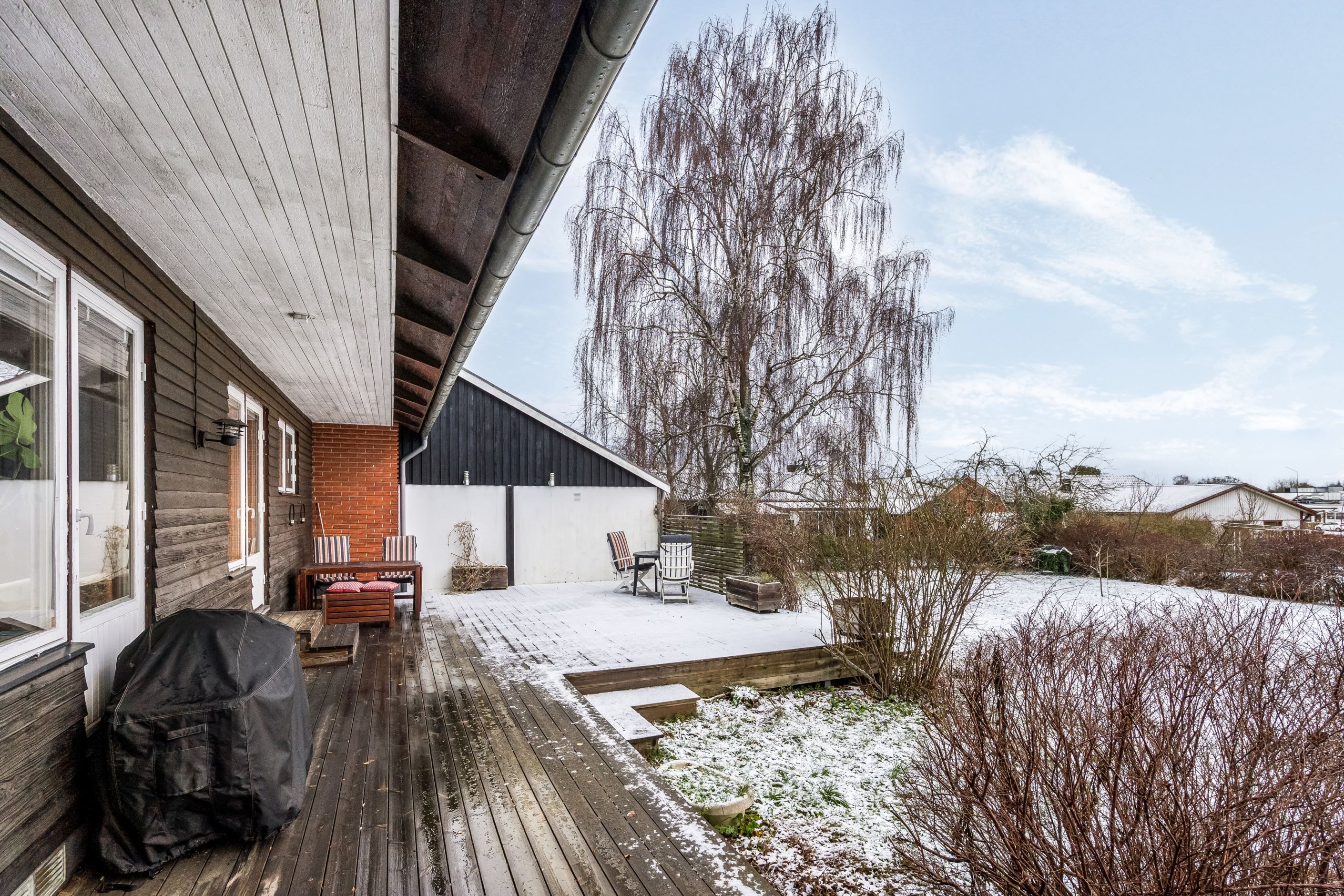 Från köket och vardagsrummet når du ett stort trädäck i soligt söderläge – perfekt för sommarens grillkvällar. Trädgården är lättskött och erbjuder fina möjligheter till lek och odling utan omfattande underhåll.