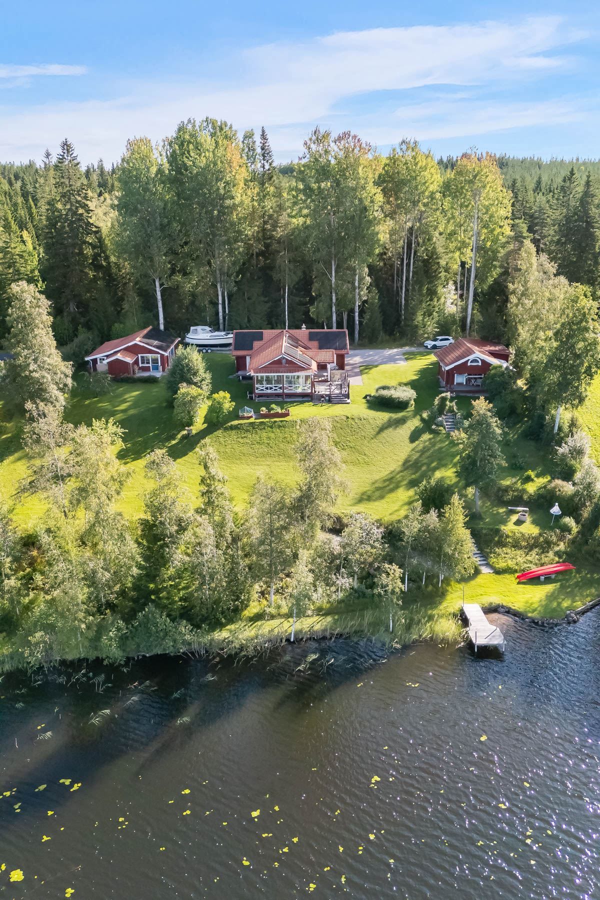 VACKERT SJÖNÄRA BOENDE MED EGEN BRYGGA OCH BÅTPLATS, EN SUPERFIN GÄSTSTUGA, ETT MAGISKT UTERUM OCH RYMLIGT GARAGE - ETT BOENDE MED DET LILLA EXTRA! Vad står på din önskelista? Föreställ dig ett hem, eller kanske ett fritidshus, som erbjuder det bästa av båda världar – ett ställe där familjen kan trivas året om. Huset, byggt 2001 och smakfullt utbyggt 2010, ligger på en magisk plats som verkligen lever upp till alla dina drömmar om ett harmoniskt liv i naturen. Med Sinksjön precis intill, kan du enkelt ta en tur med roddbåten eller glida fram på din SUP. Kanske njuter du av ett uppfriskande vinterbad eller ett kvällsdopp under en ljum sommarkväll, medan solen sakta sjunker ner över vattnet. Du har din egna brygga och båtplats via ett servitut. Vintertid finns det superfina skidspår och skoterleden går också över sjön.