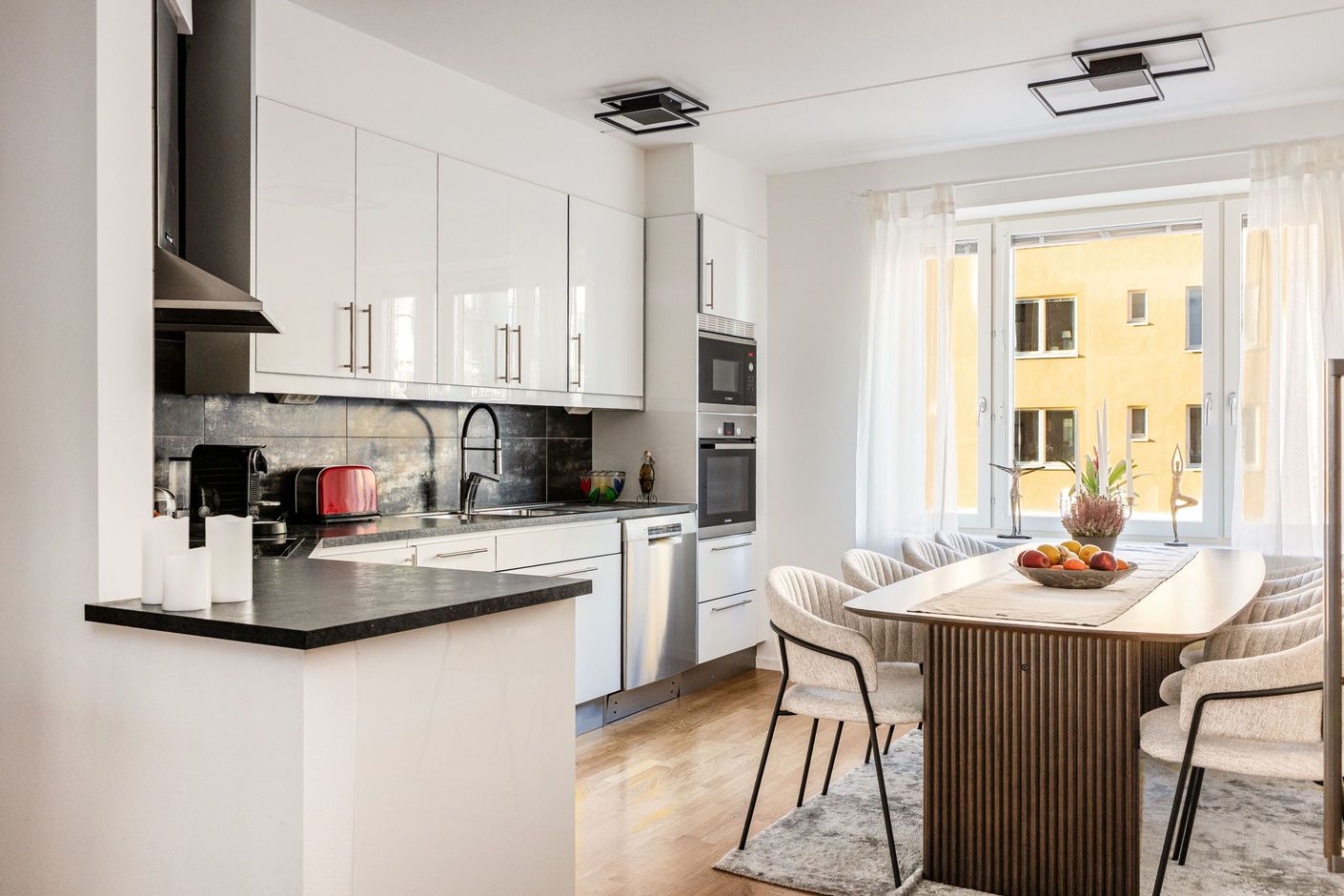 Välkommen till ett boende som är svårt att släppa taget om – en etagelägenhet vid Mälarens strand där varje detalj samspelar för att skapa en plats att verkligen trivas på. Här möts du av en privat entré som genast skapar känslan av ett eget litet hus, komplett med praktiska förråd och en planlösning som är lika funktionell som den är elegant. Den imponerande takhöjden, det inglasade uterummet och den generösa uteplatsen mot den grönskande innergården bildar tillsammans en helhet som känns både exklusiv och hemtrevlig. Här bor du i ett lugnt och ombonat kvarter, samtidigt som närheten till allt – Mälarens promenadstråk, service, grönområden och stadens puls gör vardagen både enkel och inspirerande.