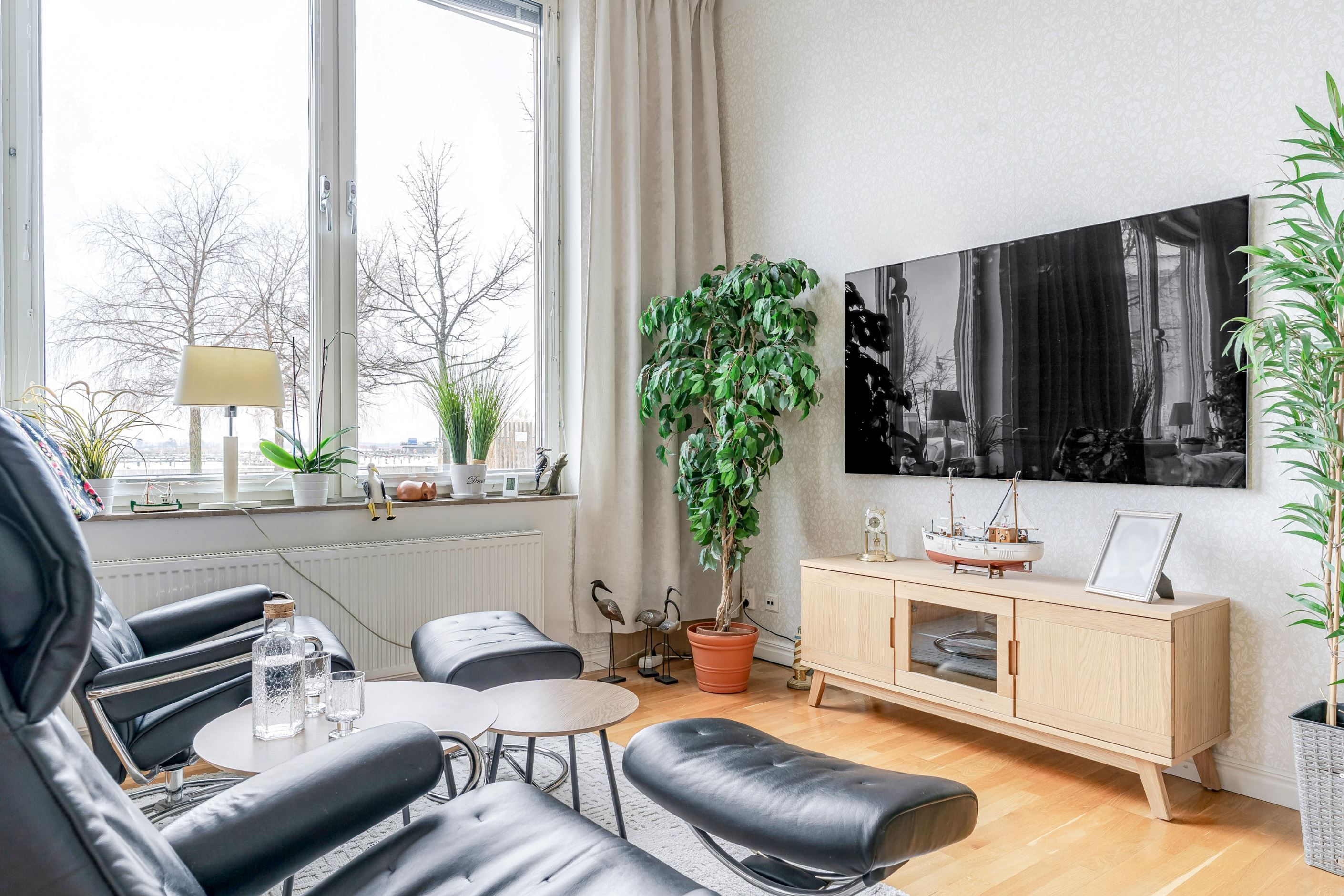 Här är det känslan – inte ytan – som tar plats! Redan i dörröppningen möts du av en imponerande rymd där den höga takhöjden och de stora fönsterpartierna suddar ut gränsen mellan inne och ute. Ljuset flödar in och utsikten mot Mälaren blir en självklar del av bostadens uttryck. Detta är en 2 rum och kök om 67 kvm som upplevs betydligt större än siffrorna antyder – tack vare en genomtänkt planlösning och en social yta som verkligen levererar.