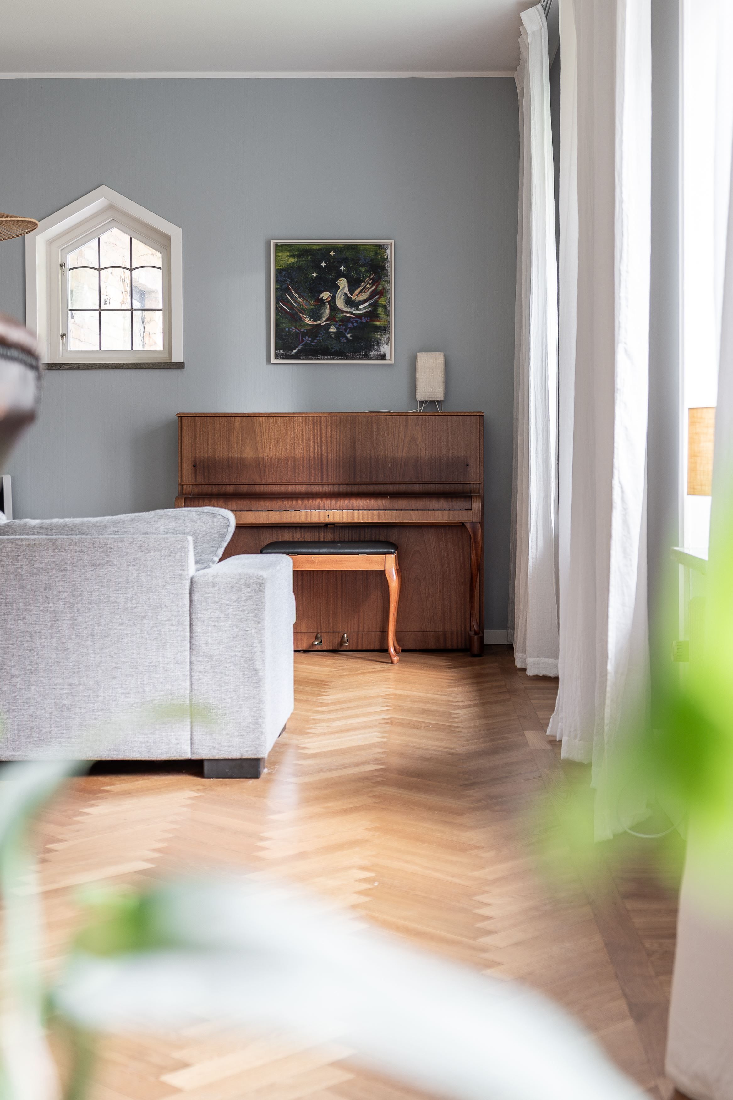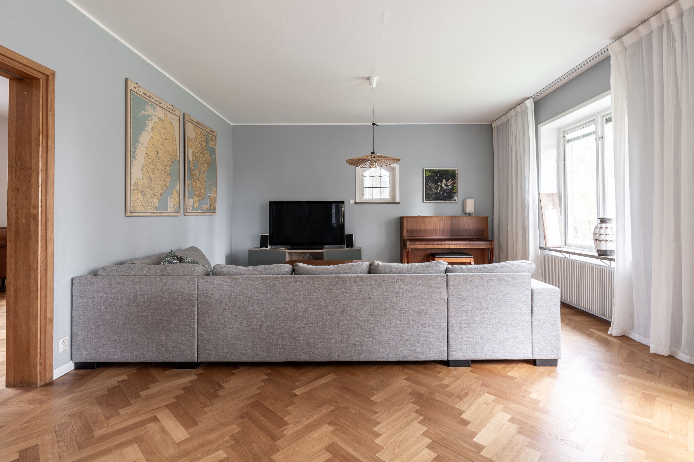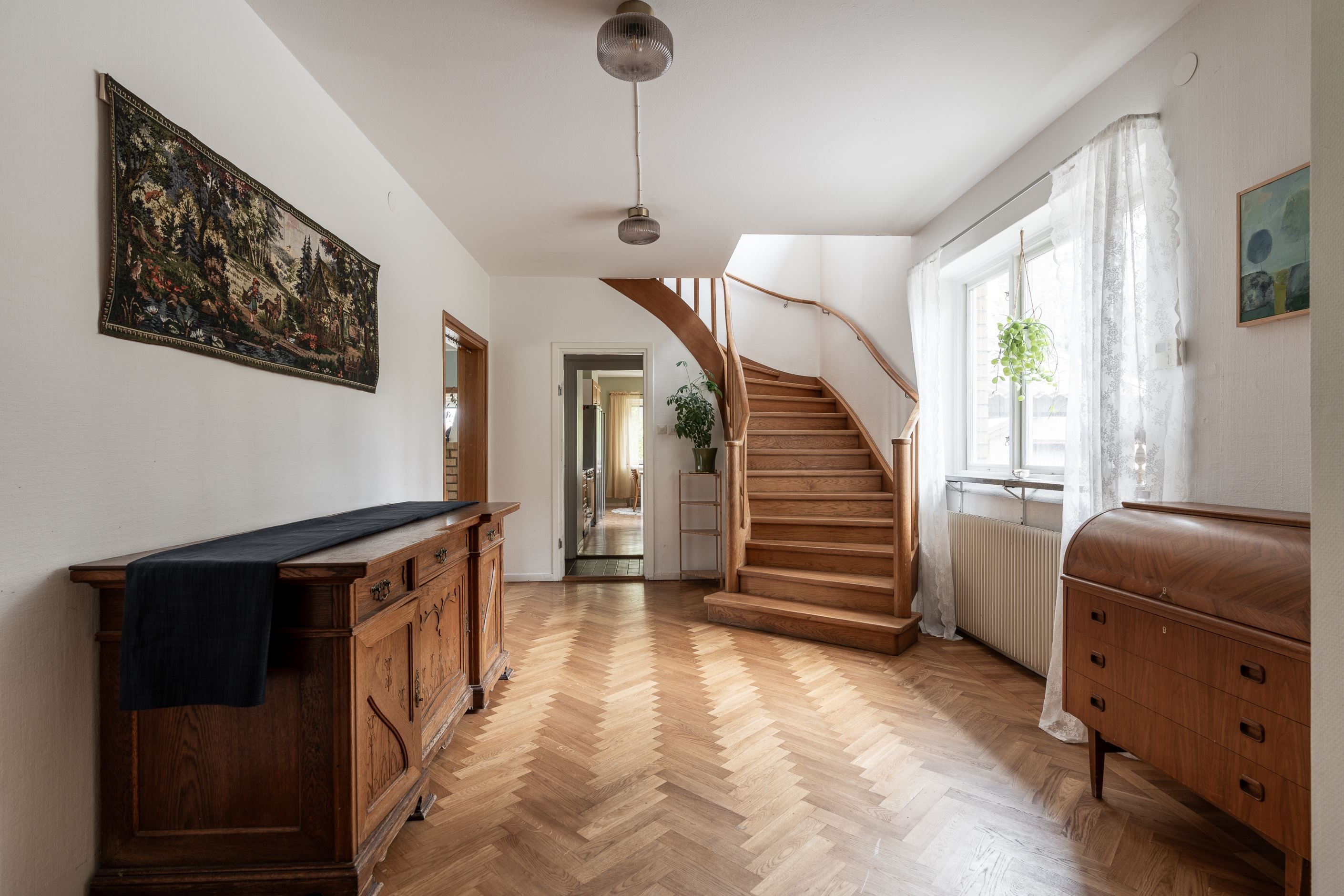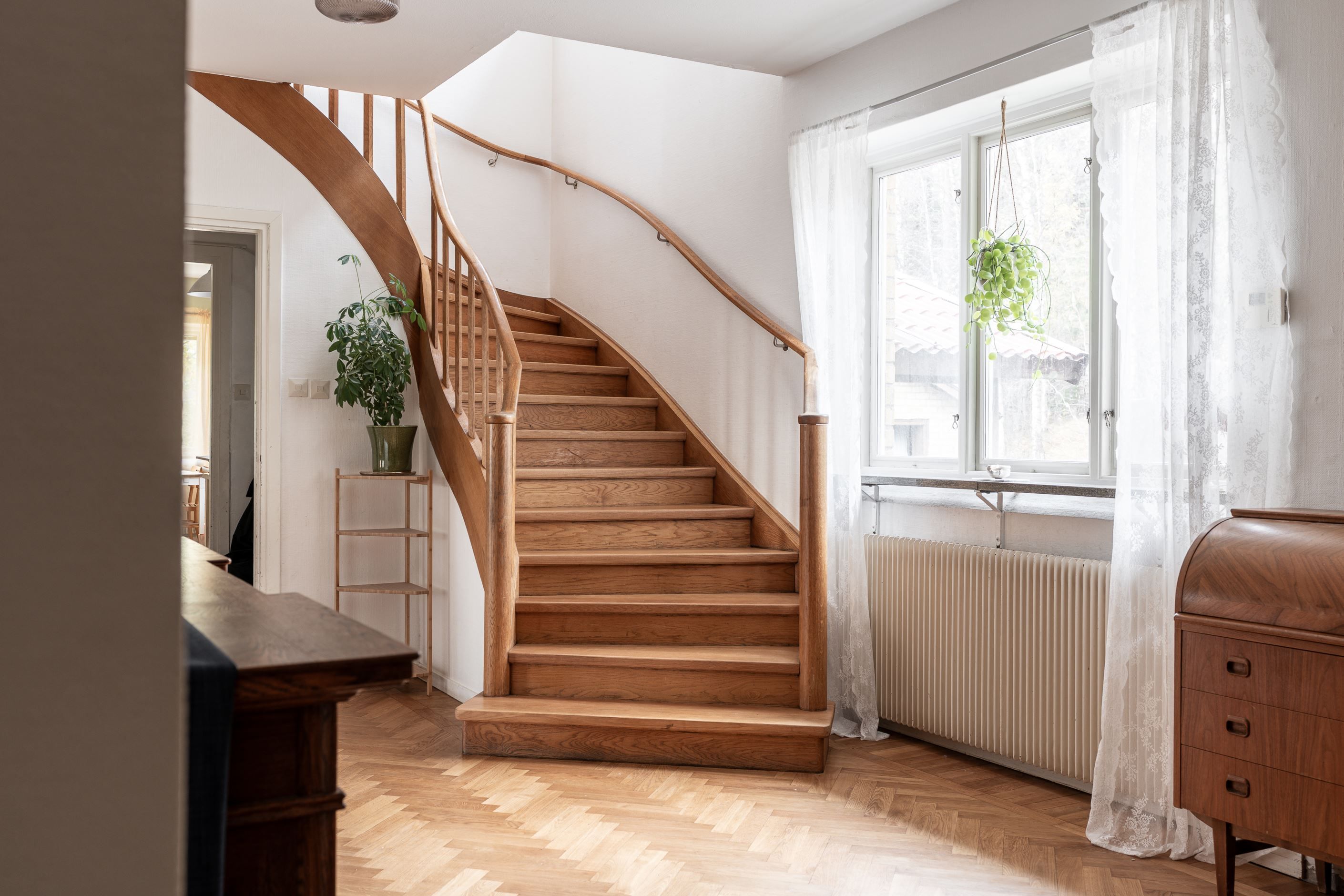 Huset bär på en historia men har samtidigt fått nytt liv! De senaste åren har det renoverats med varsam hand och badrummet fått ett modernt och stilrent utseénde, trappan har blivit vackert slipad och på hela övre plan ligger nya golv. I hallen, vardagsrummet och matsalen breder en klassisk fiskbensparkett ut sig – en detalj som direkt fångar känslan av kvalitet och tidlös elegans. Självklart finns en eldstad som bjuder på hög trivsel de kallaste dagarna och i detta hemmet behöver man inte tulla på något då ytan är väldigt generös.