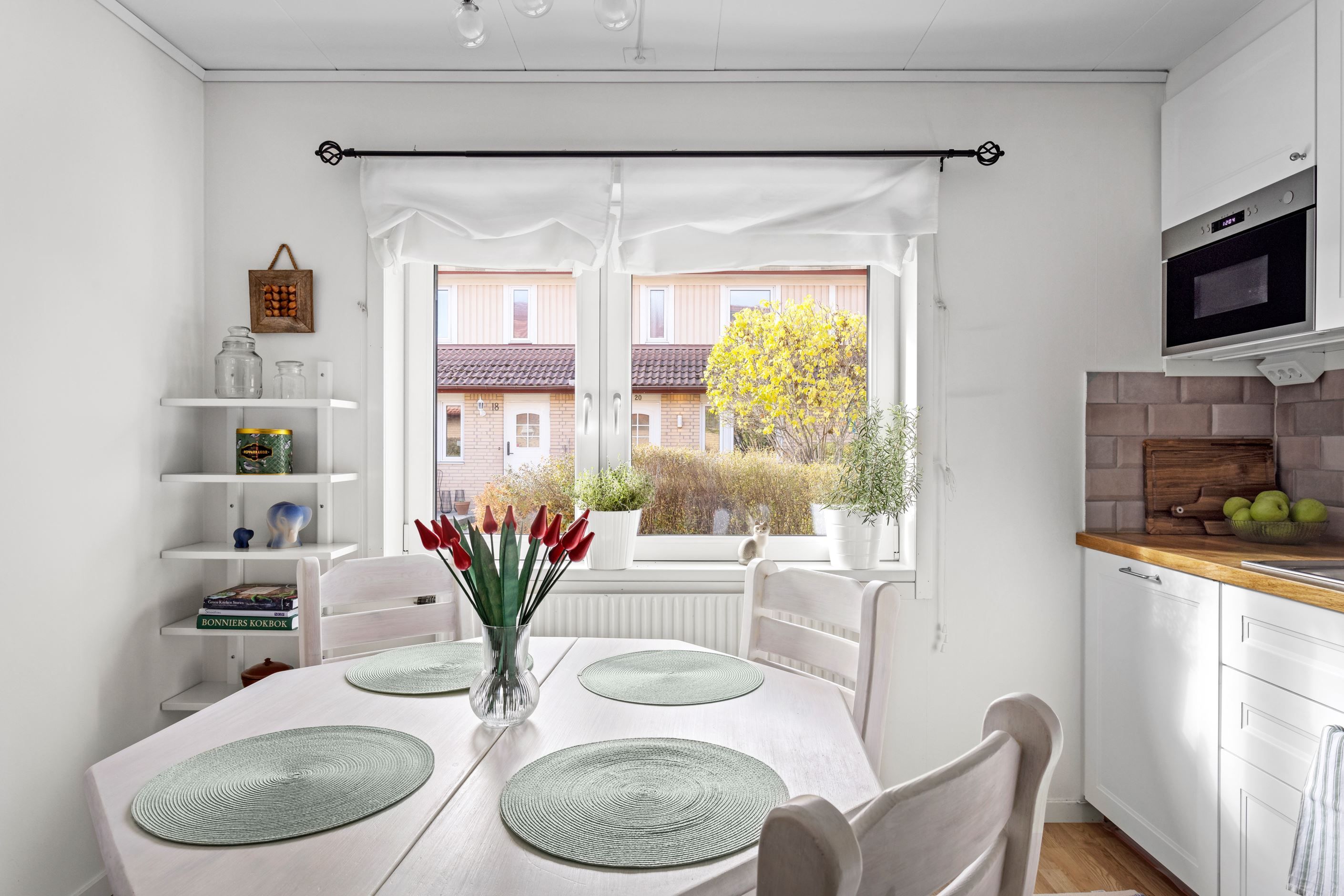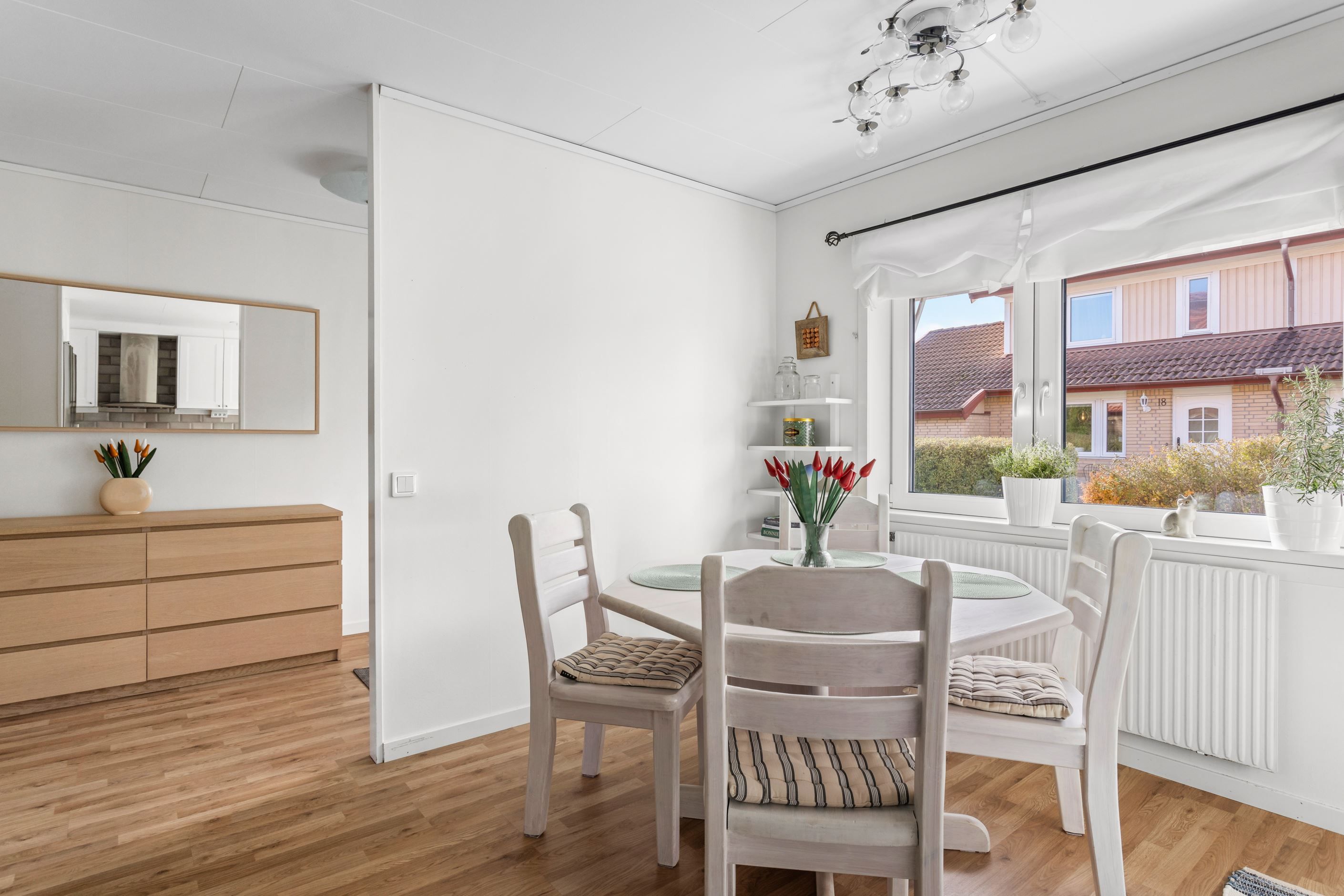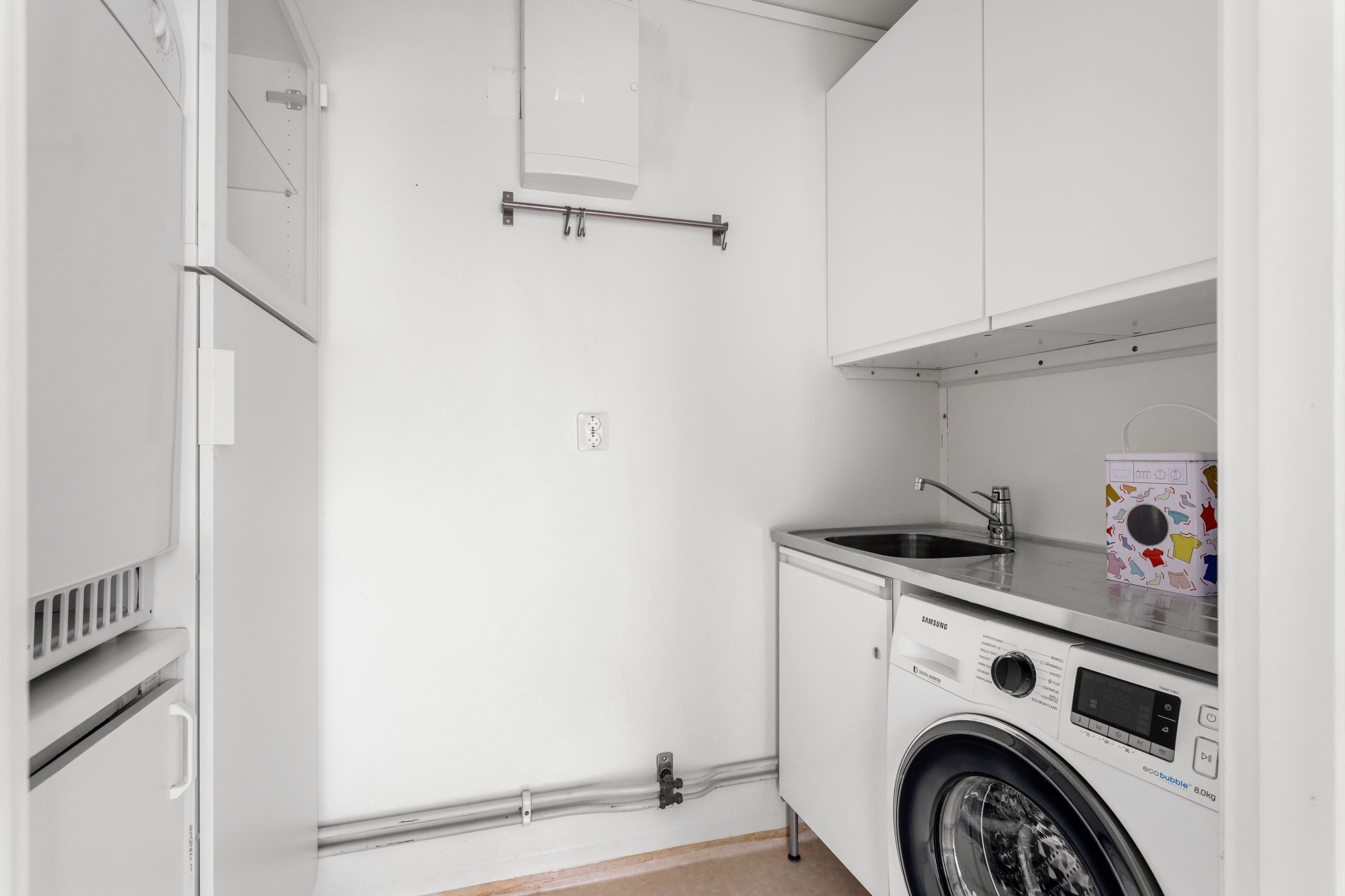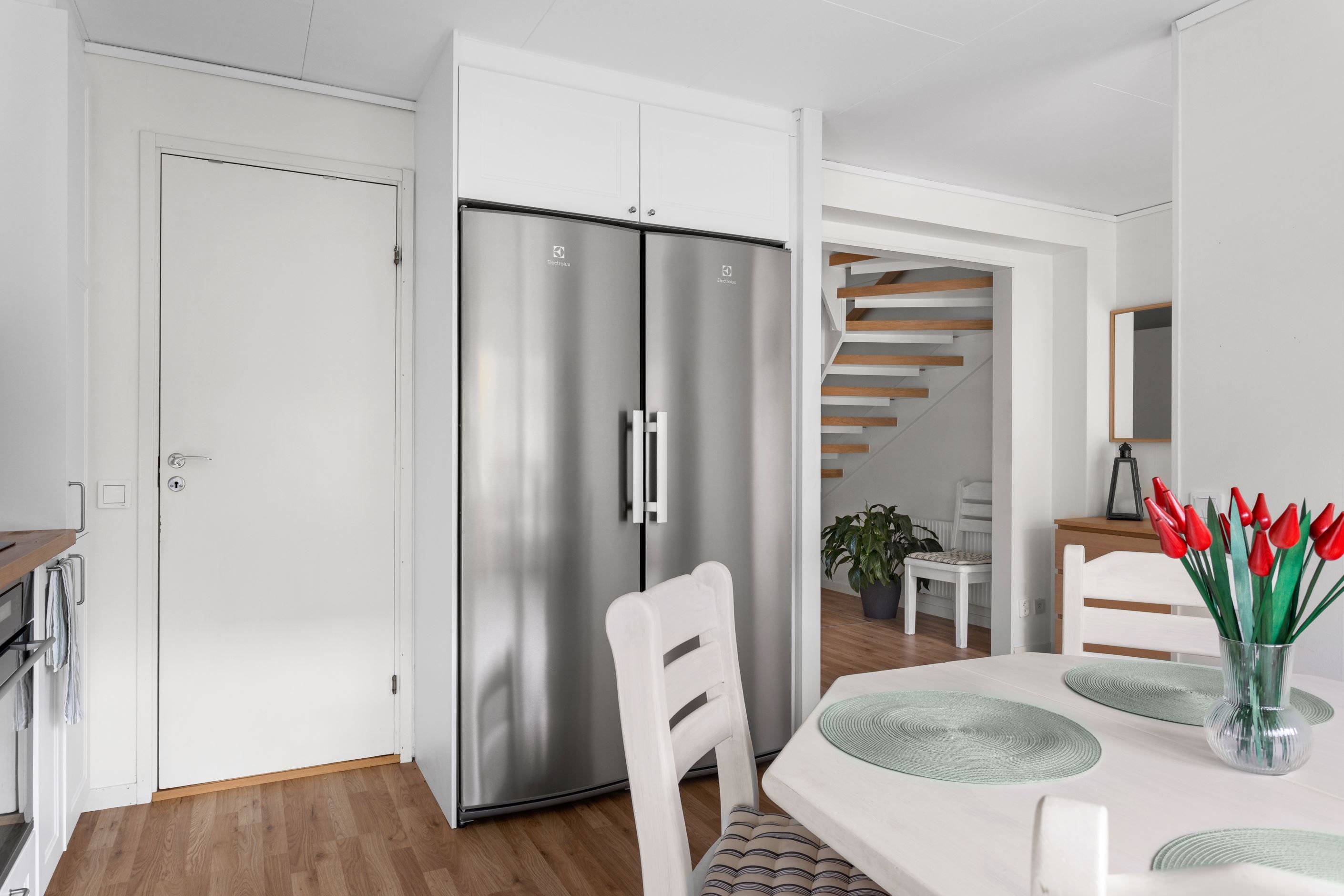 När ni tar första steget in genom entrédörren blir ni genast omfamnad av den inbjudande hallen som vägleder er in till samtliga rum på entréplan. I hallen finns det gott om förvaring och avhängning möjligheter. I anslutning till hallen finner ni hemmets nav, nämligen köket. Här finner ni ett stilrent och modernt kök med matplats för ca 4-6 personer. Köket blir den perfekta platsen att utvidga era kulinariska mat kunskaper framför vänner och bekanta. Intill köket finner ni en egen tvättstuga med tvättpelare som underlättar vardagens bestyr. Vidare på entréplan nås den ljusa och härliga vardagsrummet som inbjuder till sociala tillställningar med familj och vänner.
