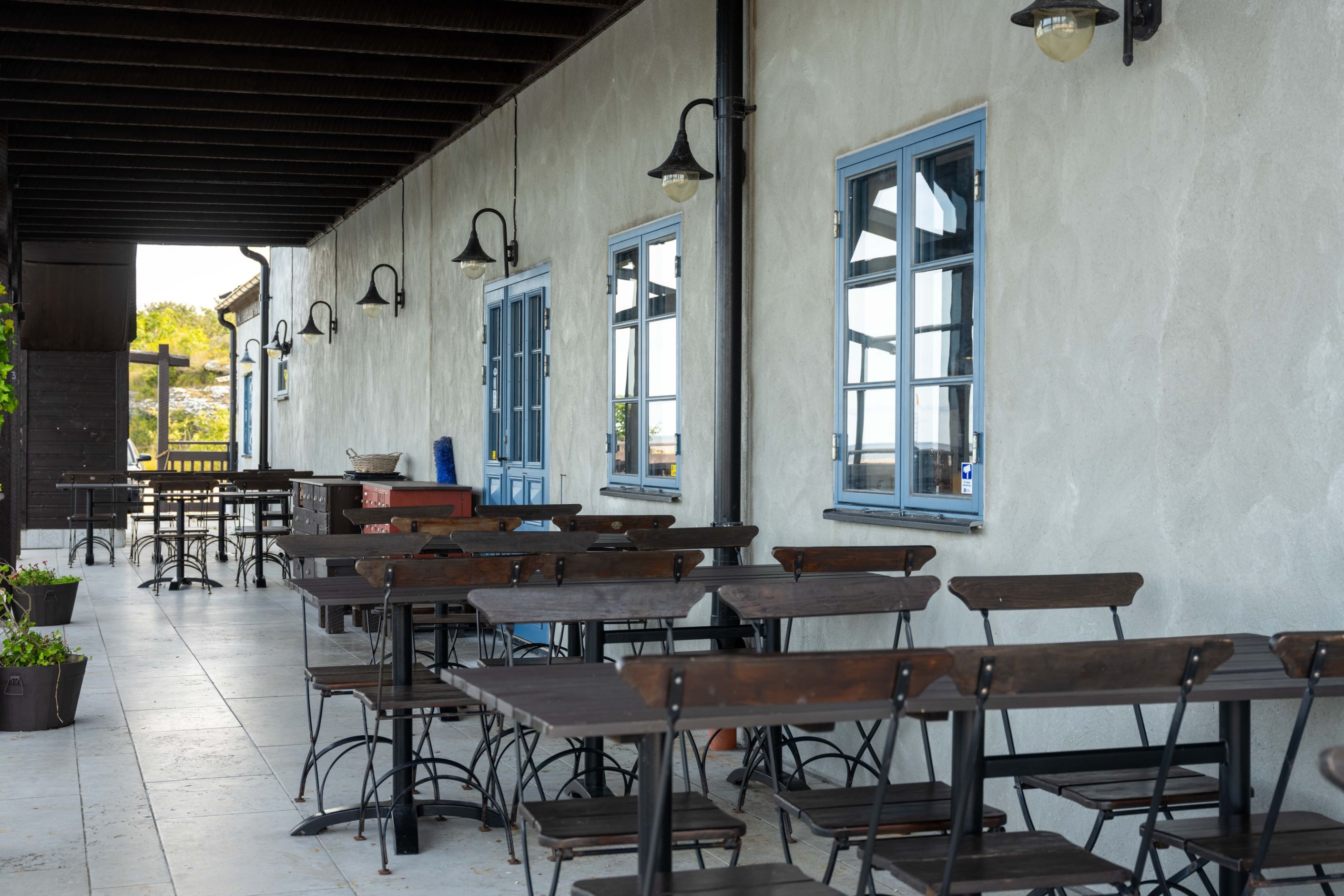 Idag hyrs restaurangytan ut och inomhus finns plats för 160 glada matgäster, och ute i solen kan du duka upp för ytterligare 180 personer, perfekt för kräftskivor, bröllop, after beach eller varför inte Gotlands bästa bouillabaisse-afton? Fastigheten säljs utan restaurangens inkråm som tillhör hyresgästen.