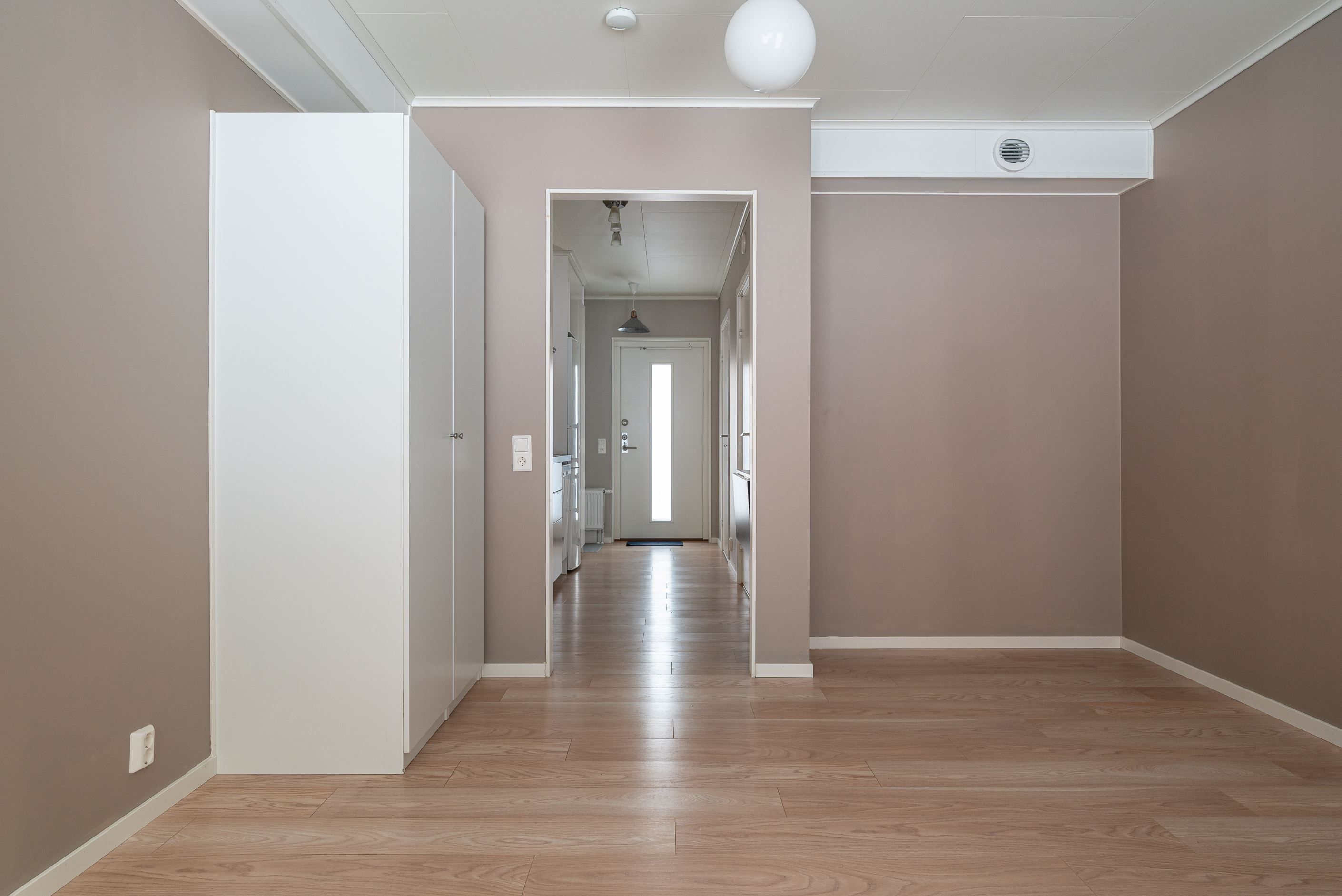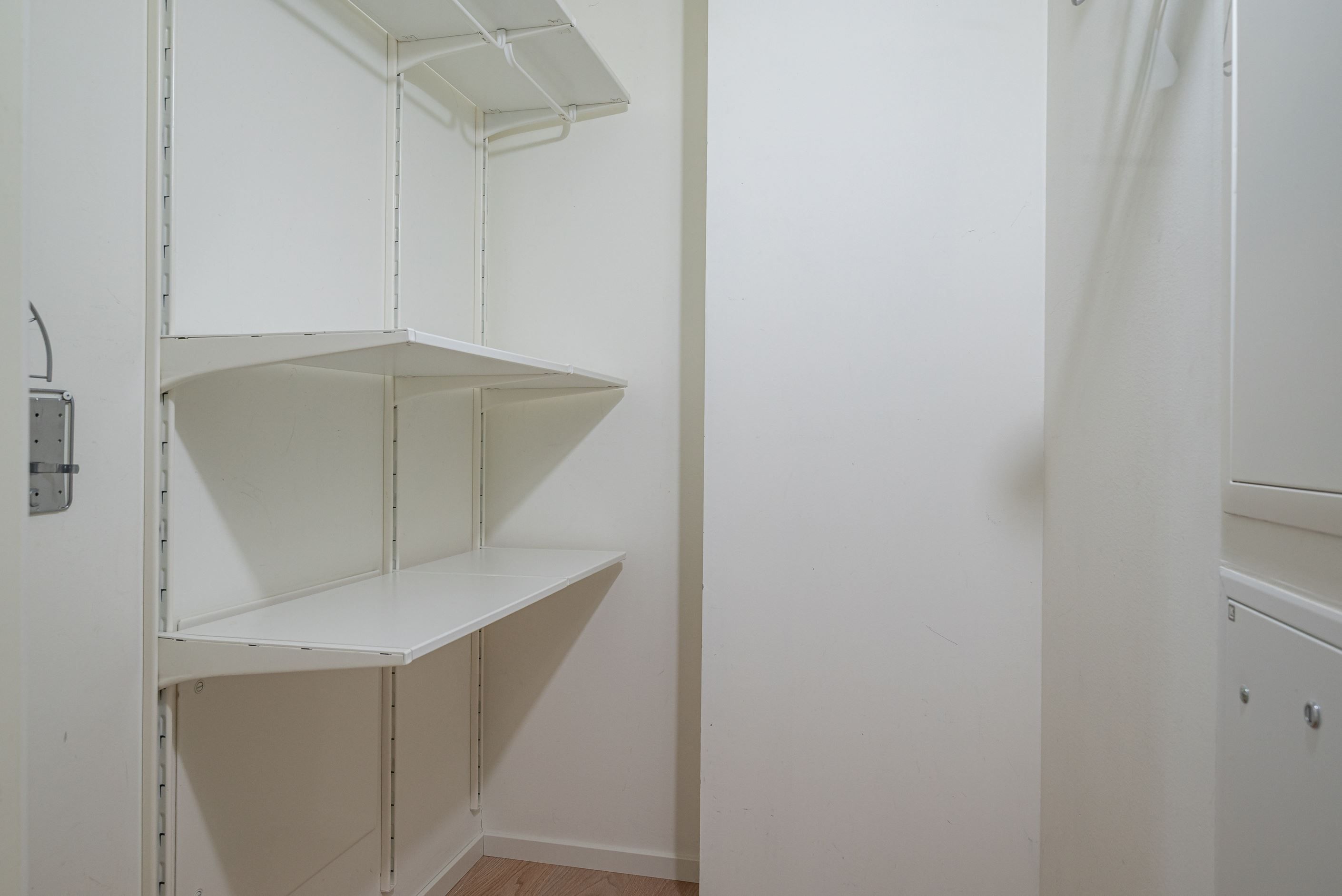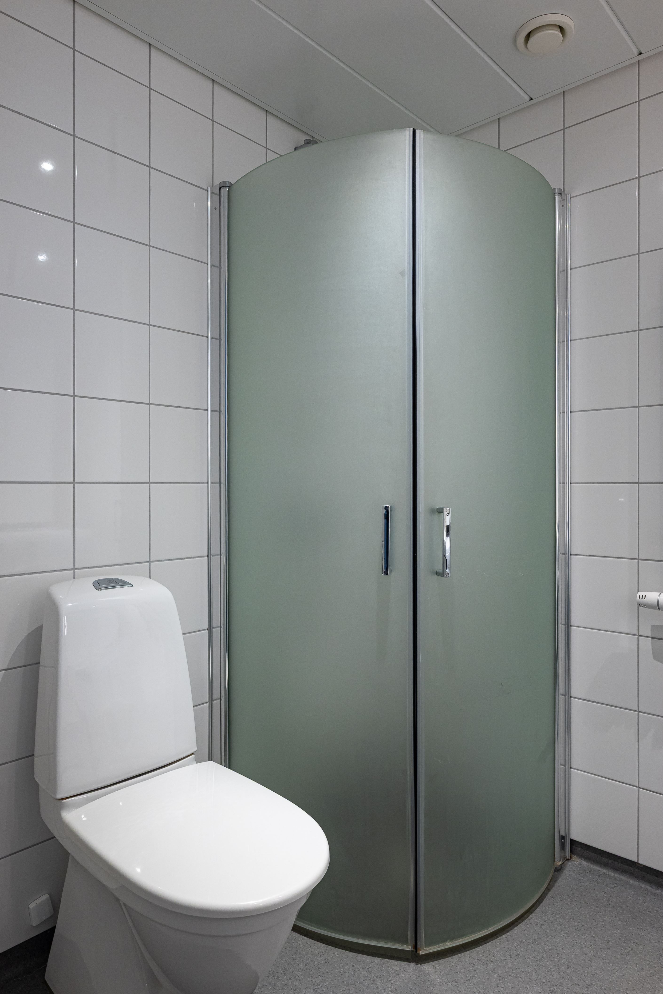Egen ingång till hall med plats för avhägning, direkt till vänster finns en rymlig klädkammare/förråd. Köksdel med vita skåpsluckor, kyl/frys, spishäll, diskmaskin samt ugn. Från köket når ni sedan allrum med garderober och plats för både säng och soffa. Här finns även en fransk balkong. Stort badrum med våtrumsmatta och helkaklade vita väggar, duschhörna med duschväggar i glas, wc, handfat med kommod och tvättmaskin.