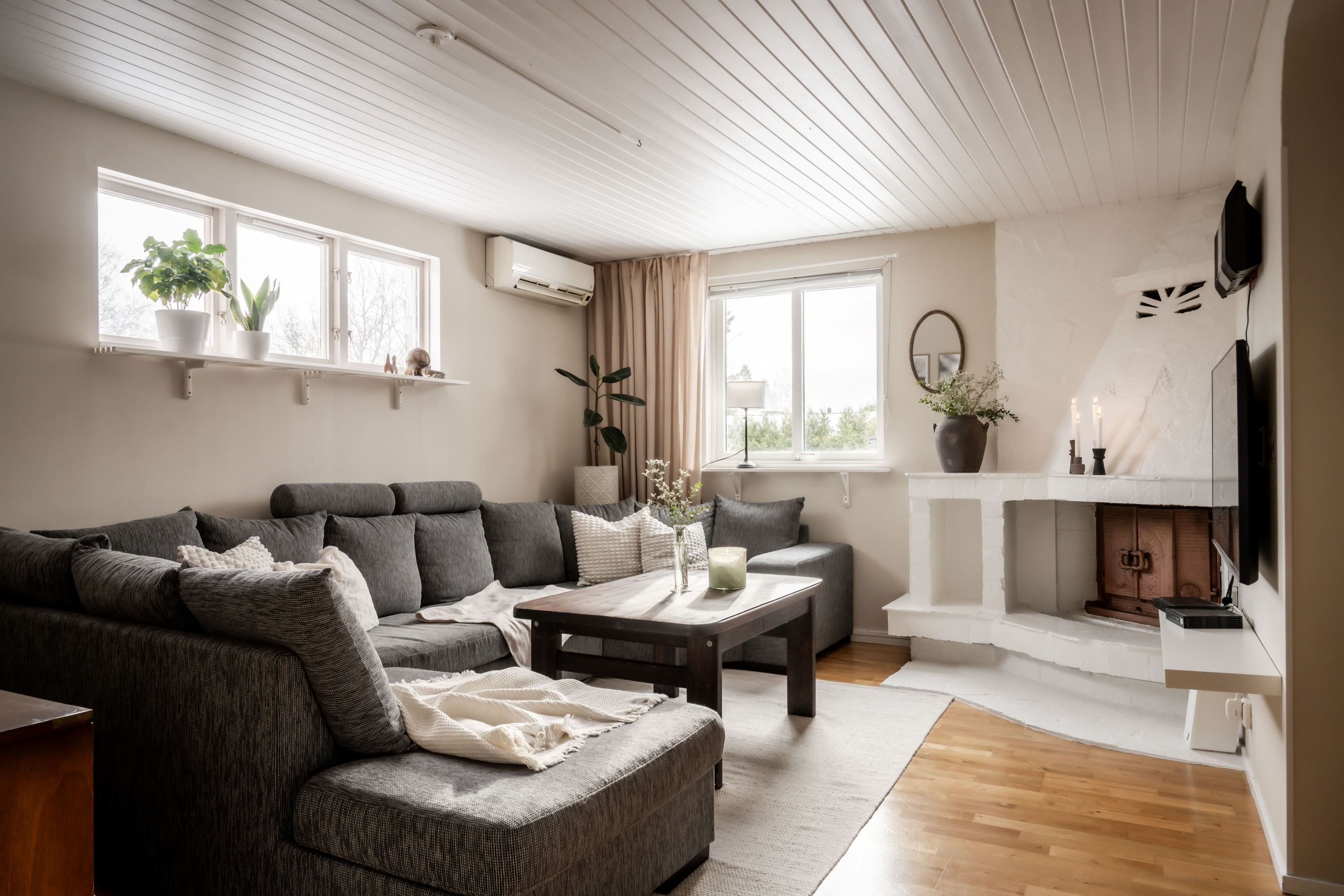 Planlösningen erbjuder både sociala ytor och mer avskilda delar, vilket gör huset flexibelt för olika livssituationer. Här finns gott om förvaringsutrymmen, två sovrum, möjlighet till extra sällskapsytor samt bastu – detaljer som ger huset det där lilla extra och höjer vardagskomforten.