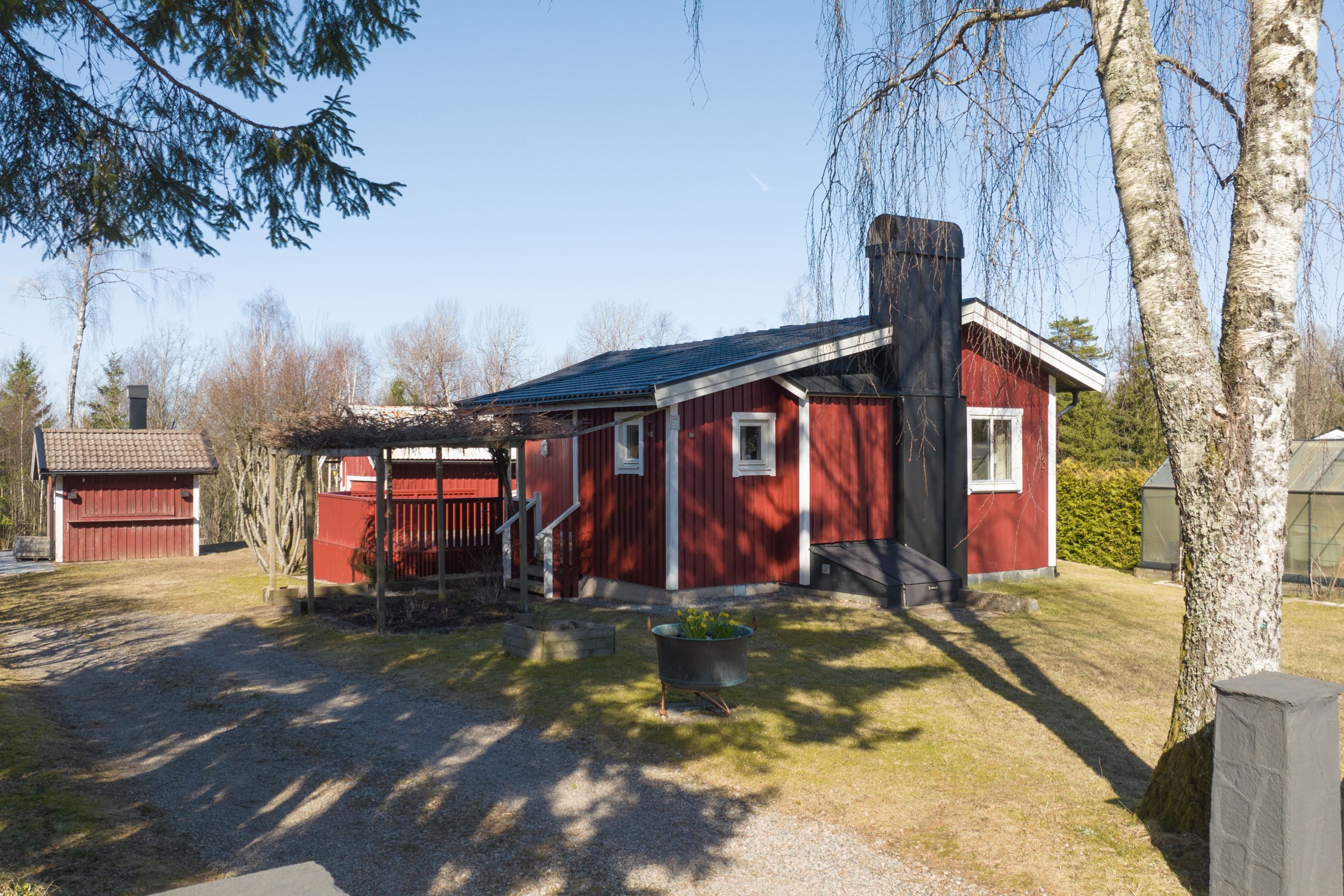 Utomhus väntar en mysig och lättskött trädgård som blir en naturlig förlängning av hemmet under årets varmare månader. Den generösa altanen med markis bjuder in till långa, lata sommardagar och middagar i kvällssolen. Det uppskattade växthuset från 2020, utrustat med belysning, skapar extra livskvalitet för dig som tycker om odling, umgänge eller bara en skyddad plats att njuta av grönskan. Här bor du lugnt och avskilt, med närhet till stranden – bara ett par hundra meter bort – och med möjlighet att utöka tomten mot skogen för den som önskar ännu mer grönska och privatliv.