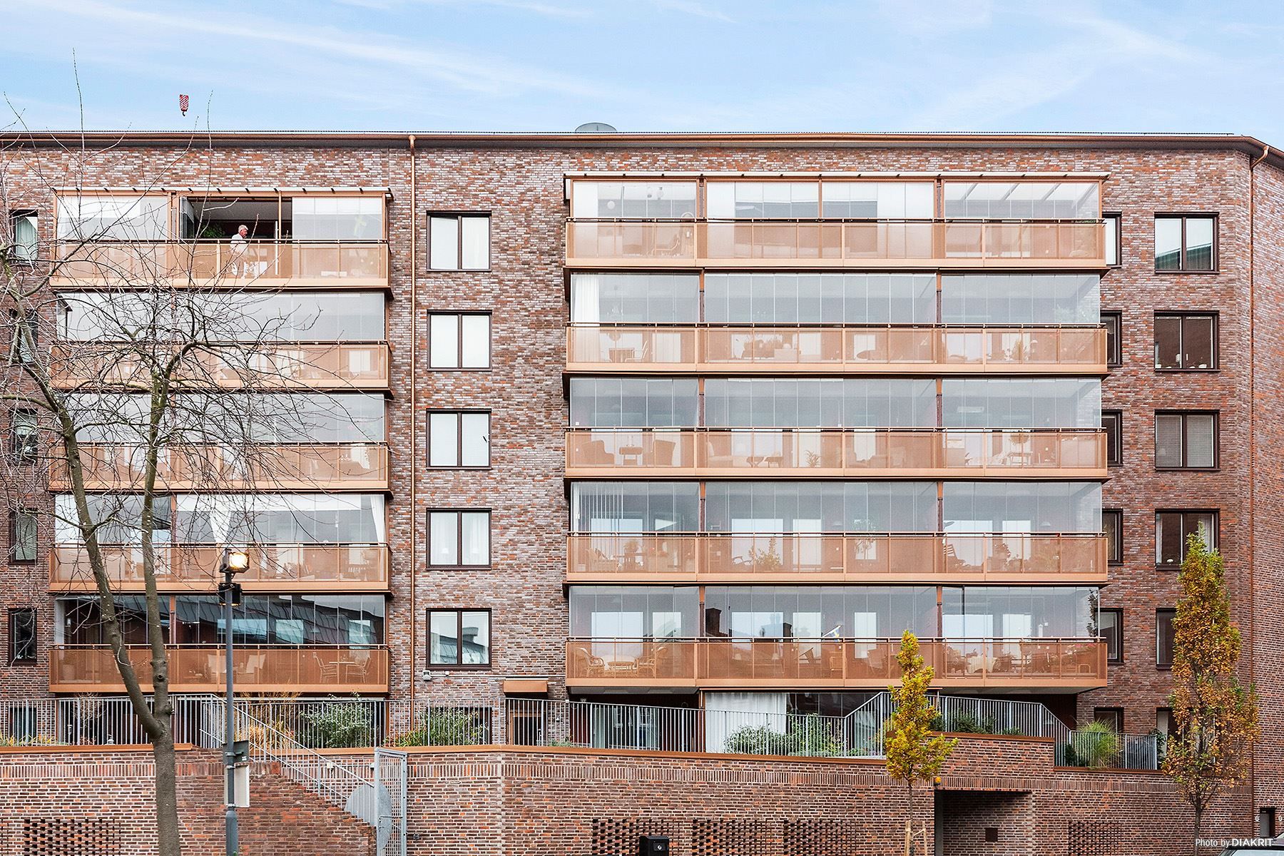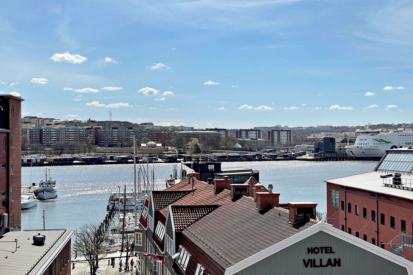 Från den inglasade balkongen om 8 kvm i söderläge har du utsikt ner mot älven och båttrafiken. Inglasningen gör att detta rum nyttjas stora delar av året och blir en förlängning av bostaden. Här ryms både loungegrupp eller matplats.