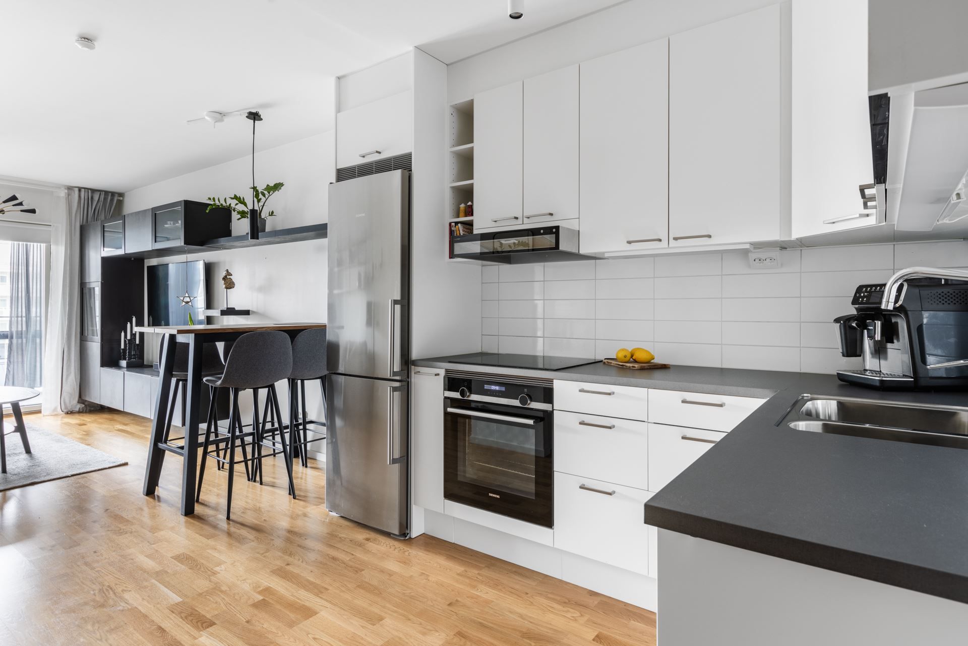 Här bor du med låg månadsavgift, vilket gör boendet både ekonomiskt och attraktivt. Dessutom är lägenheten fullutrustad med moderna vitvaror som gör att du kan flytta in och trivas direkt. Köket är smakfullt designat och erbjuder gott om förvaring och arbetsyta. Badrummet är modernt och fräscht med alla bekvämligheter så som tvätt- och torkmaskin, övriga rum är ljusa och trivsamma med generösa fönsterpartier som släpper in rikligt med dagsljus.