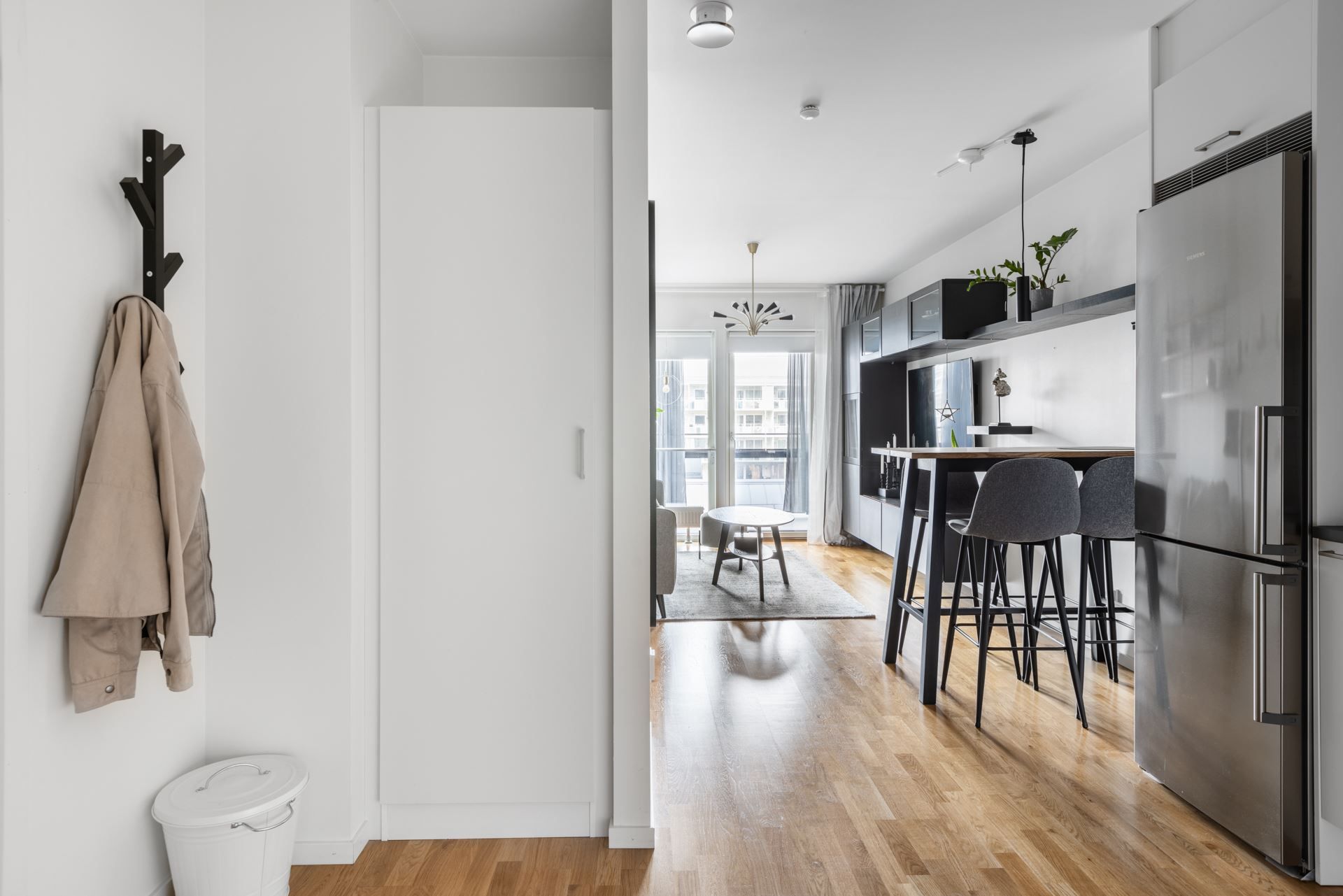 Bostaden är utformad med en smart och genomtänkt planlösning som gör vardagen både praktisk och trivsam. Varenda kvadratmeter är väl utnyttjad, och känslan av rymd och funktionalitet genomsyrar hela hemmet. Lägenheten ligger i ett hus med hiss, vilket underlättar vardagen och skapar en bekväm tillvaro för alla åldrar. Som grädde på moset har du tillgång till en gemensam uteterrass högt upp i huset, där du kan njuta av en fantastisk utsikt och sociala stunder med grannar och vänner.