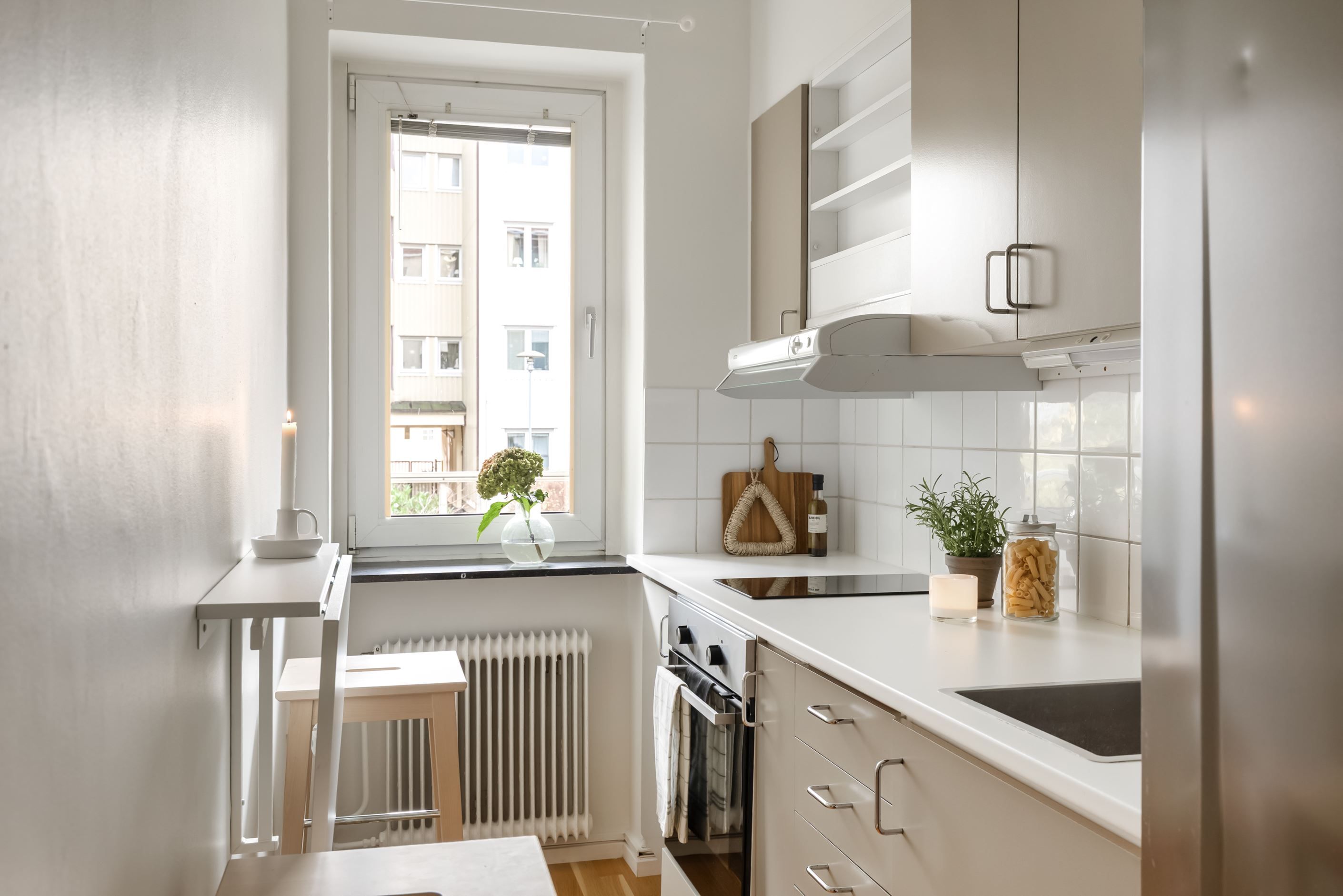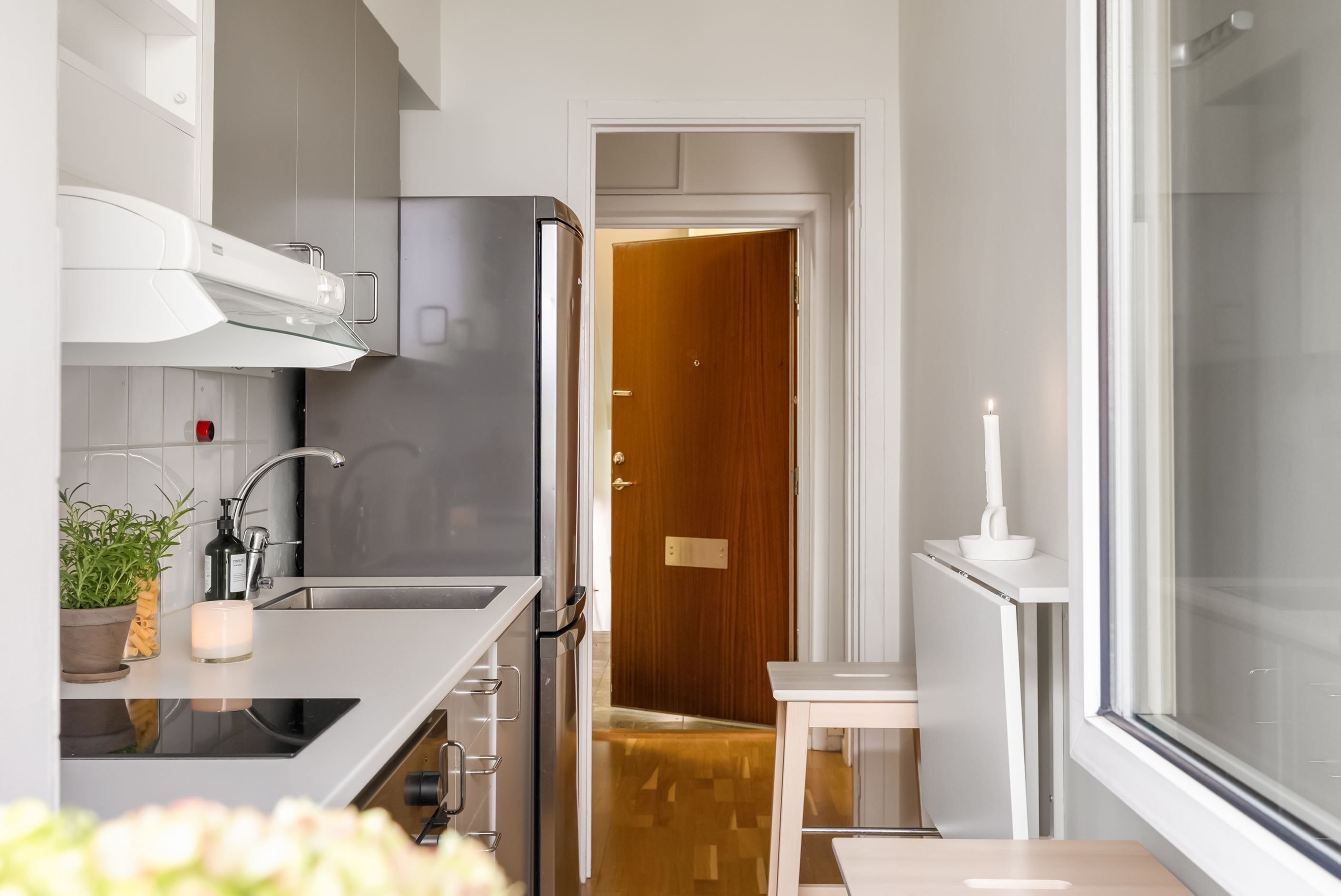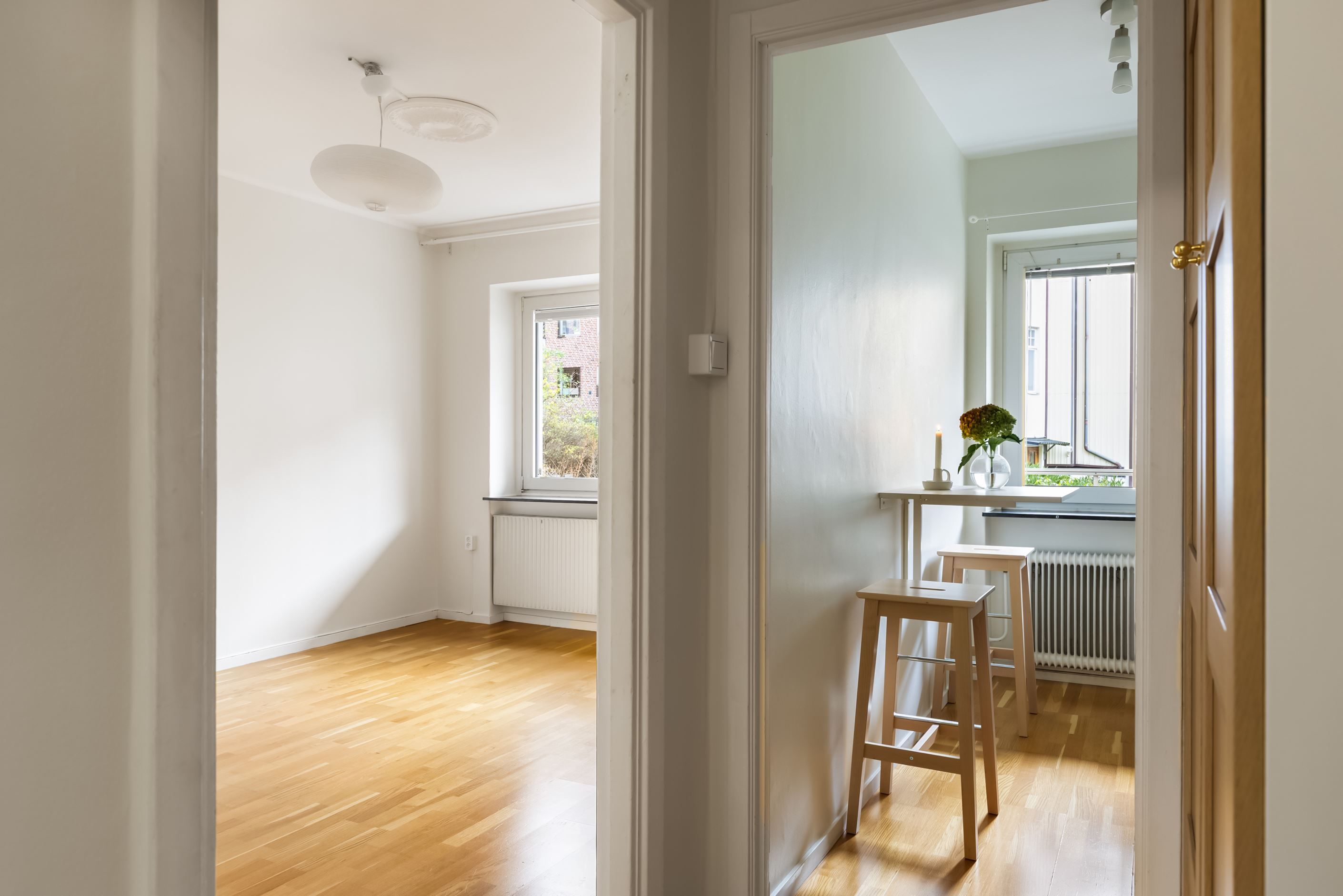 Lägenheten har ett trivsamt vardagsrum med gott om plats för både säng och soffgrupp. Köket är smart utformat med god förvaring och bra arbetsytor, och i samband med att hela bostaden målades om 2025 fräschades även köket upp med nymålade luckor. Bra med förvaring tack vare två rymliga garderober. Dessutom har lägenheten tillgång till både vindsförråd och källarförråd. Kaklat WC/dusch.