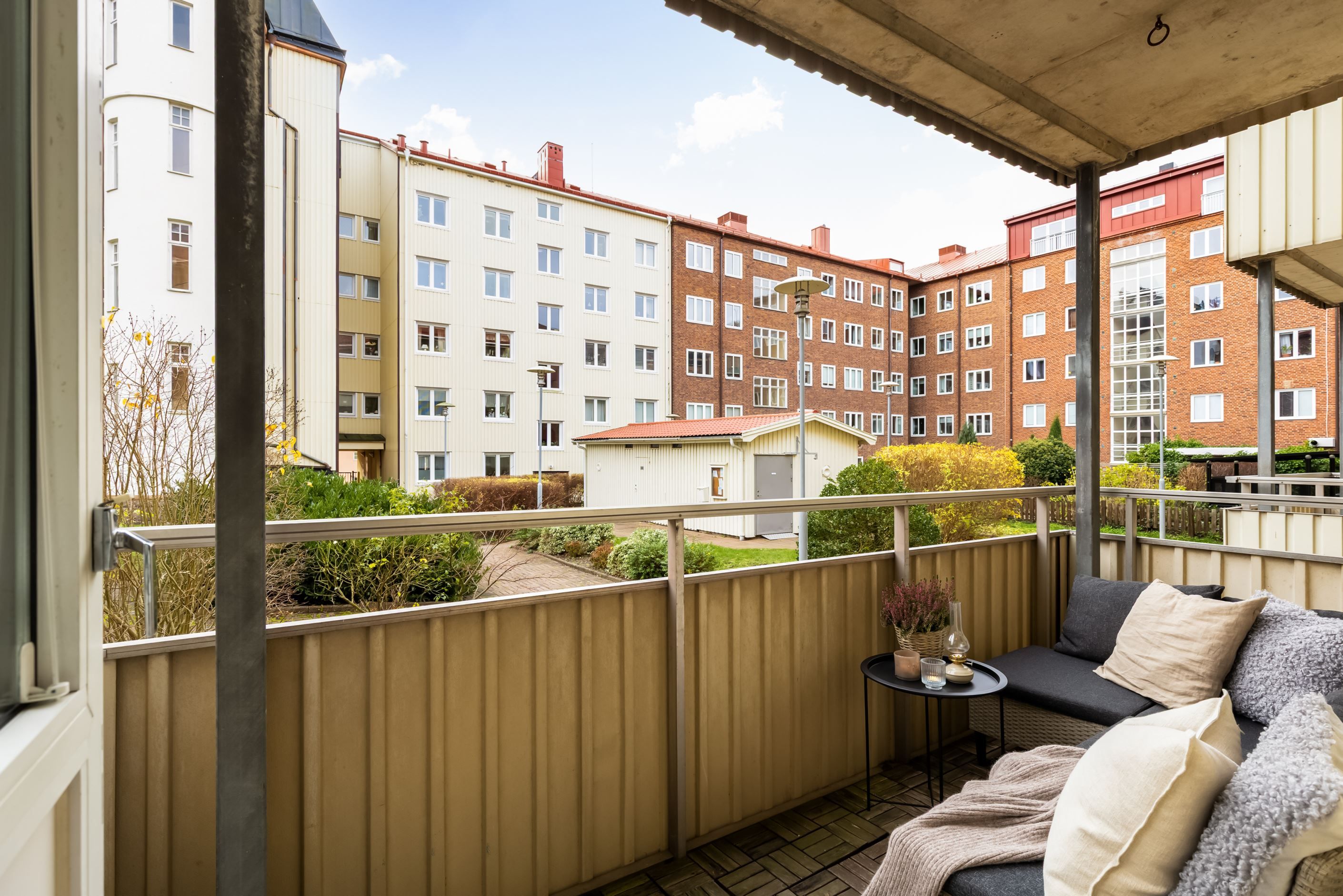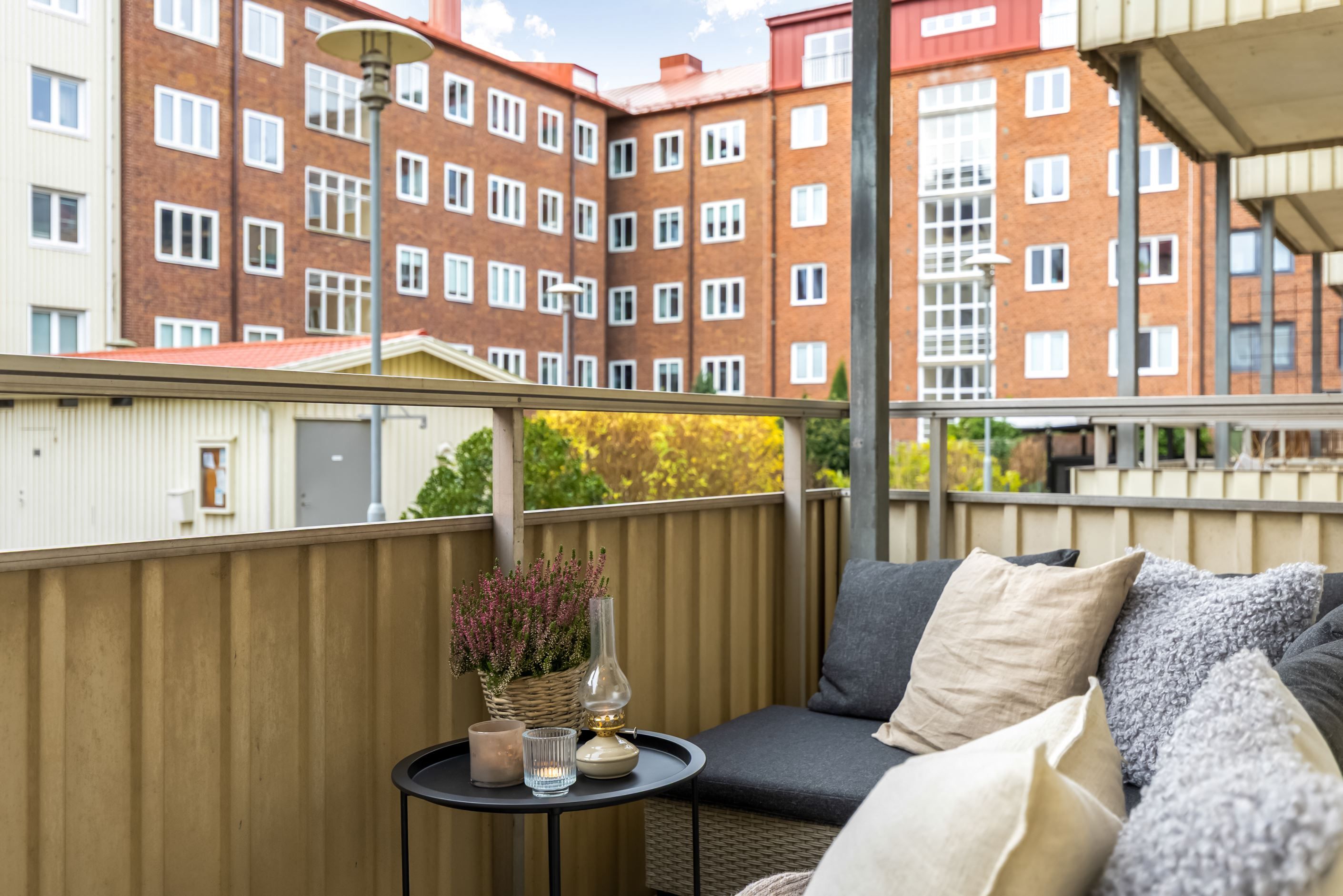 Här erbjuds en yteffektiv och mycket välplanerad bostad där varje kvadratmeter kommer till sin rätt. Den generösa balkongen i perfekt söderläge vetter mot föreningens lugna och lummiga innergård – en självklar favoritplats för både morgonkaffet och kvällsmyset.