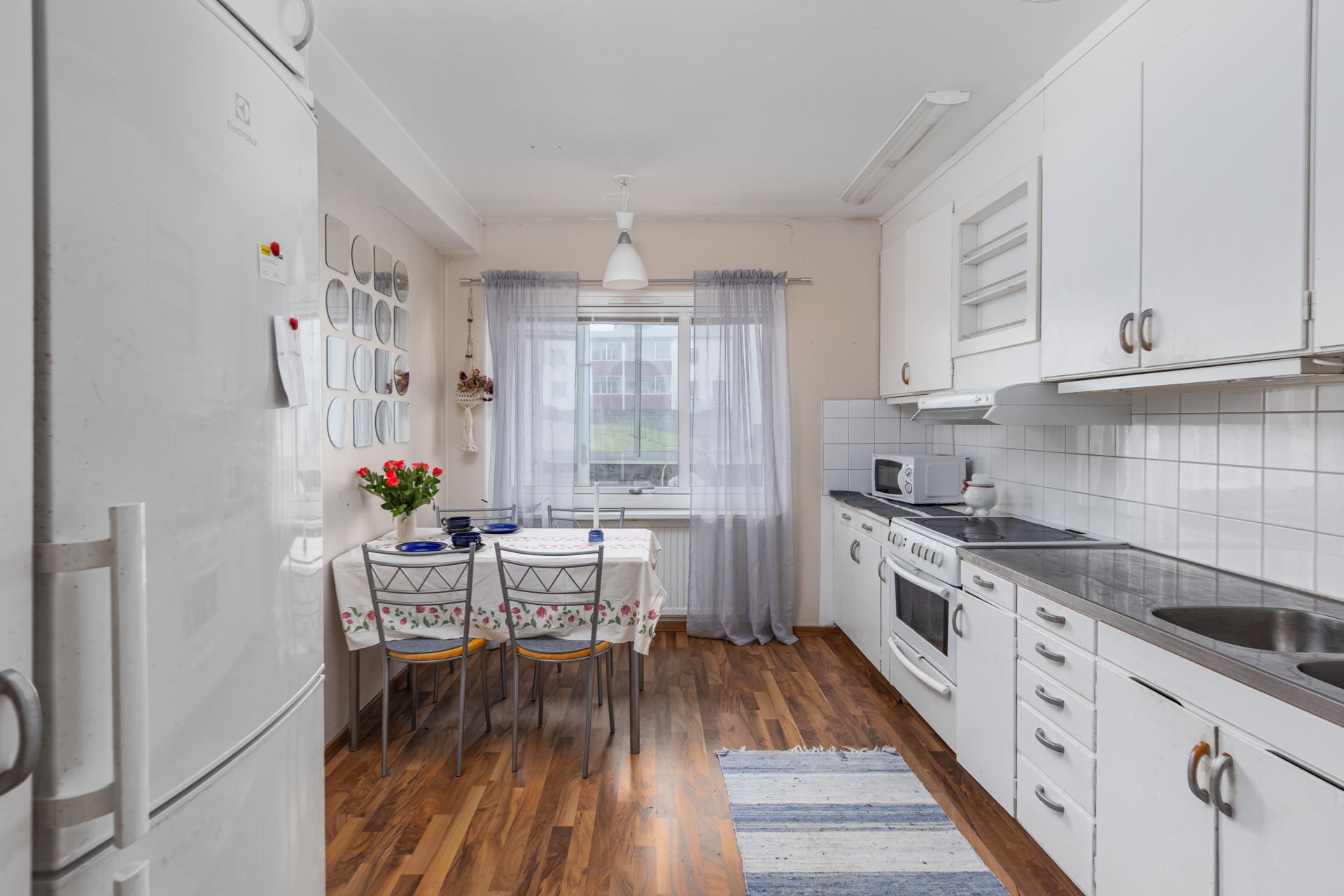 Köket har plats för matbord och är utrustat med kombinerad kyl/frys. För den som vill sätta sin egen prägel på bostaden finns en inre reparationsfond på 15092 kr att nyttja.