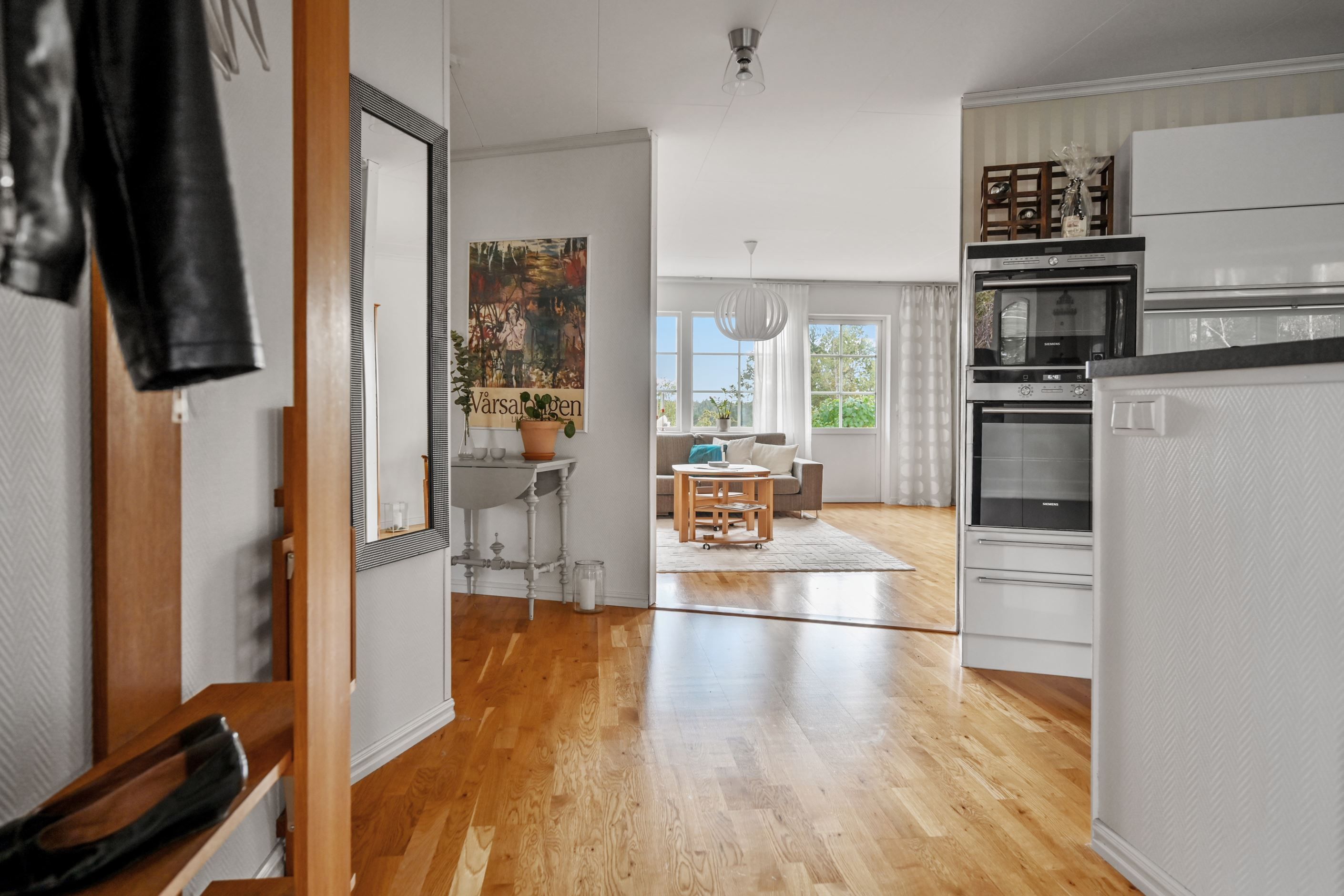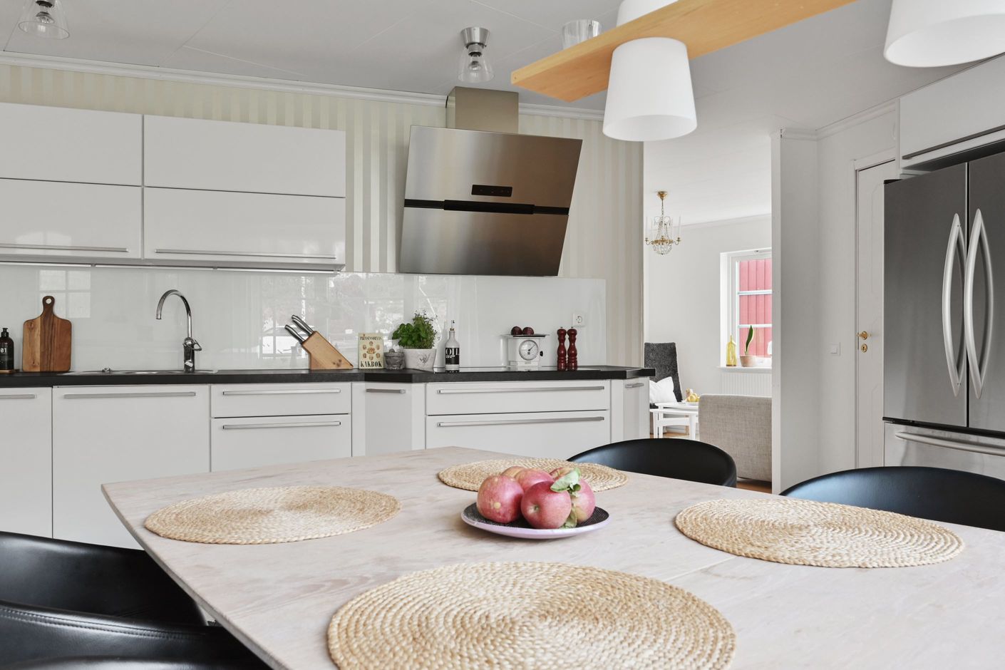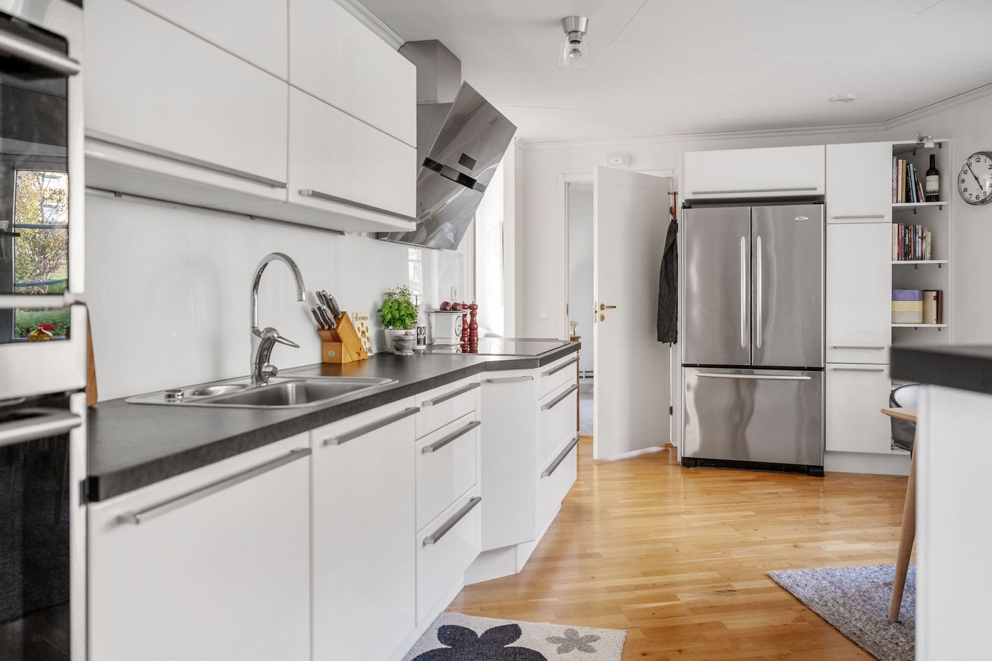 På högt och naturnära läge ligger denna välplanerade enplansvilla som förenar modern livsstil med skärgårdens charm. Den öppna planlösningen binder samman kök, vardagsrum och hall i ett socialt och ljust flöde. Braskaminen ger både värme och stämning, och de fyra sovrummen erbjuder gott om plats för familj, gäster eller arbete hemifrån.